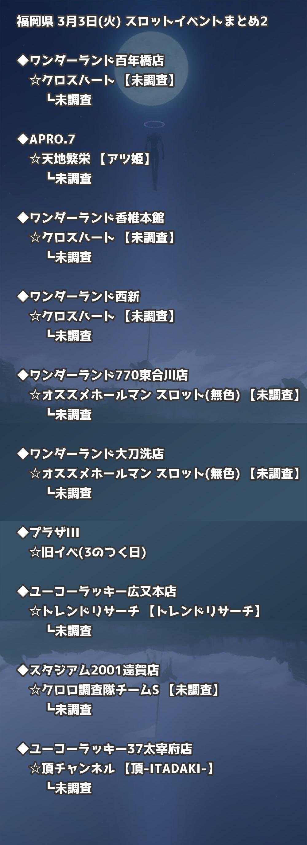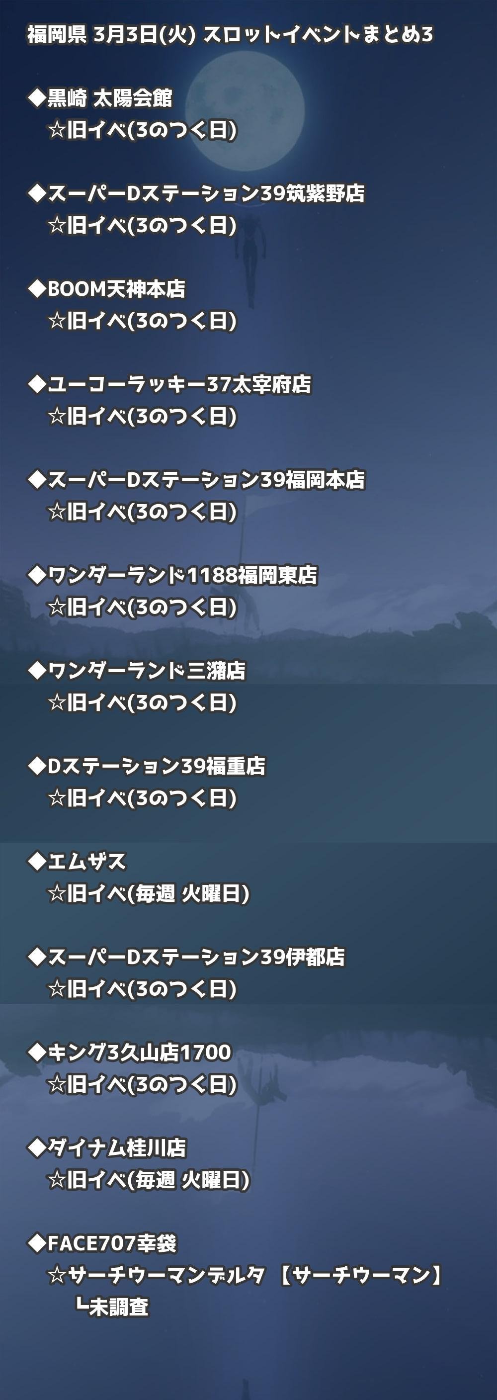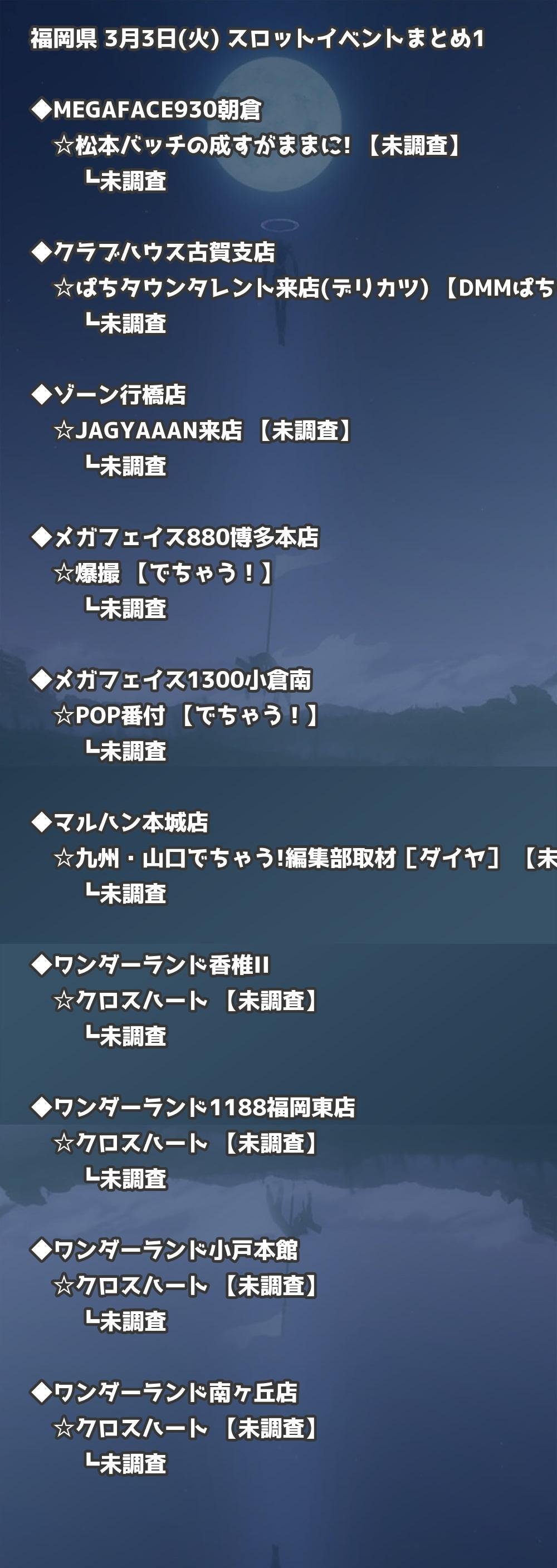 📊 福岡県 3月3日(火) 勝てるパチンコ・スロット取材店舗一覧|おすすめ順