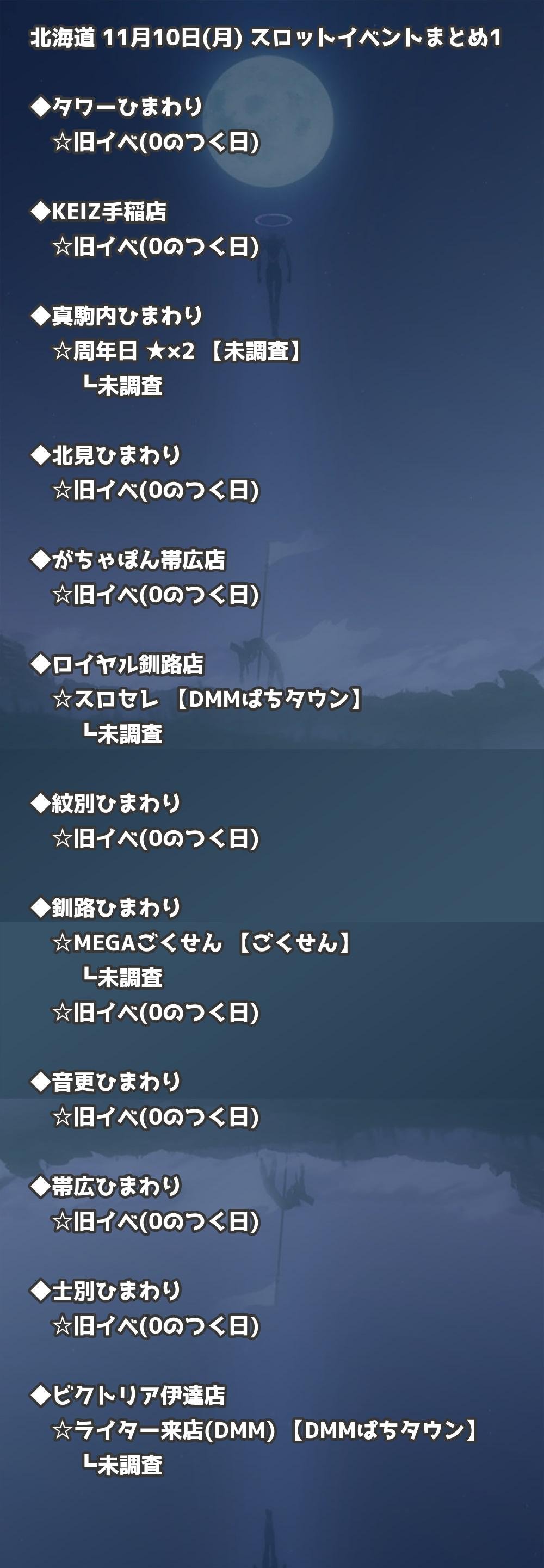 【北海道】11月10日(月) パチンコホールイベント取材まとめ記事です。