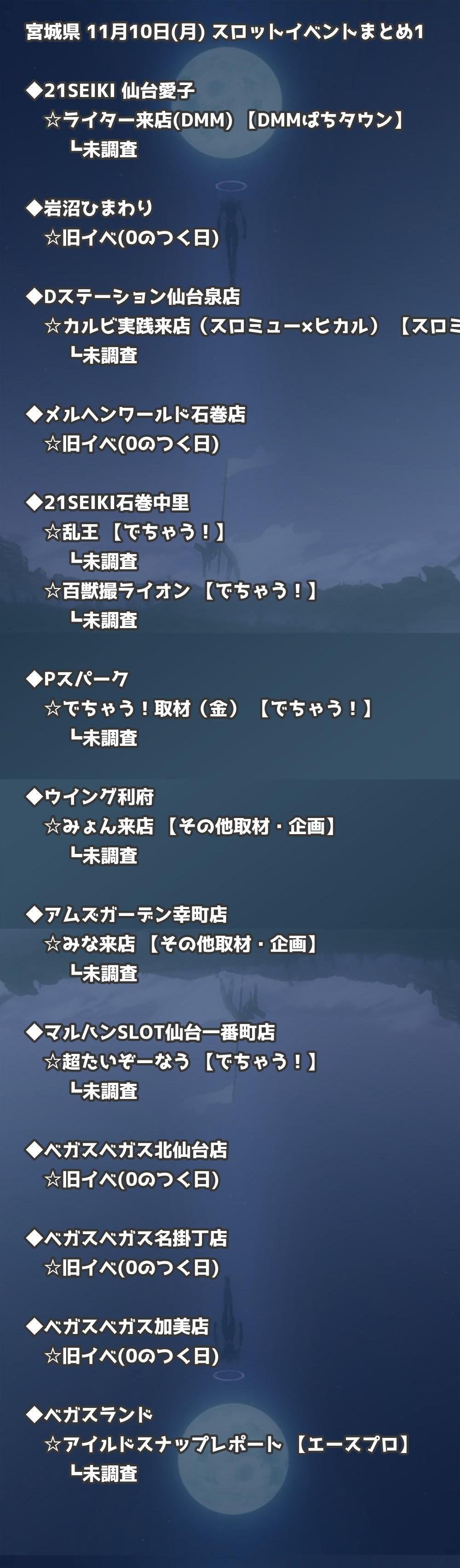 【宮城県】11月10日(月) パチンコホールイベント取材まとめ記事です。