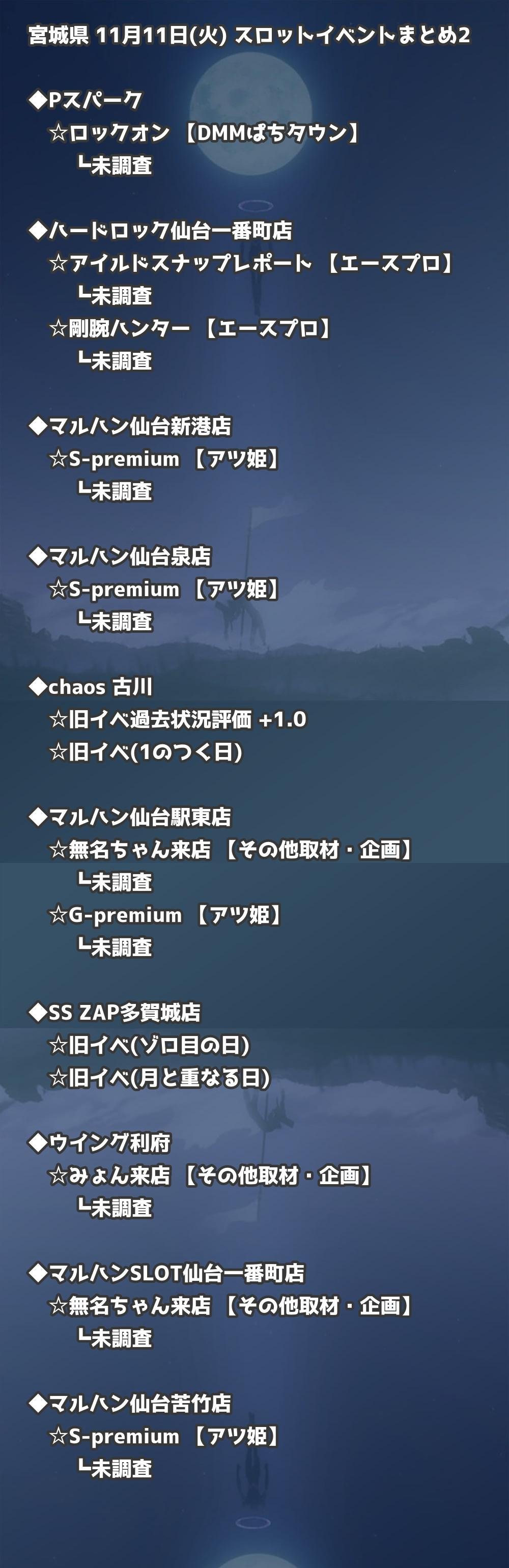📊 宮城県 11月11日(火) 勝てるパチンコ・スロット取材店舗一覧|おすすめ順