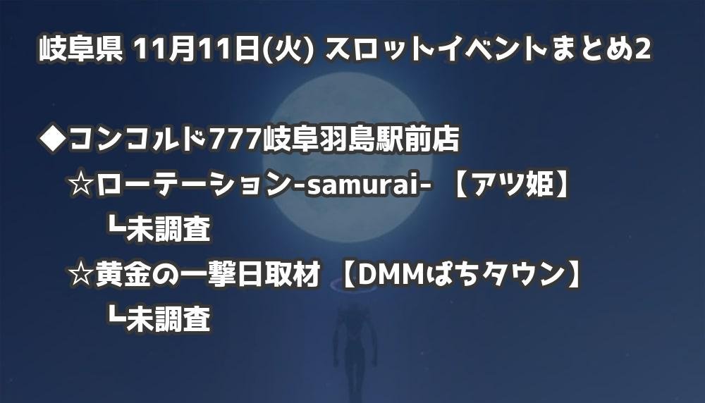 【岐阜県】11月11日(火) パチンコホールイベント取材まとめ記事です。