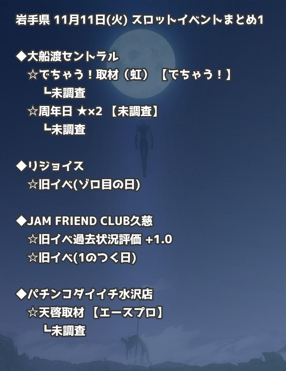 【岩手県】11月11日(火) パチンコホールイベント取材まとめ記事です。