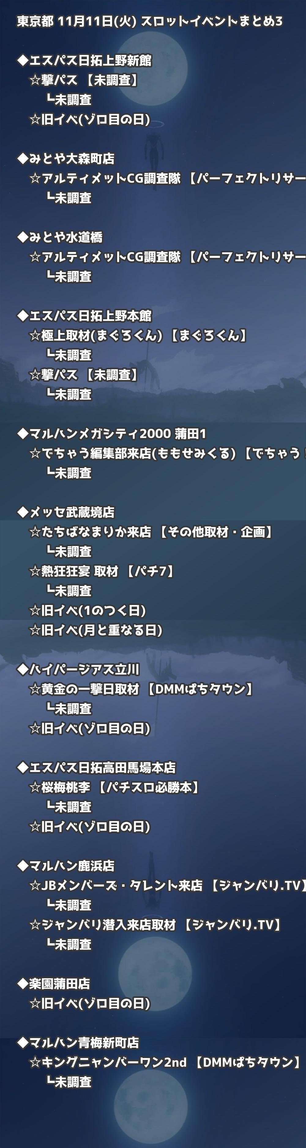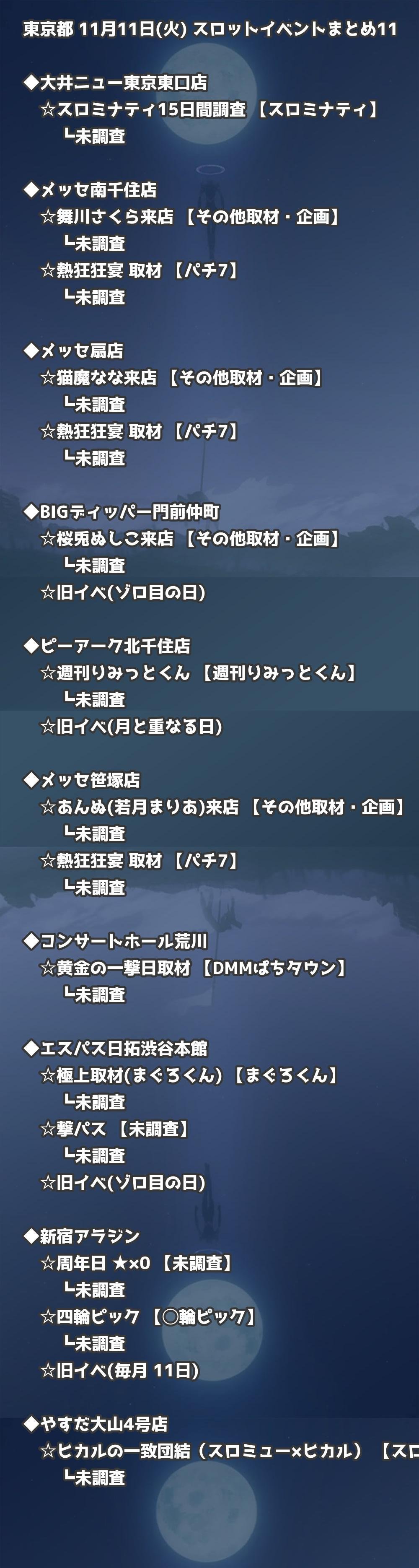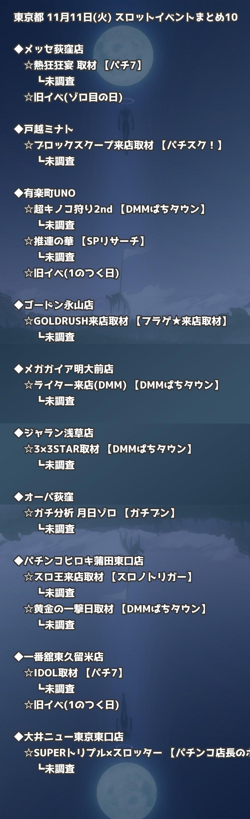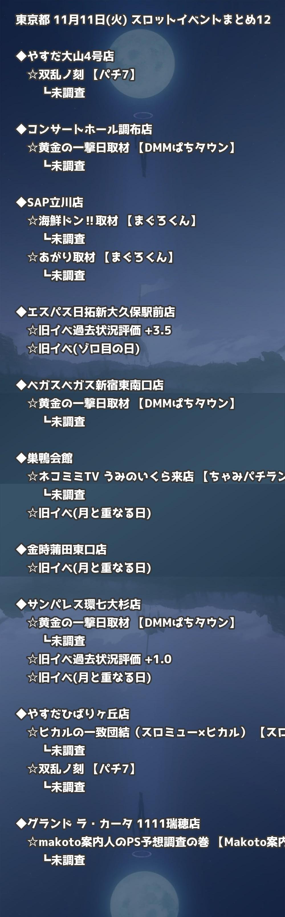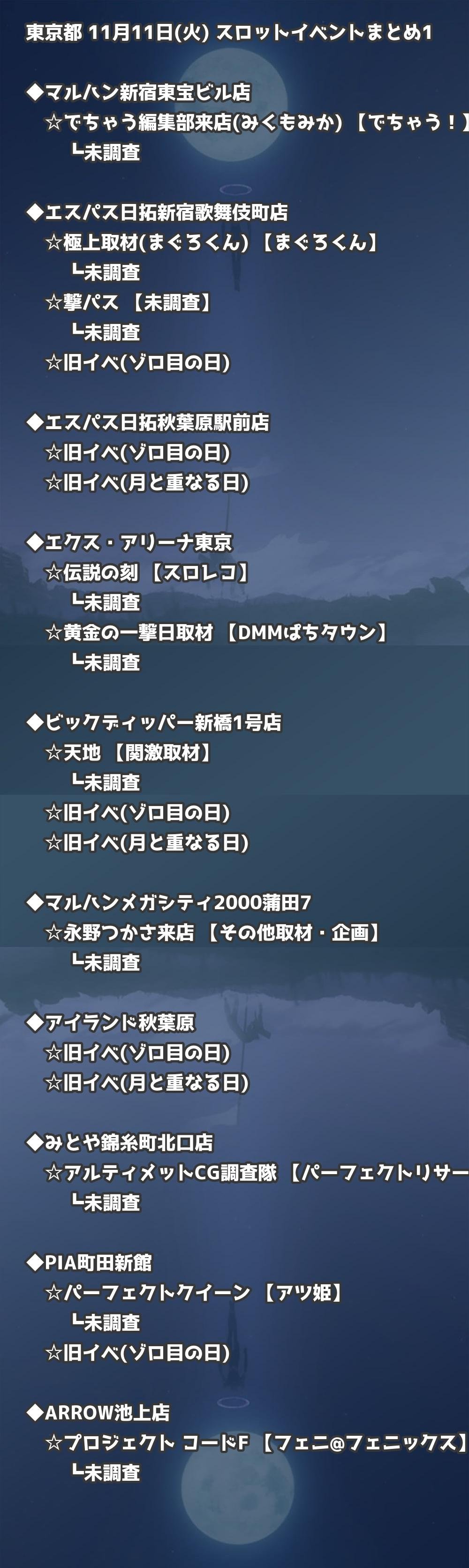 📊 東京都 11月11日(火) 勝てるパチンコ・スロット取材店舗一覧|おすすめ順