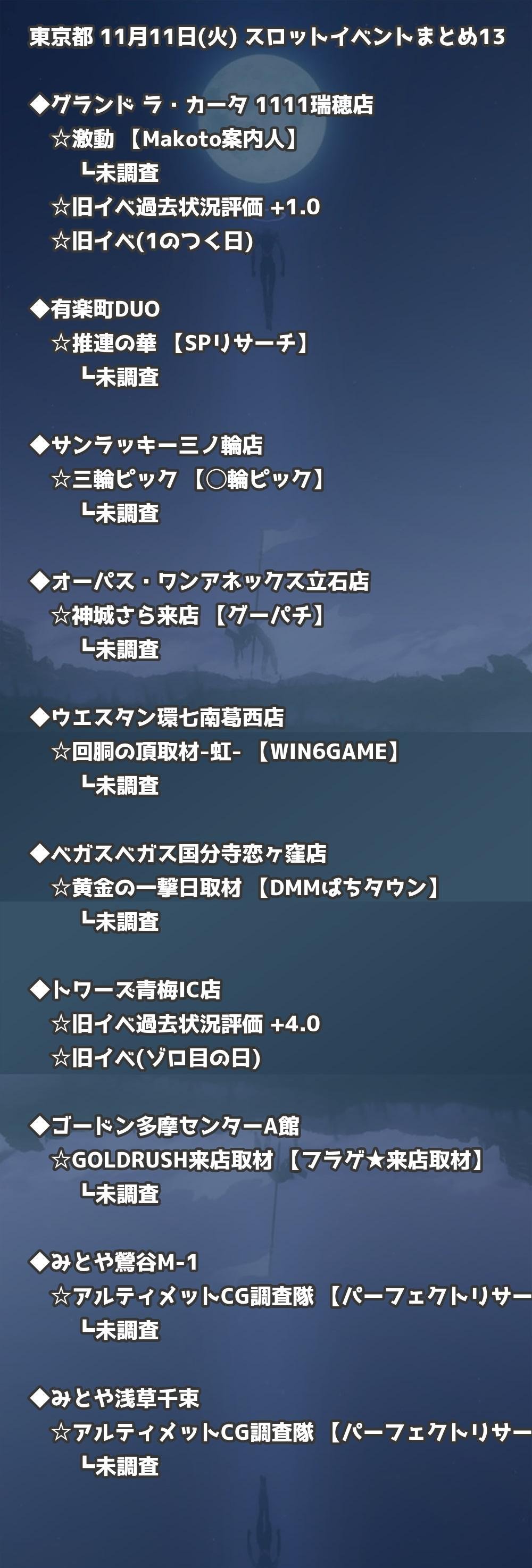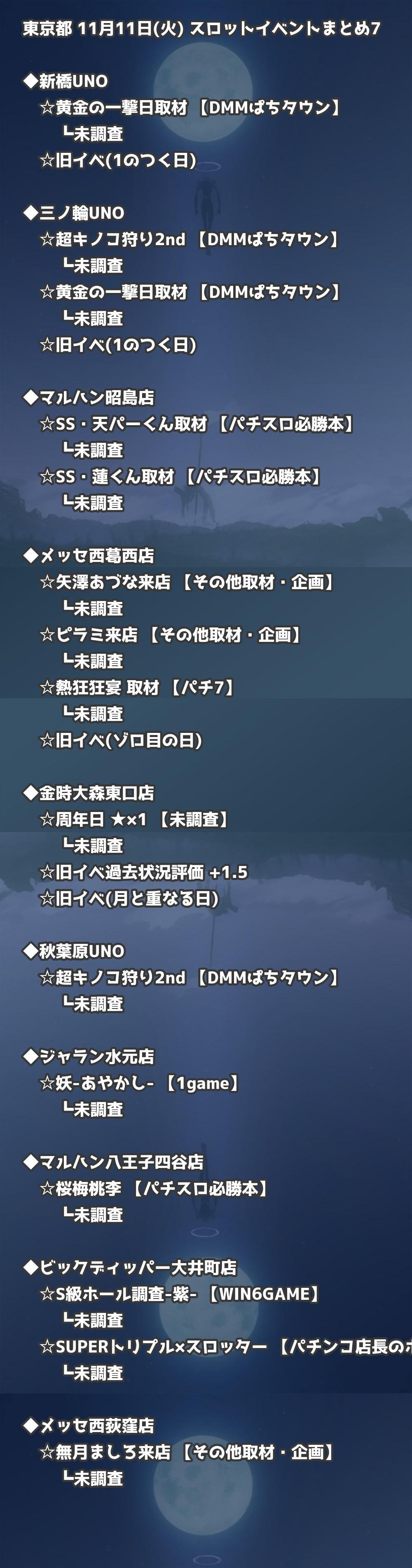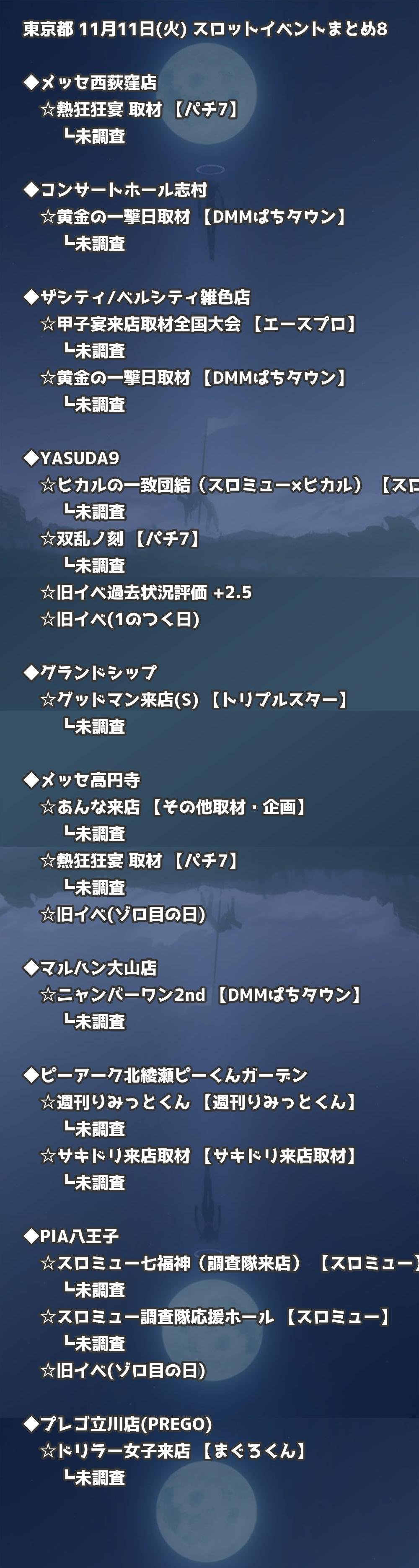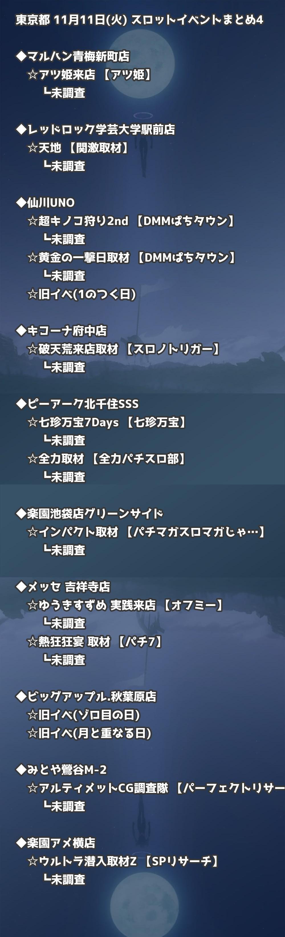 📊 東京都 11月11日(火) 勝てるパチンコ・スロット取材店舗一覧|おすすめ順