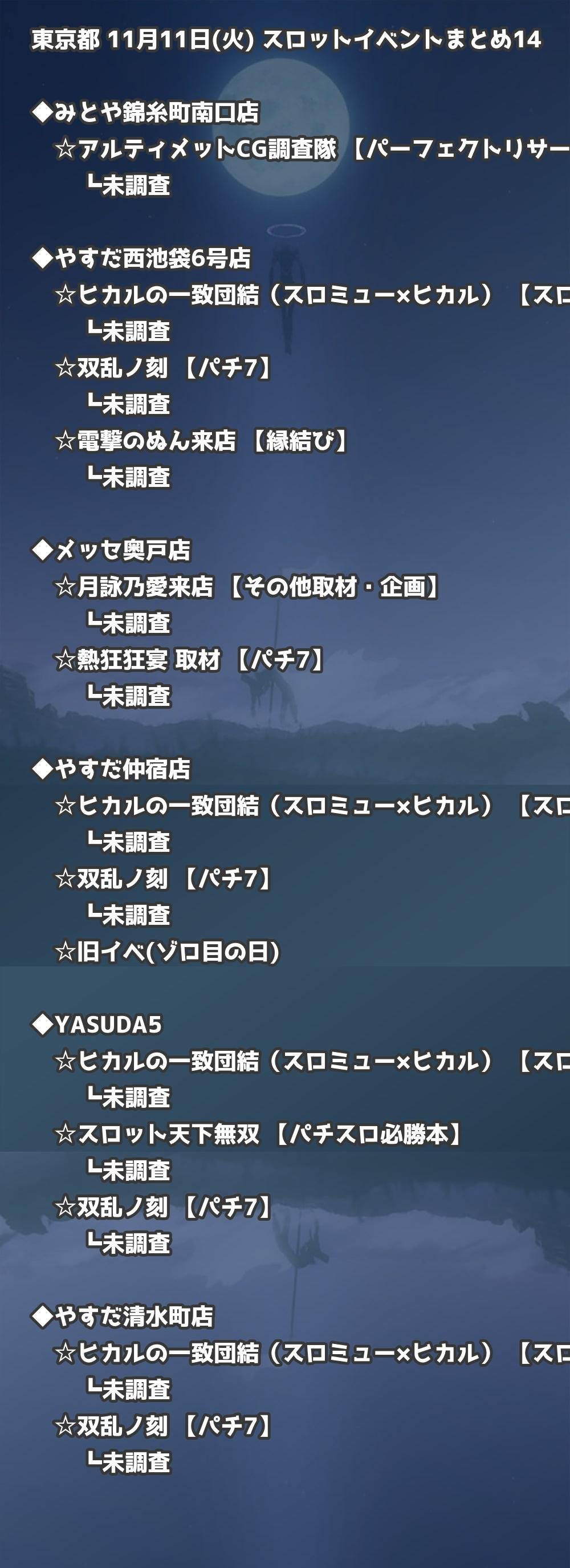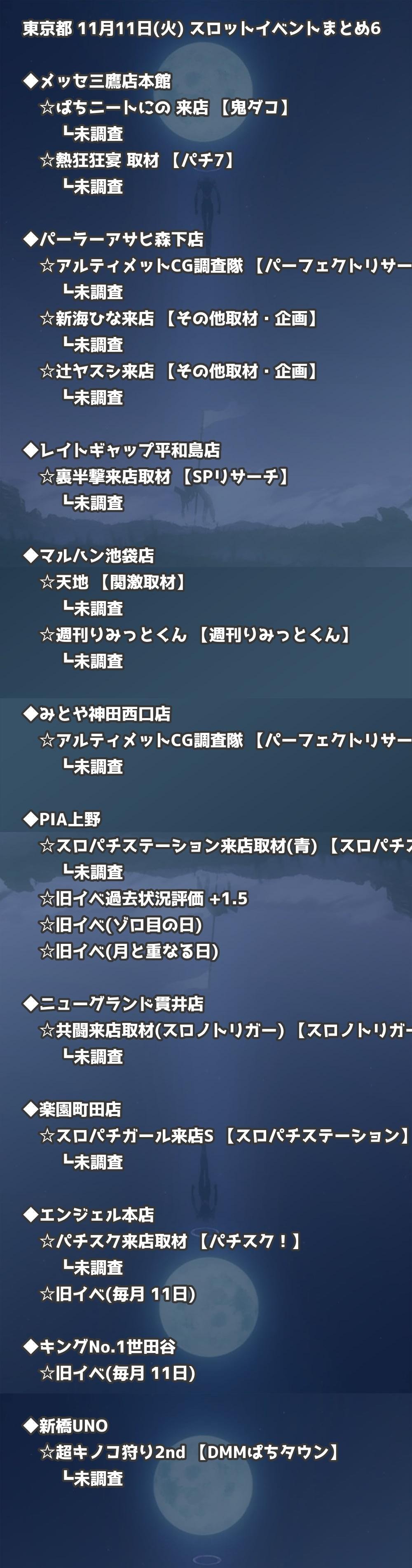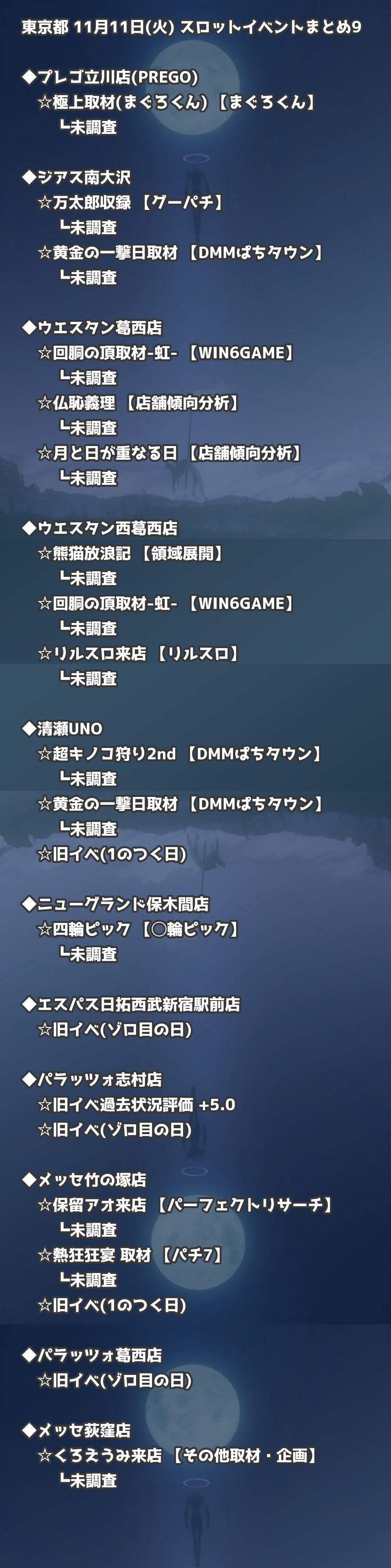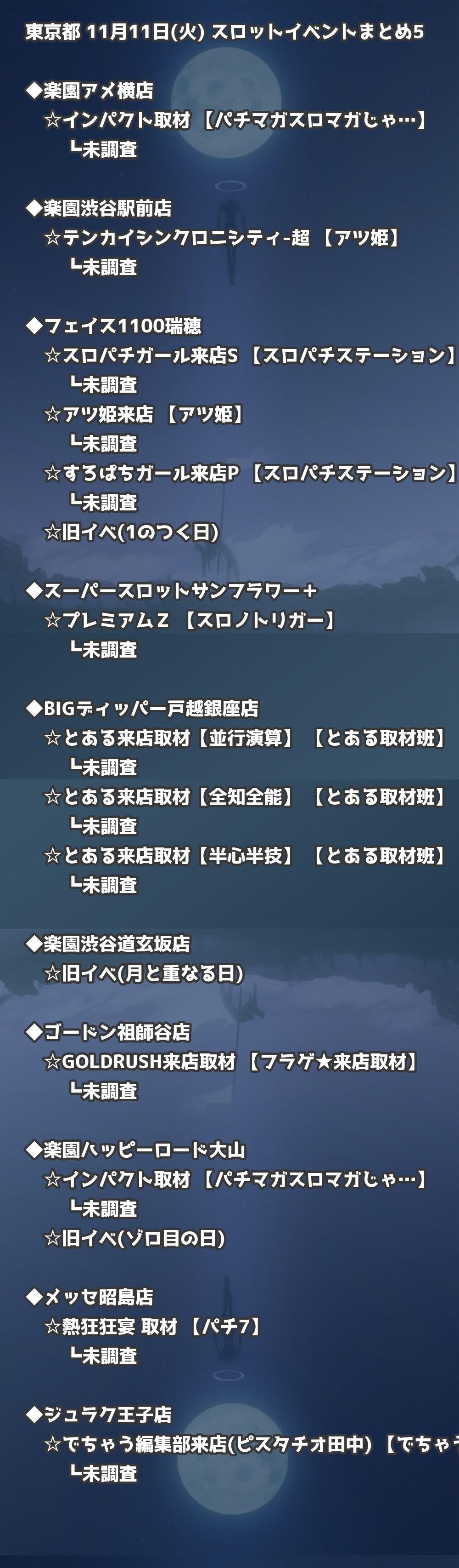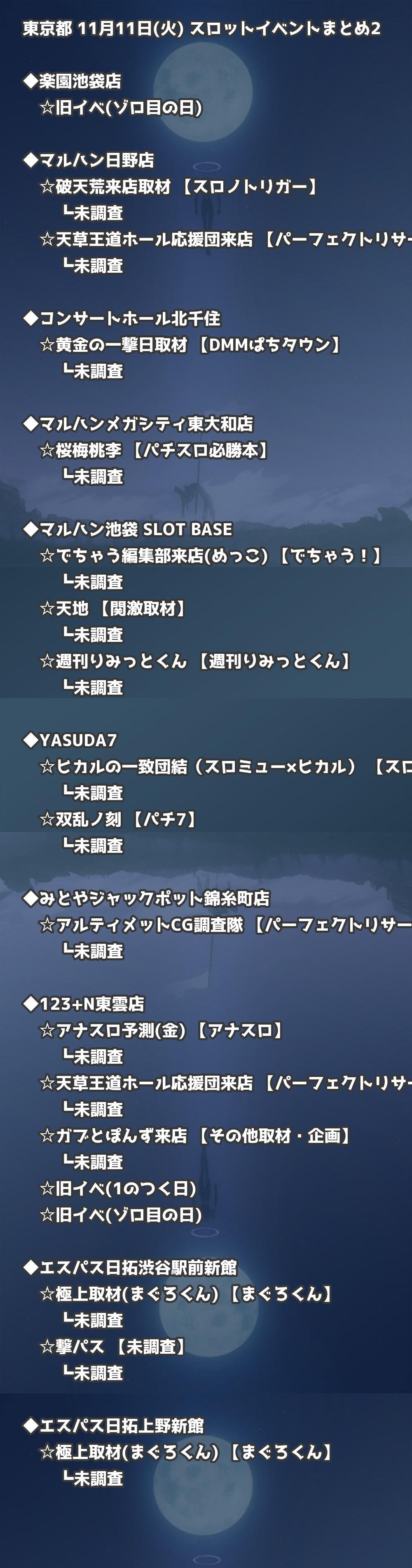 📊 東京都 11月11日(火) 勝てるパチンコ・スロット取材店舗一覧|おすすめ順