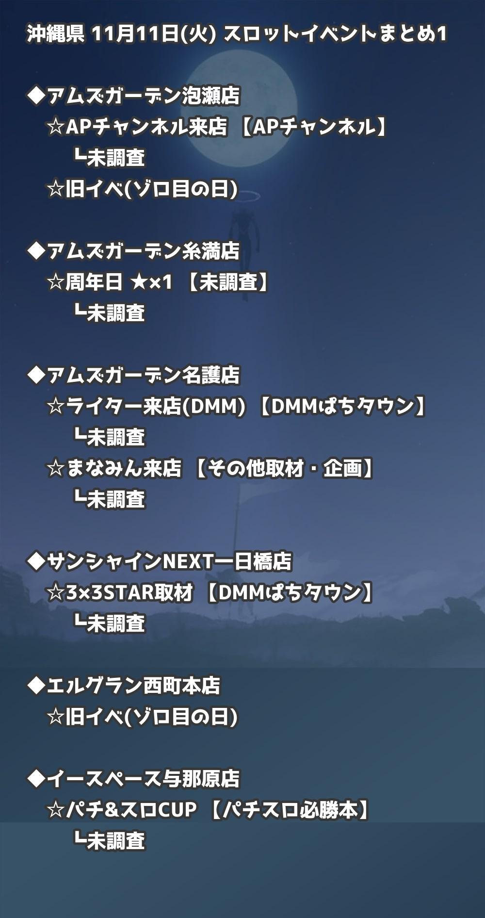 【沖縄県】11月11日(火) パチンコホールイベント取材まとめ記事です。