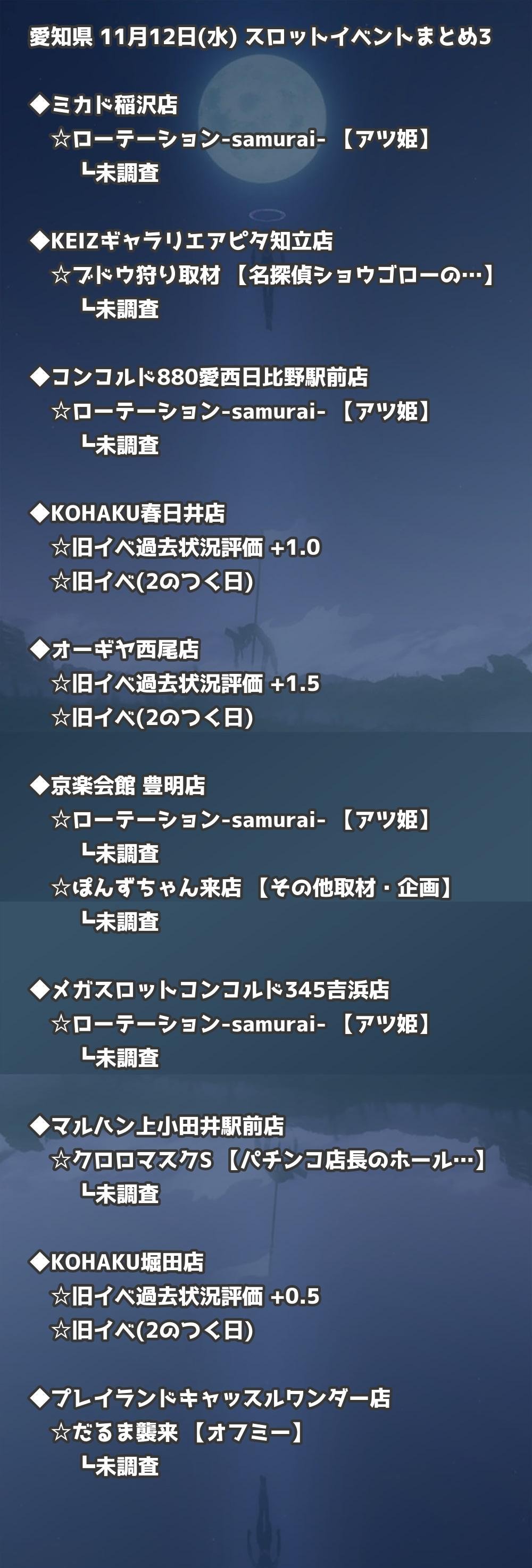 📊 愛知県 11月12日(水) 勝てるパチンコ・スロット取材店舗一覧|おすすめ順