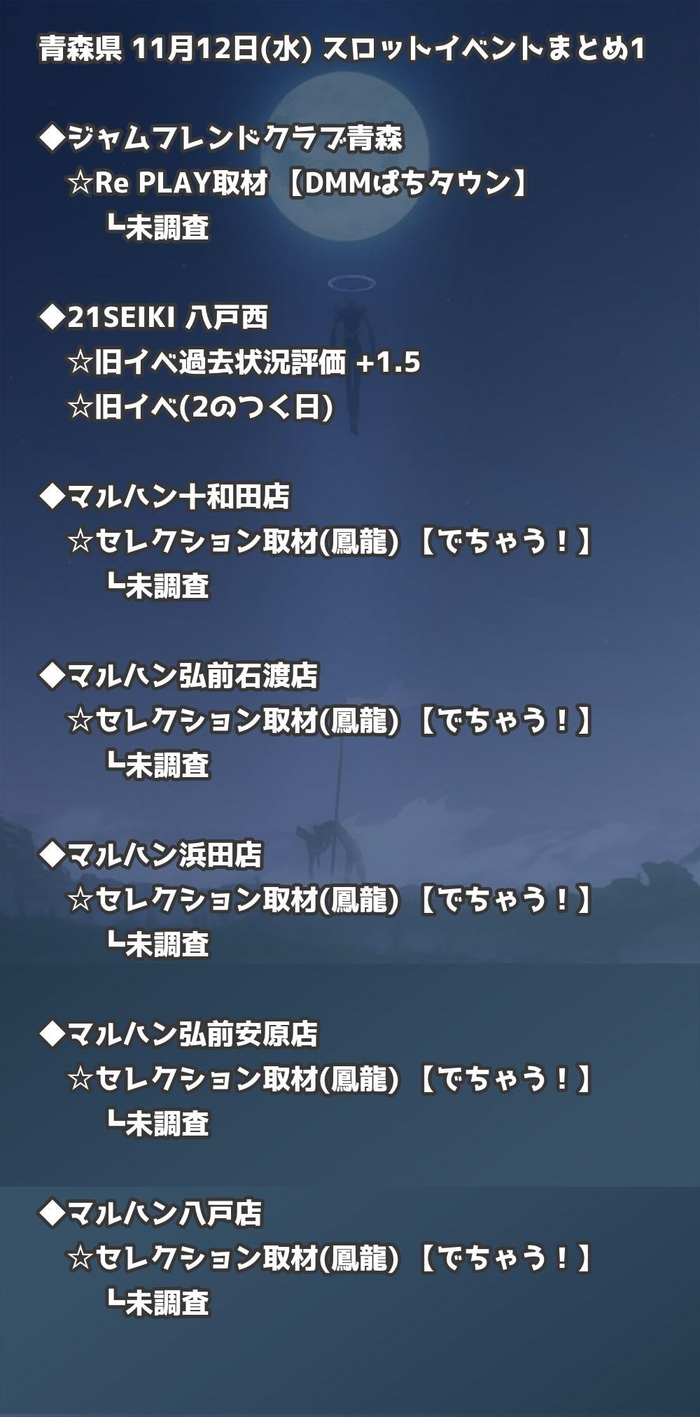 【青森県】11月12日(水) パチンコホールイベント取材まとめ記事です。