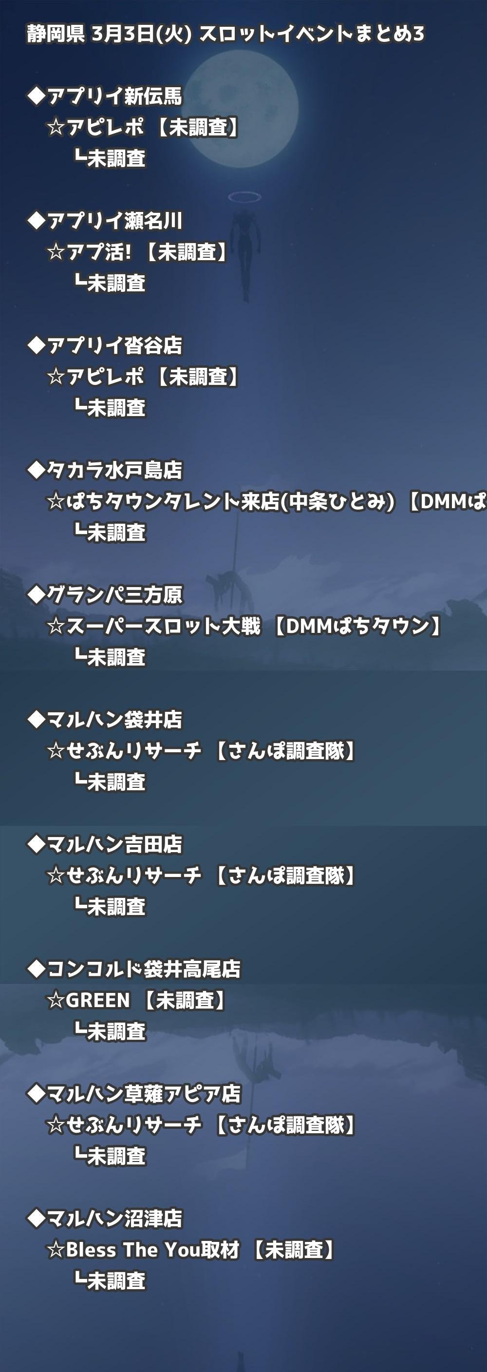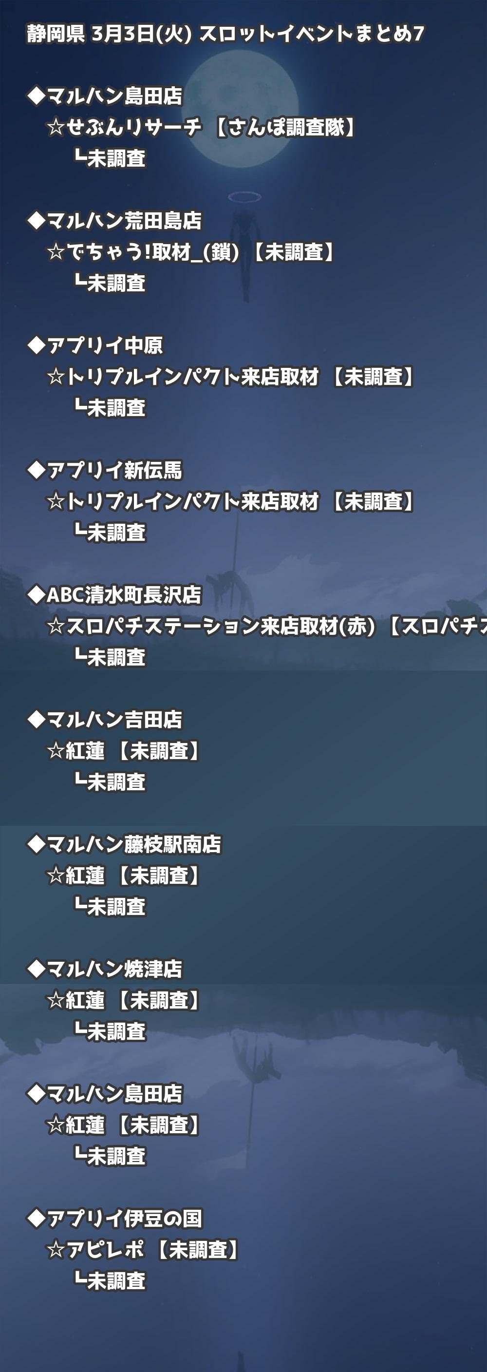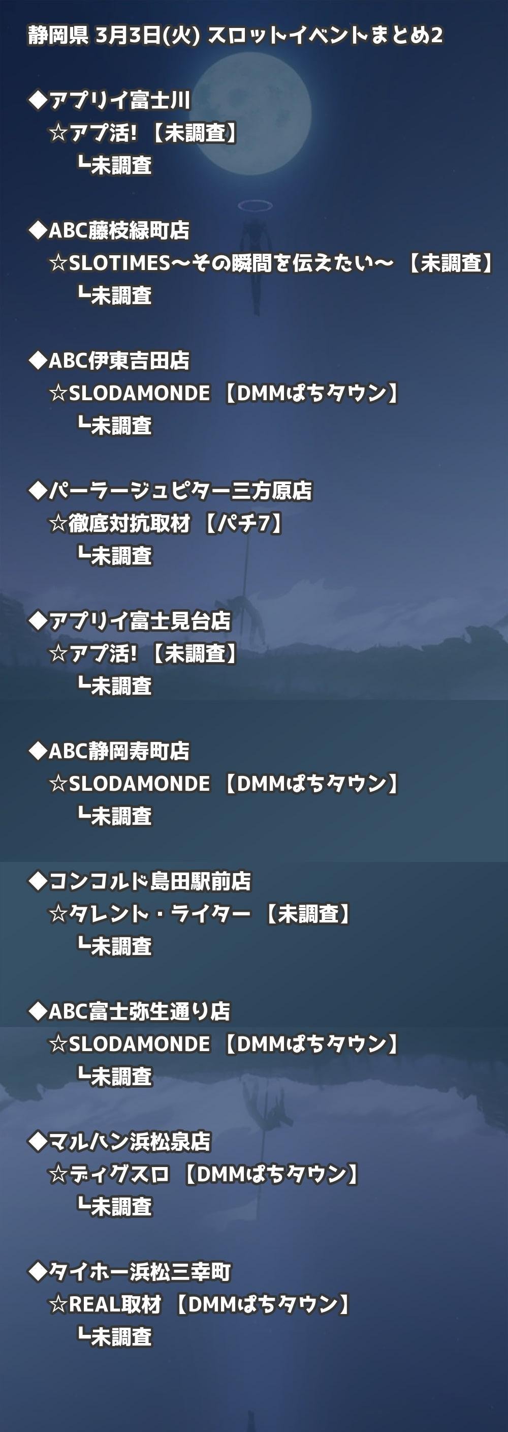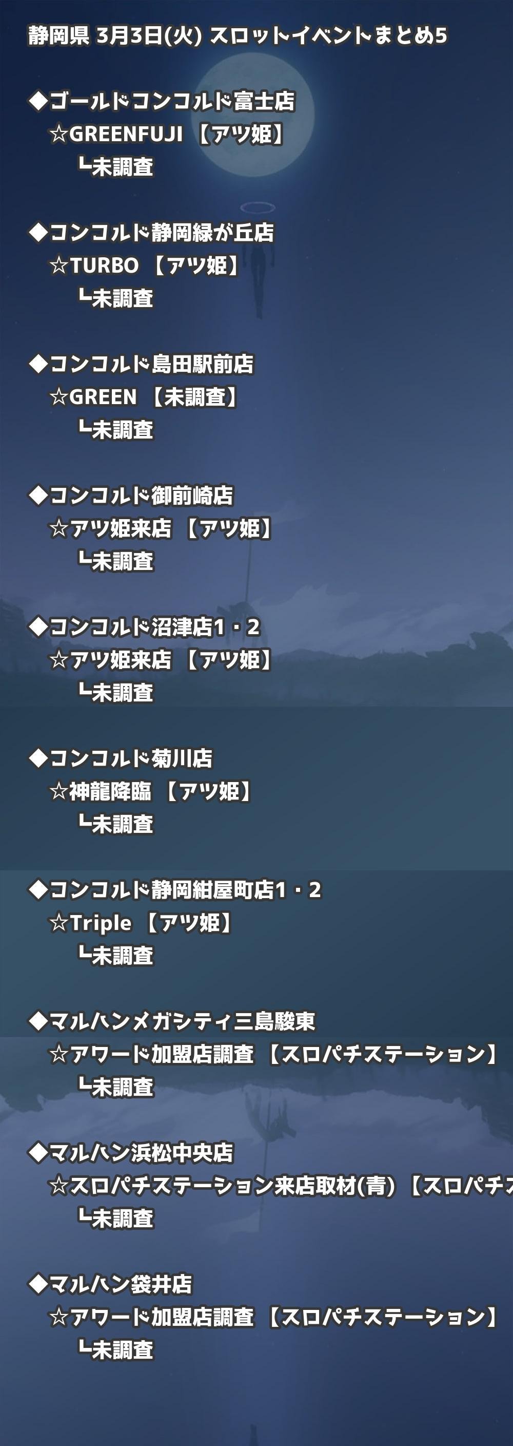 📊 静岡県 3月3日(火) 勝てるパチンコ・スロット取材店舗一覧|おすすめ順