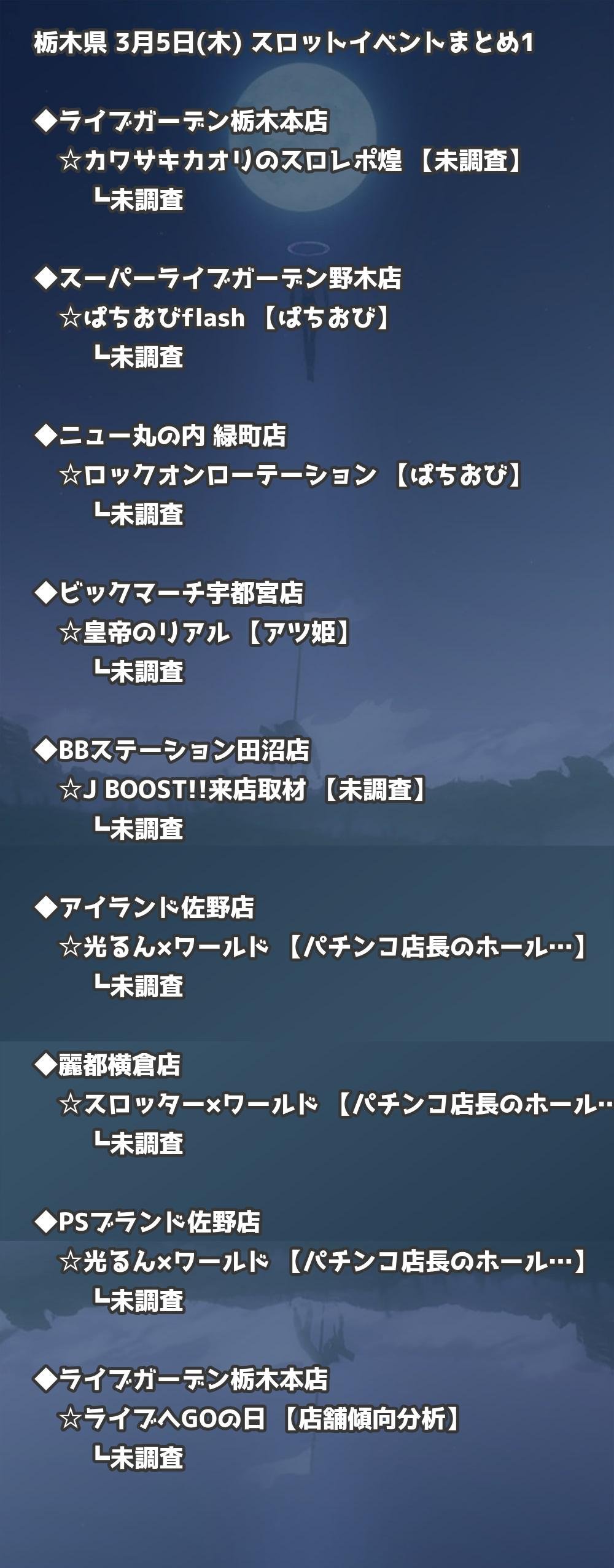 【栃木県】3月5日(木) パチンコホールイベント取材まとめ記事です。