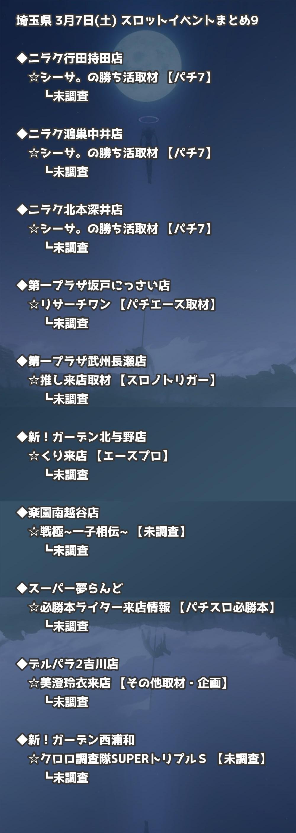 【埼玉県】3月7日(土) パチンコホールイベント取材まとめ記事です。