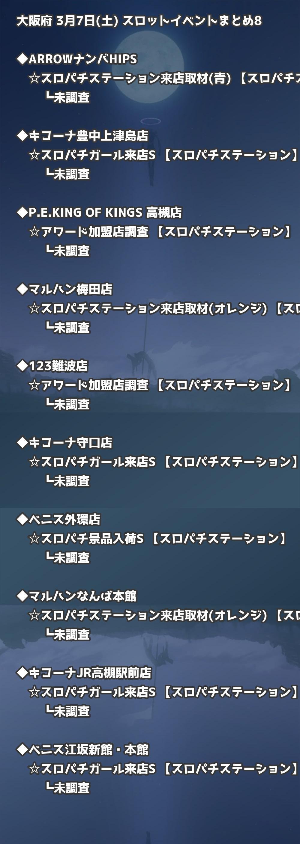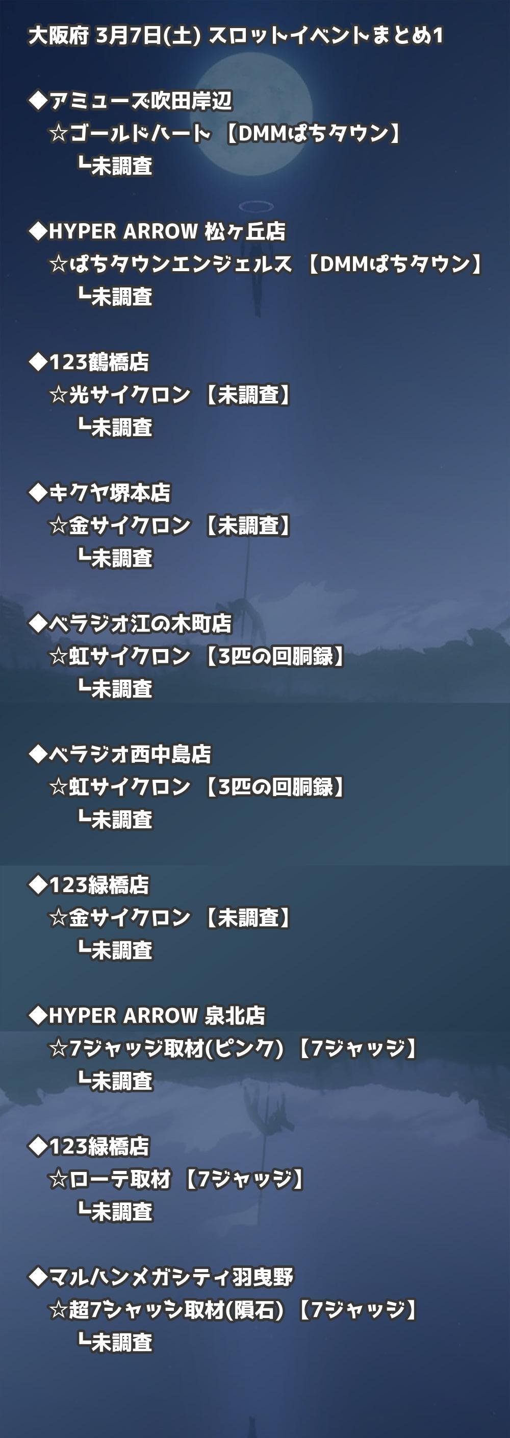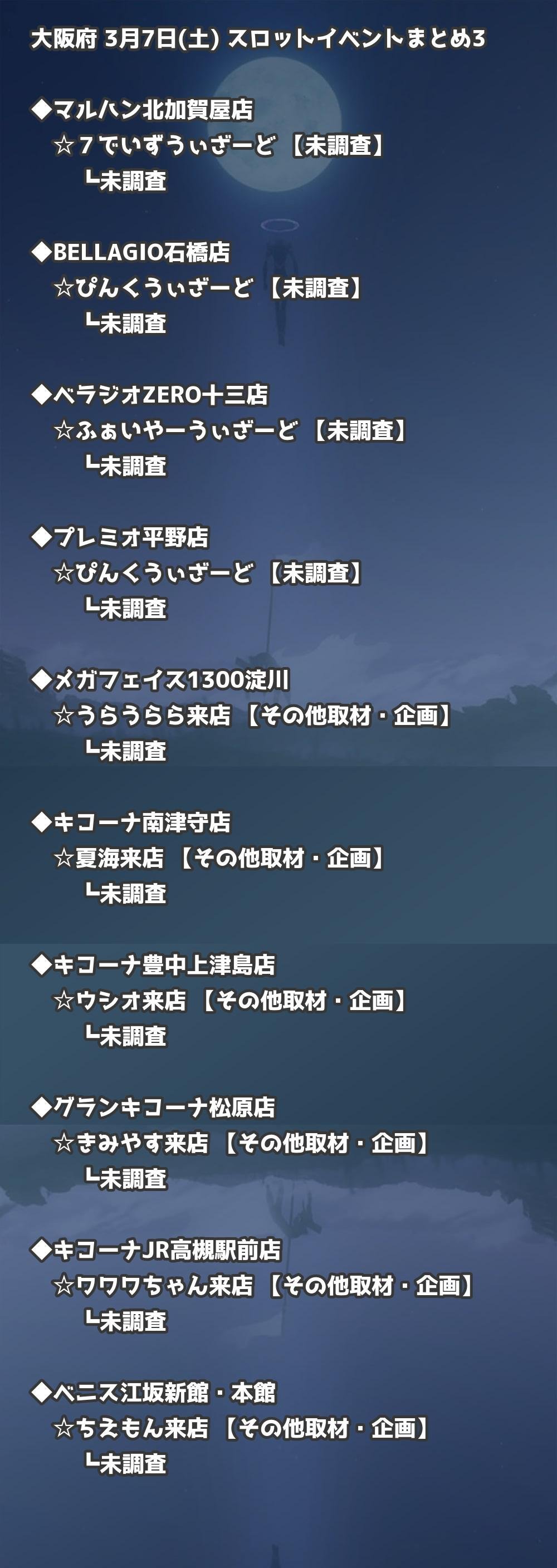 【大阪府】3月7日(土) パチンコホールイベント取材まとめ記事です。