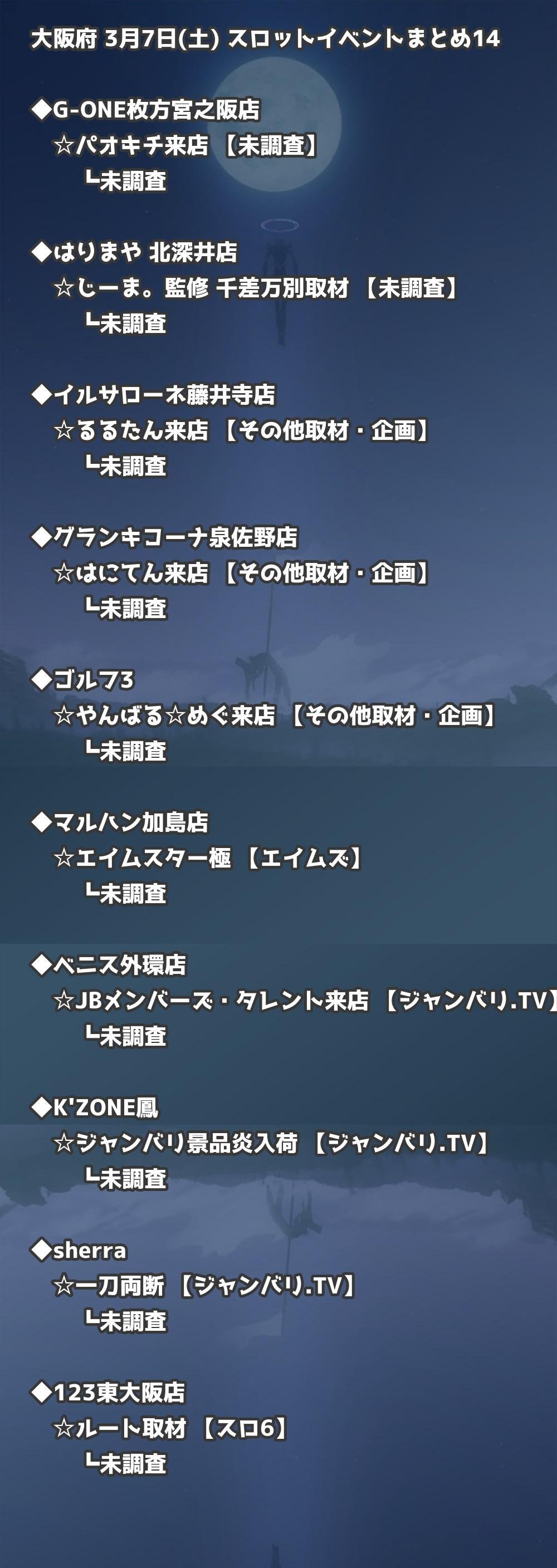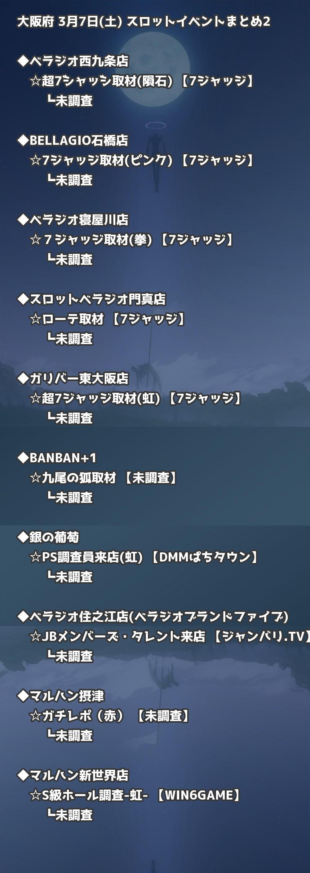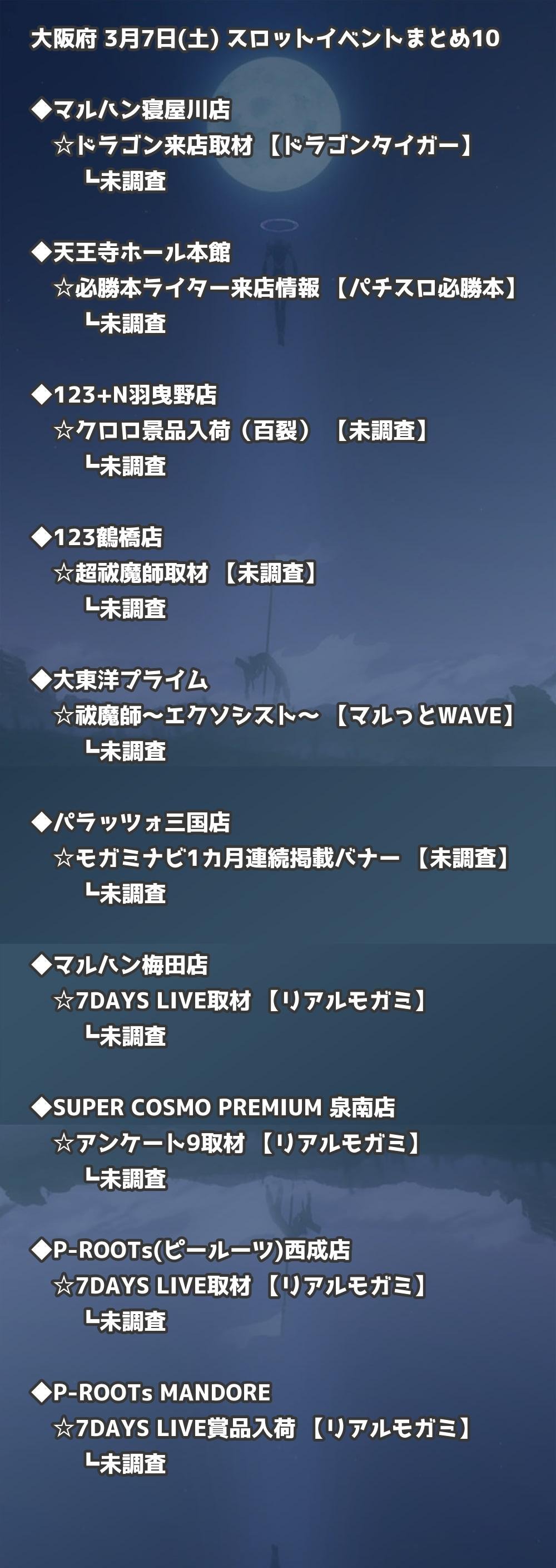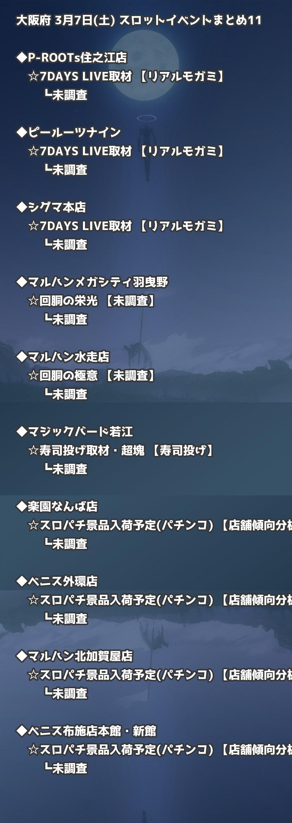 【大阪府】3月7日(土) パチンコホールイベント取材まとめ記事です。