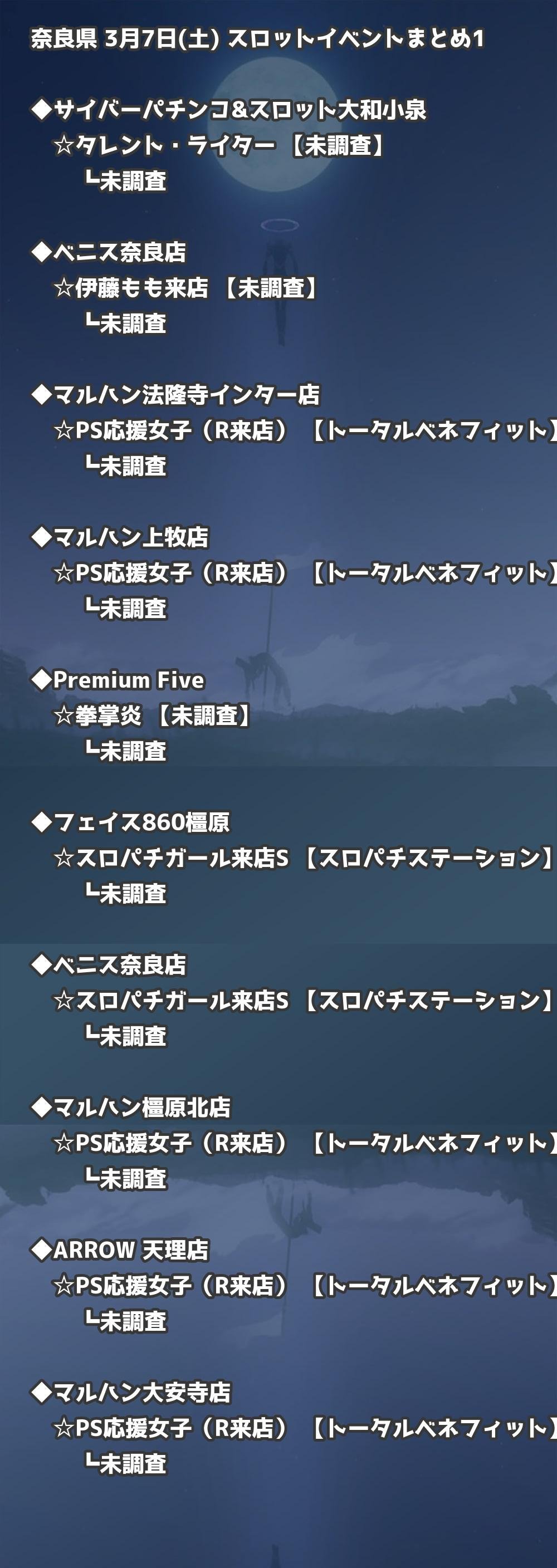 📊 奈良県 3月7日(土) 勝てるパチンコ・スロット取材店舗一覧|おすすめ順