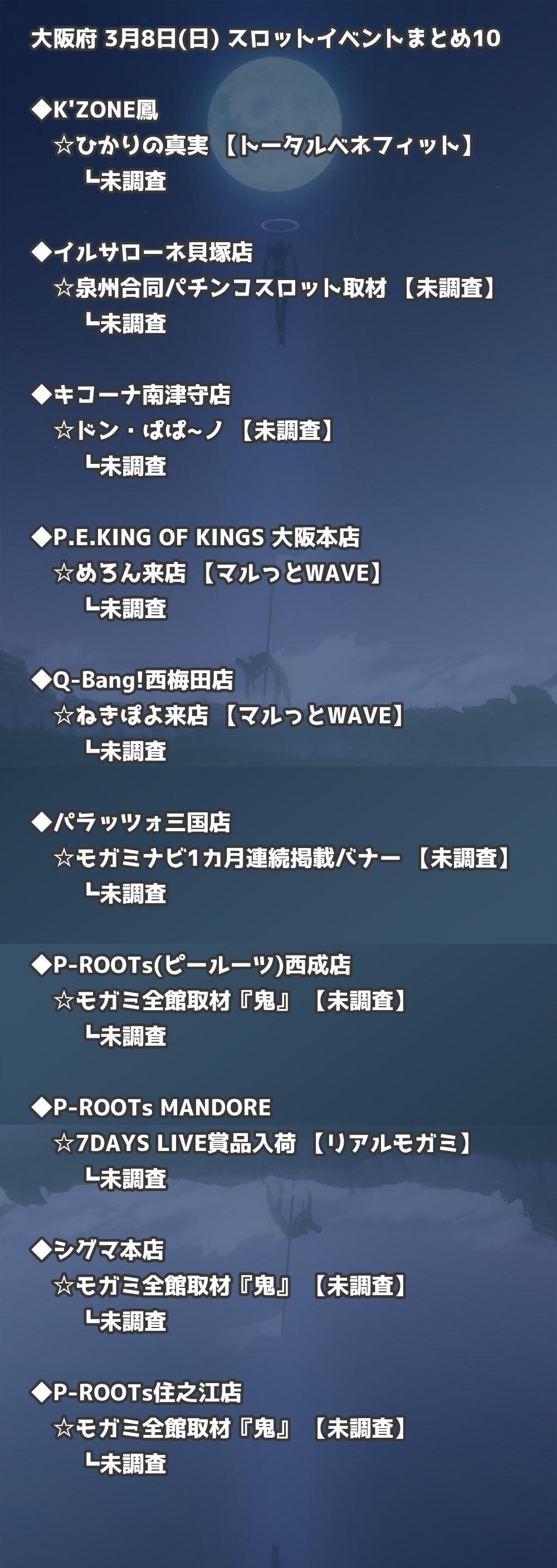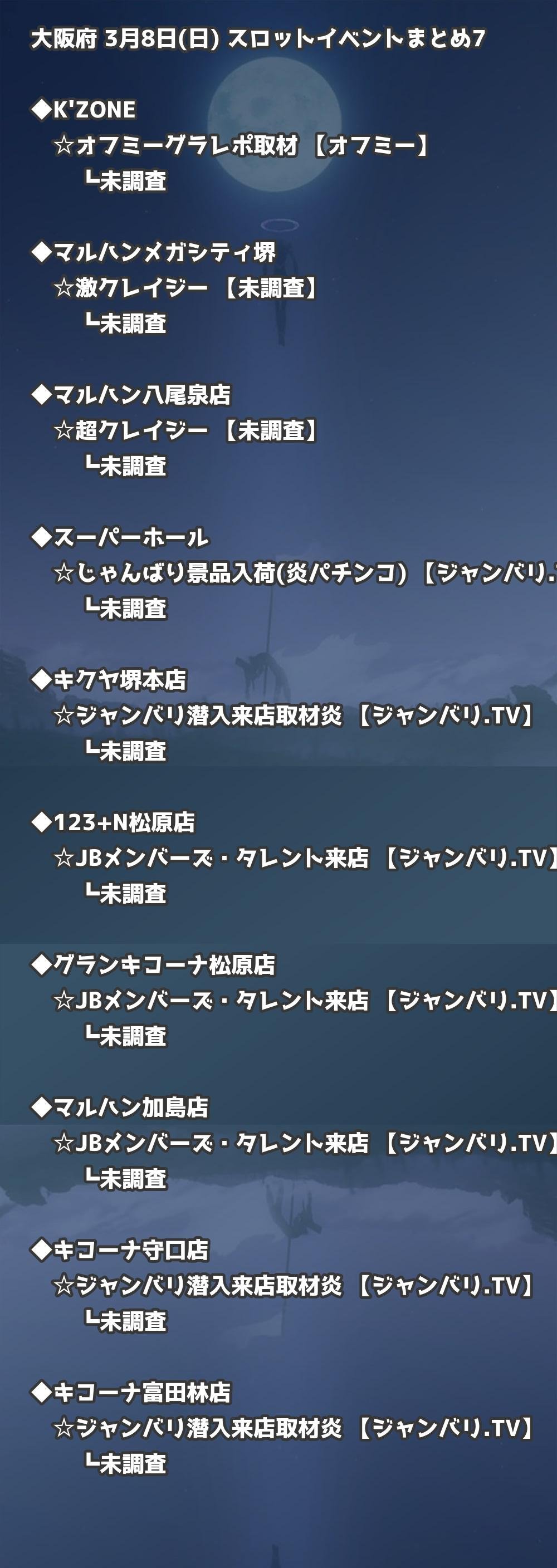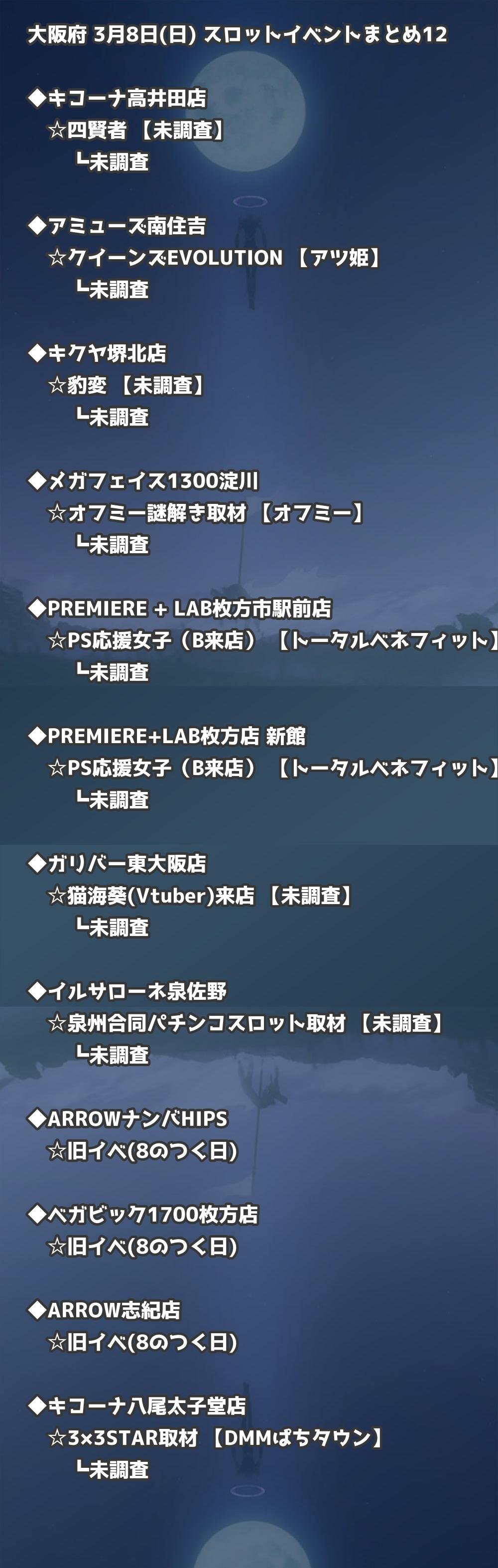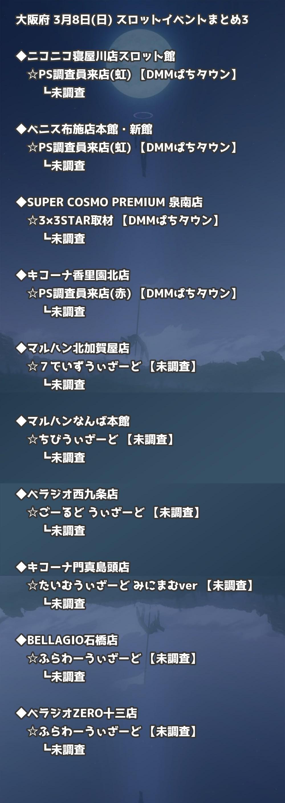 【大阪府】3月8日(日) パチンコホールイベント取材まとめ記事です。