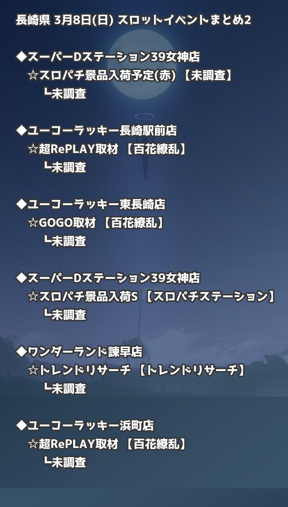 【長崎県】3月8日(日) パチンコホールイベント取材まとめ記事です。