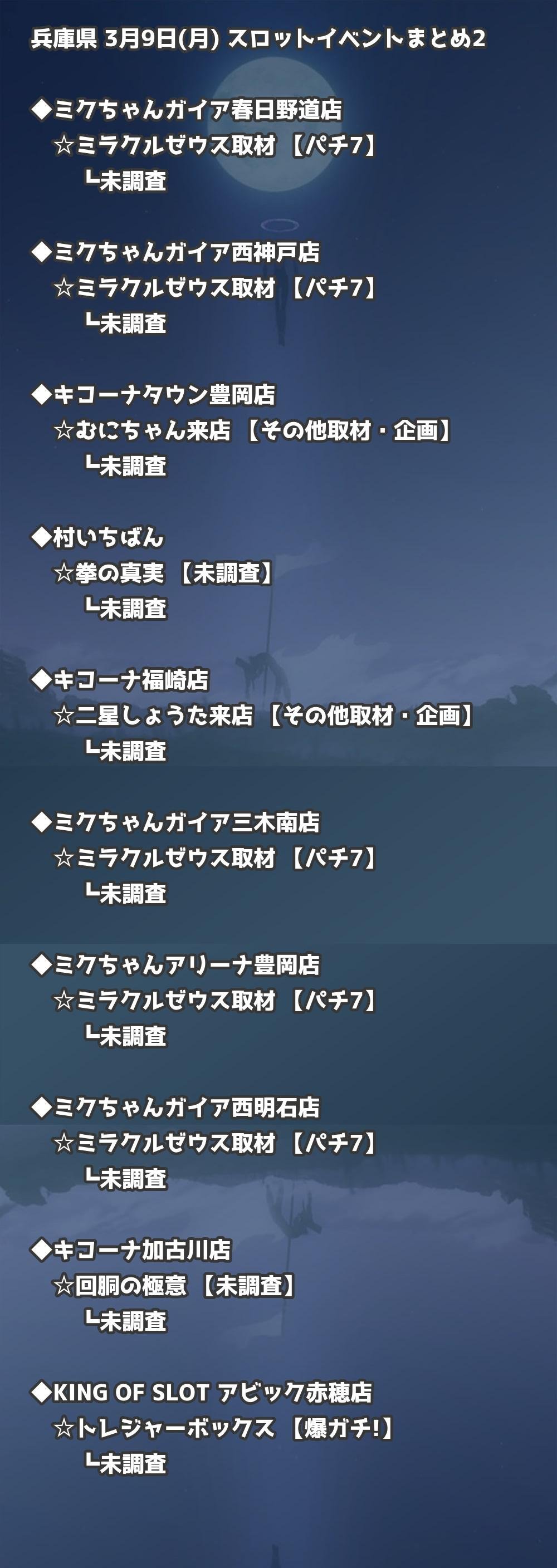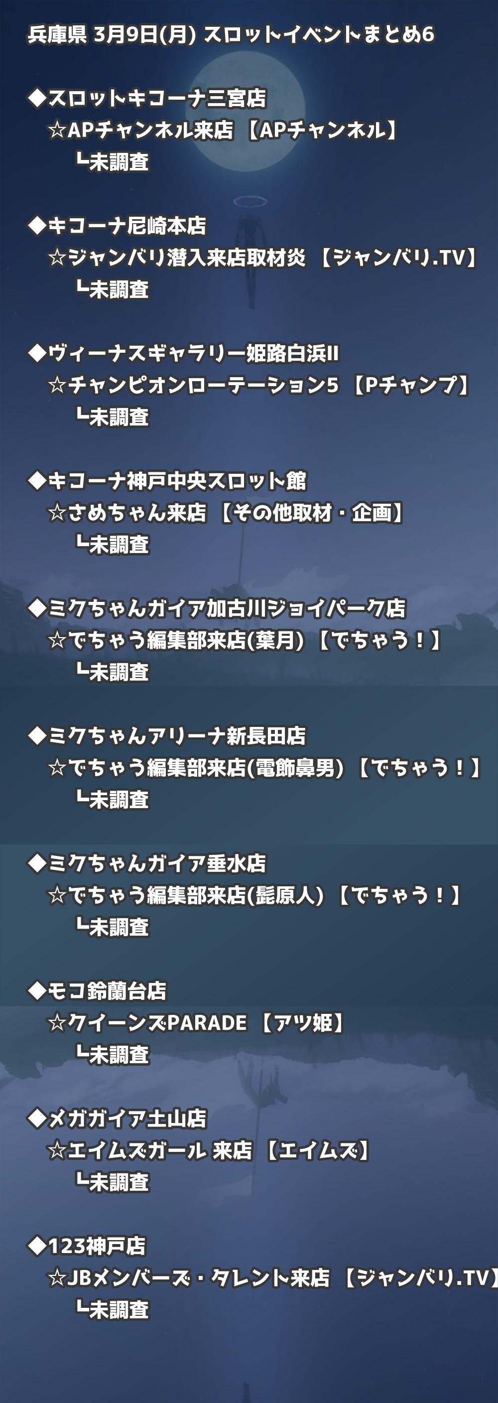 【兵庫県】3月9日(月) パチンコホールイベント取材まとめ記事です。