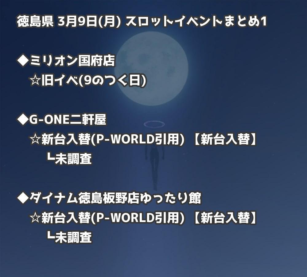 【徳島県】3月9日(月) パチンコホールイベント取材まとめ記事です。