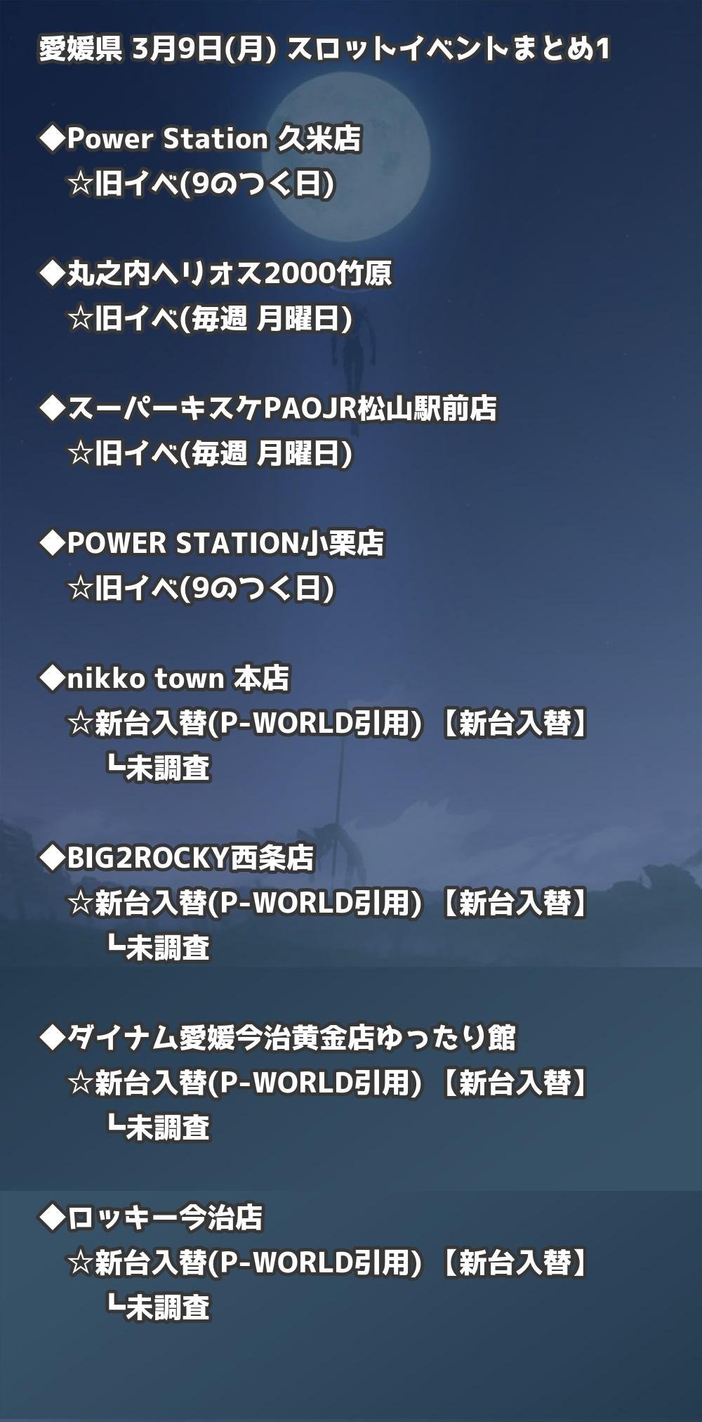 【愛媛県】3月9日(月) パチンコホールイベント取材まとめ記事です。