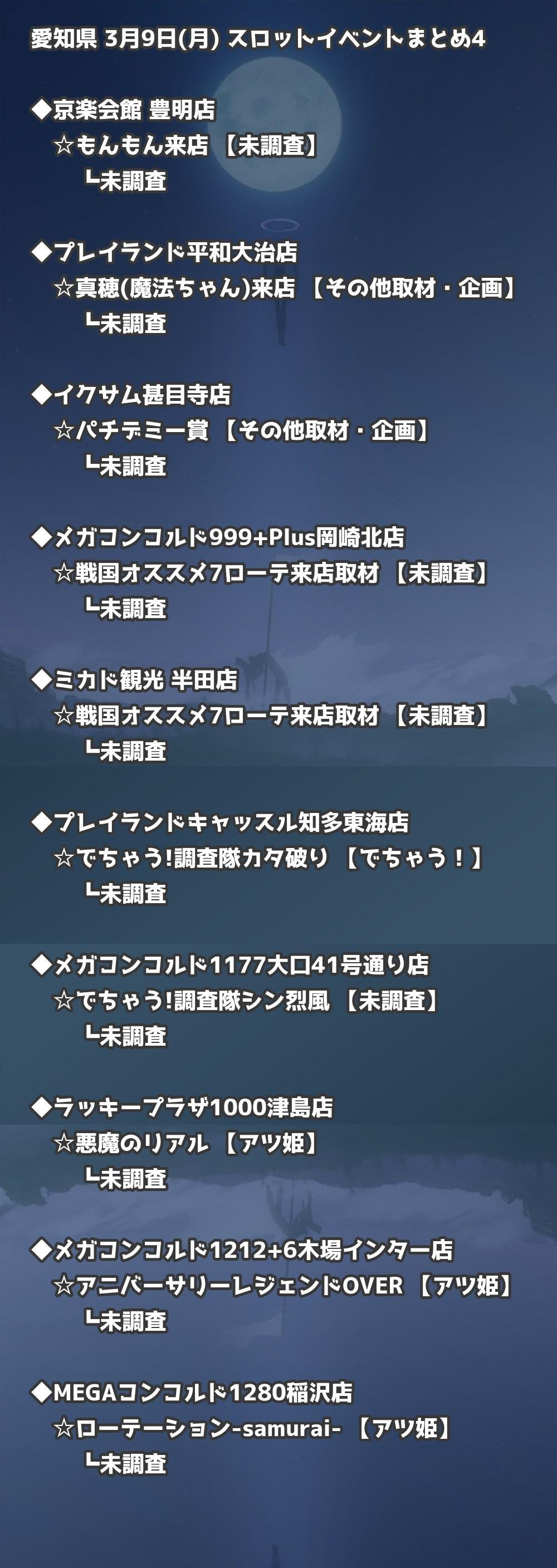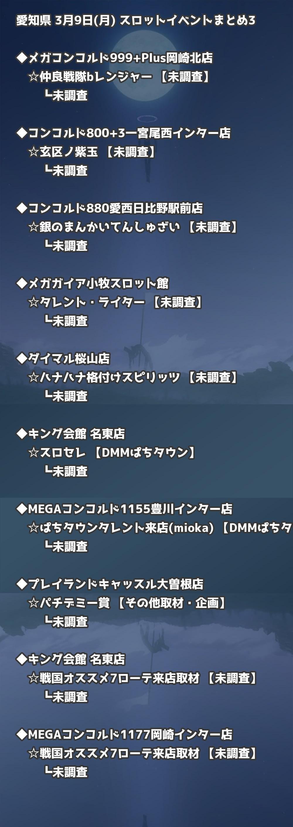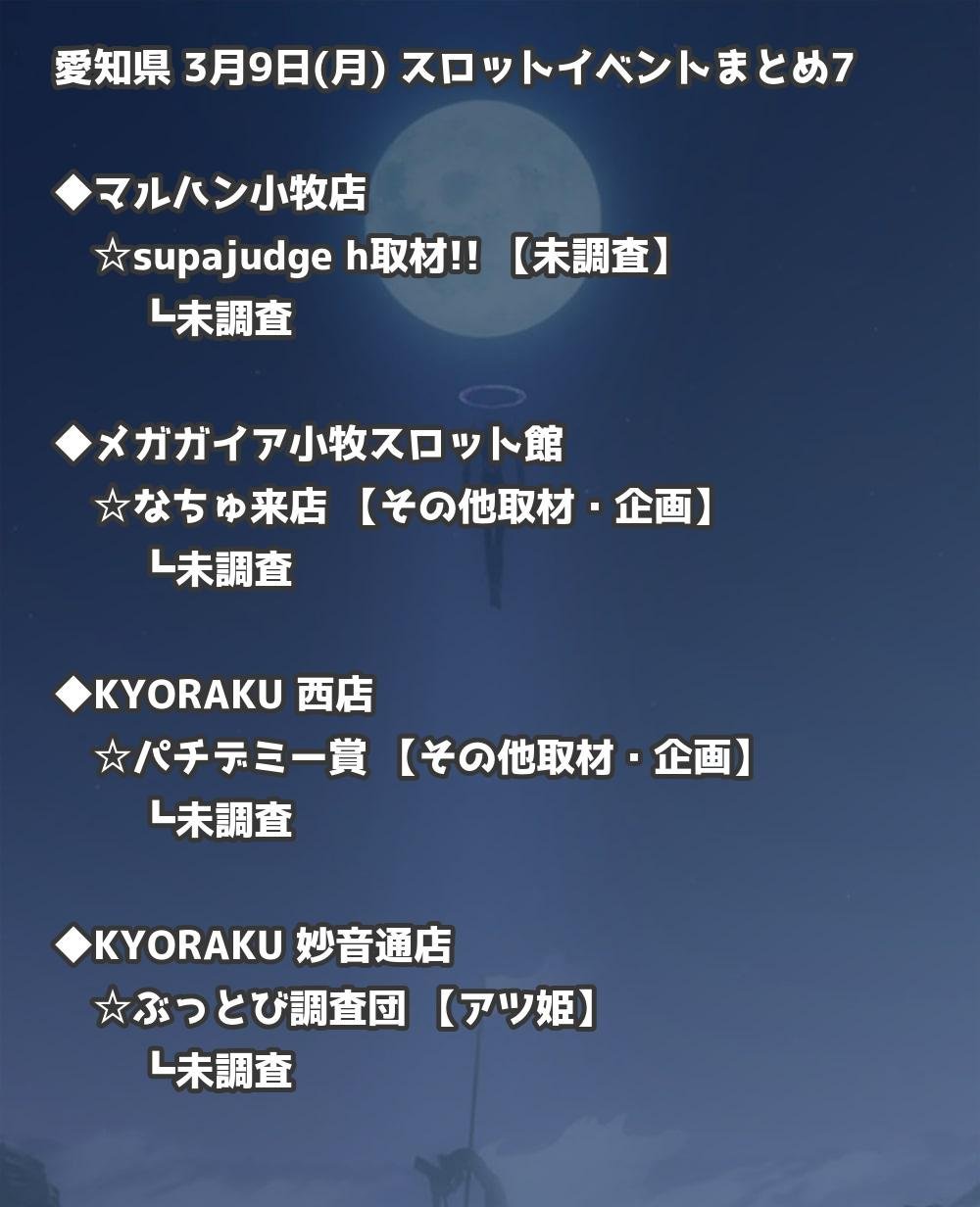 【愛知県】3月9日(月) パチンコホールイベント取材まとめ記事です。