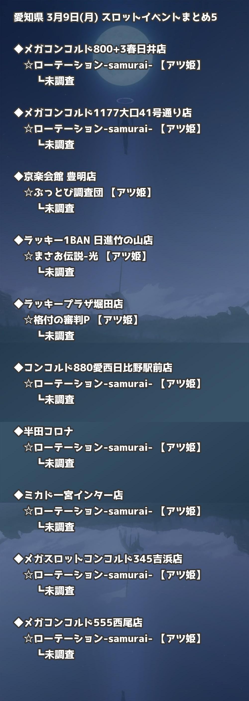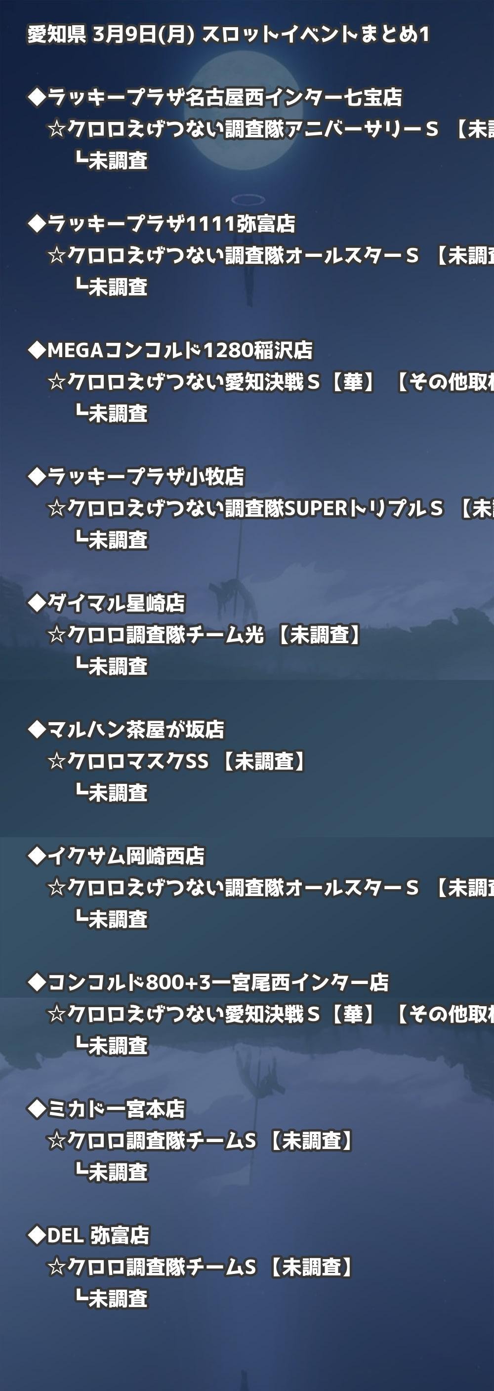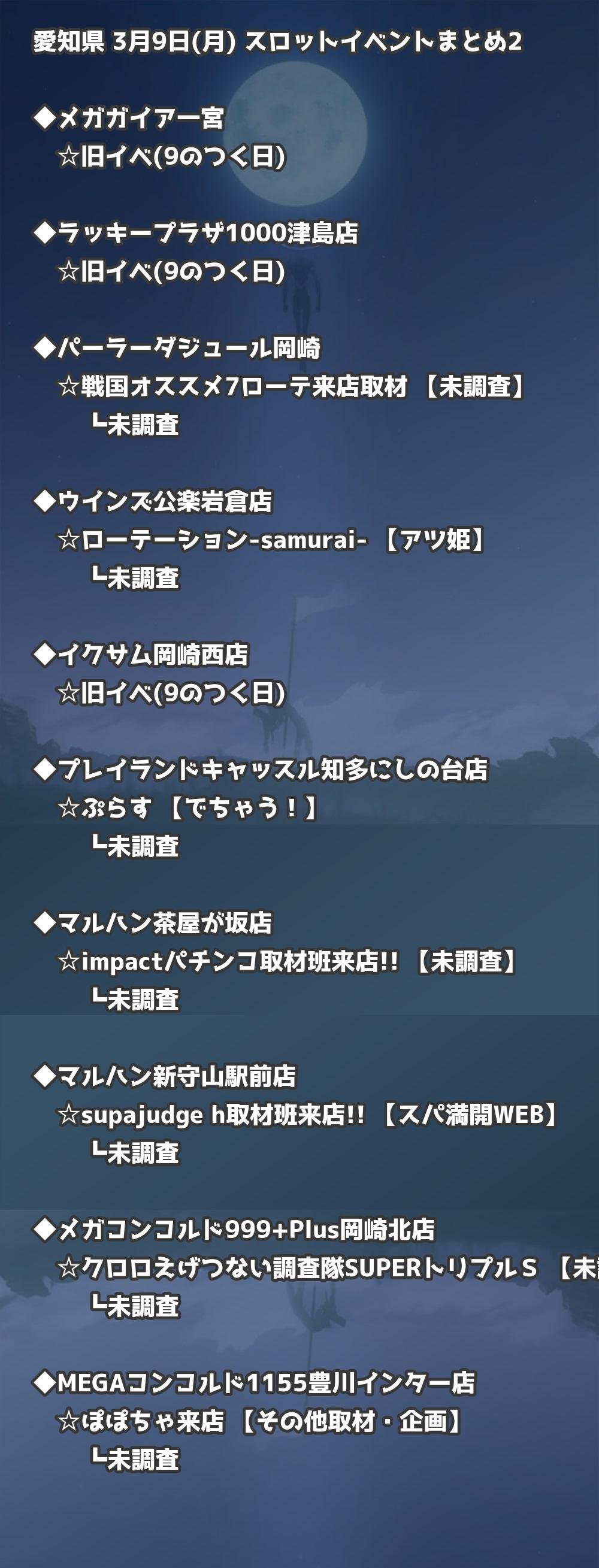 【愛知県】3月9日(月) パチンコホールイベント取材まとめ記事です。