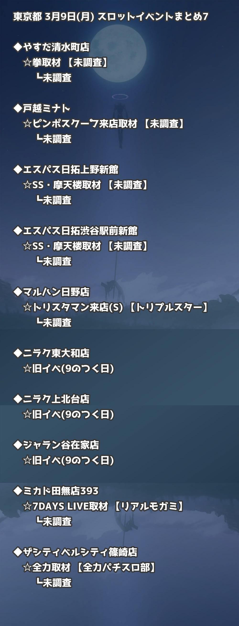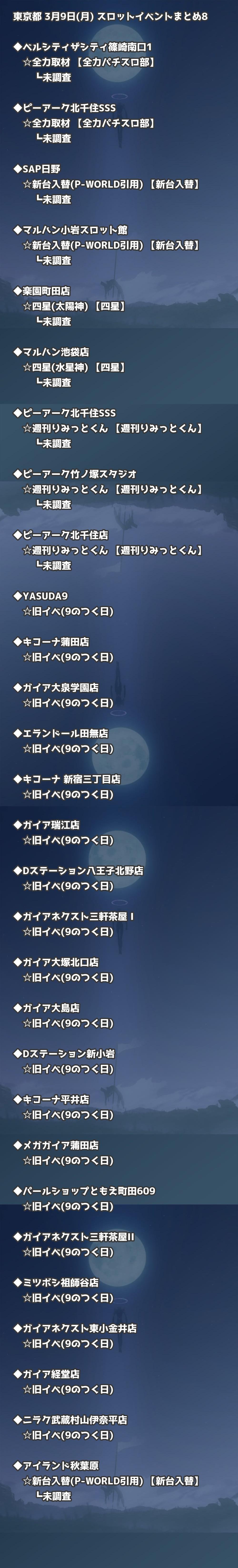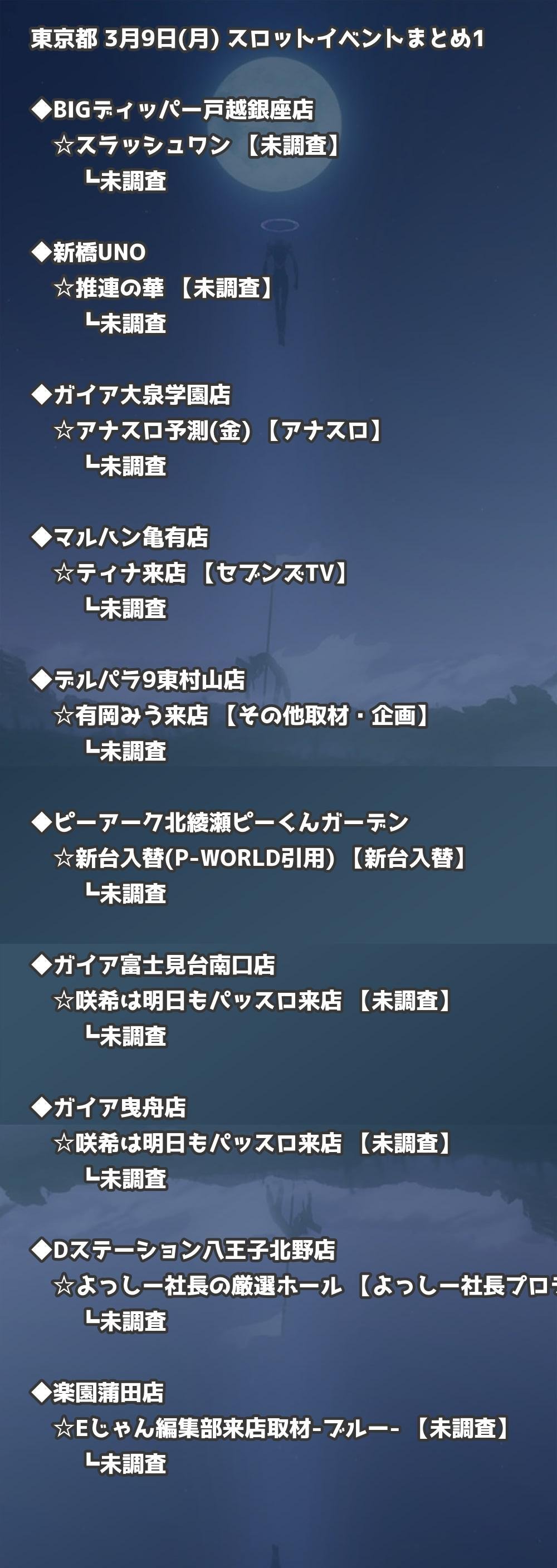 【東京都】3月9日(月) パチンコホールイベント取材まとめ記事です。