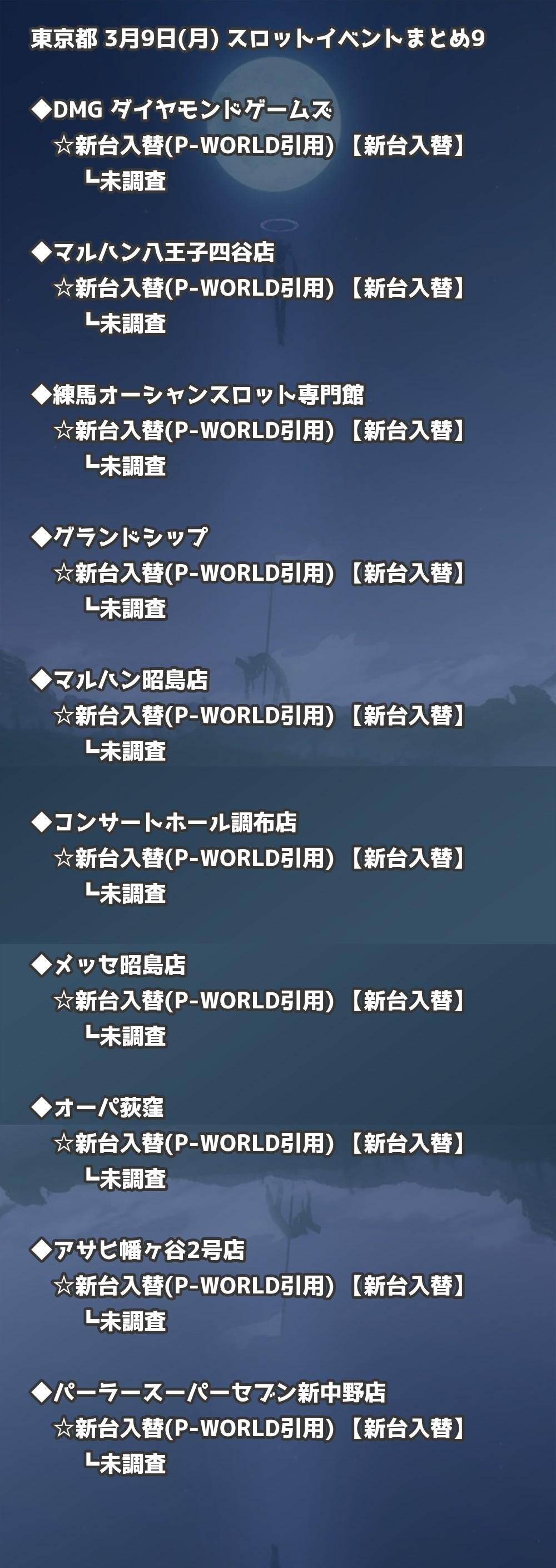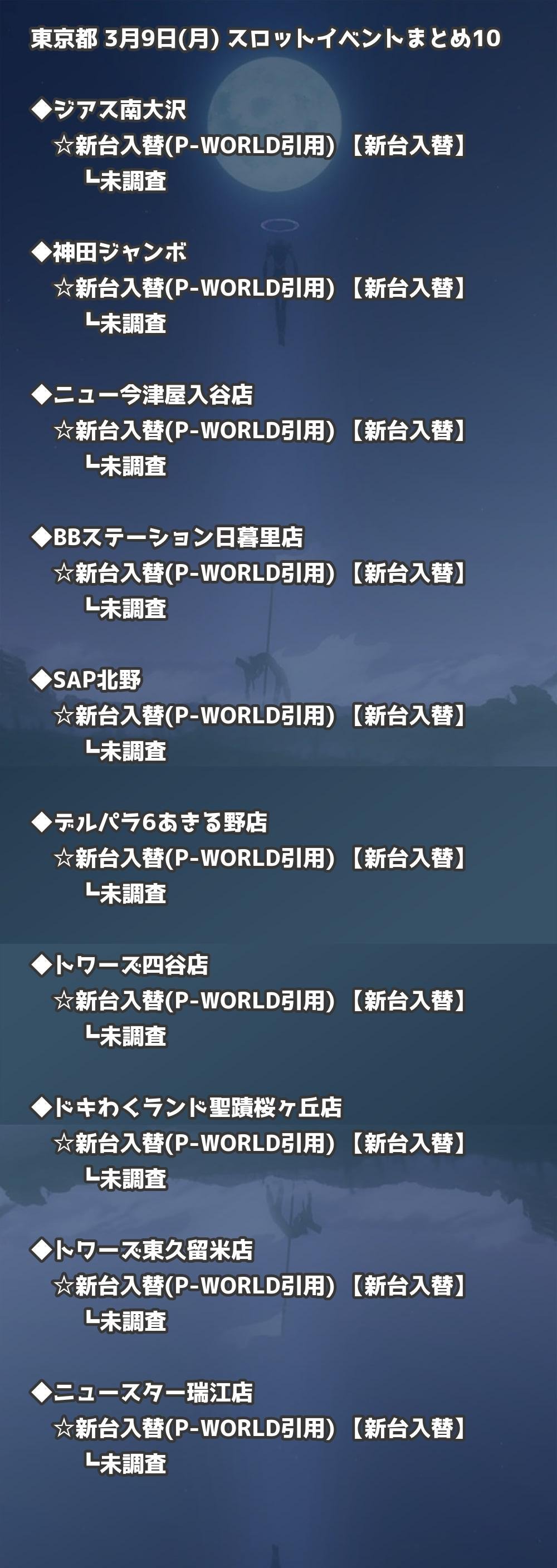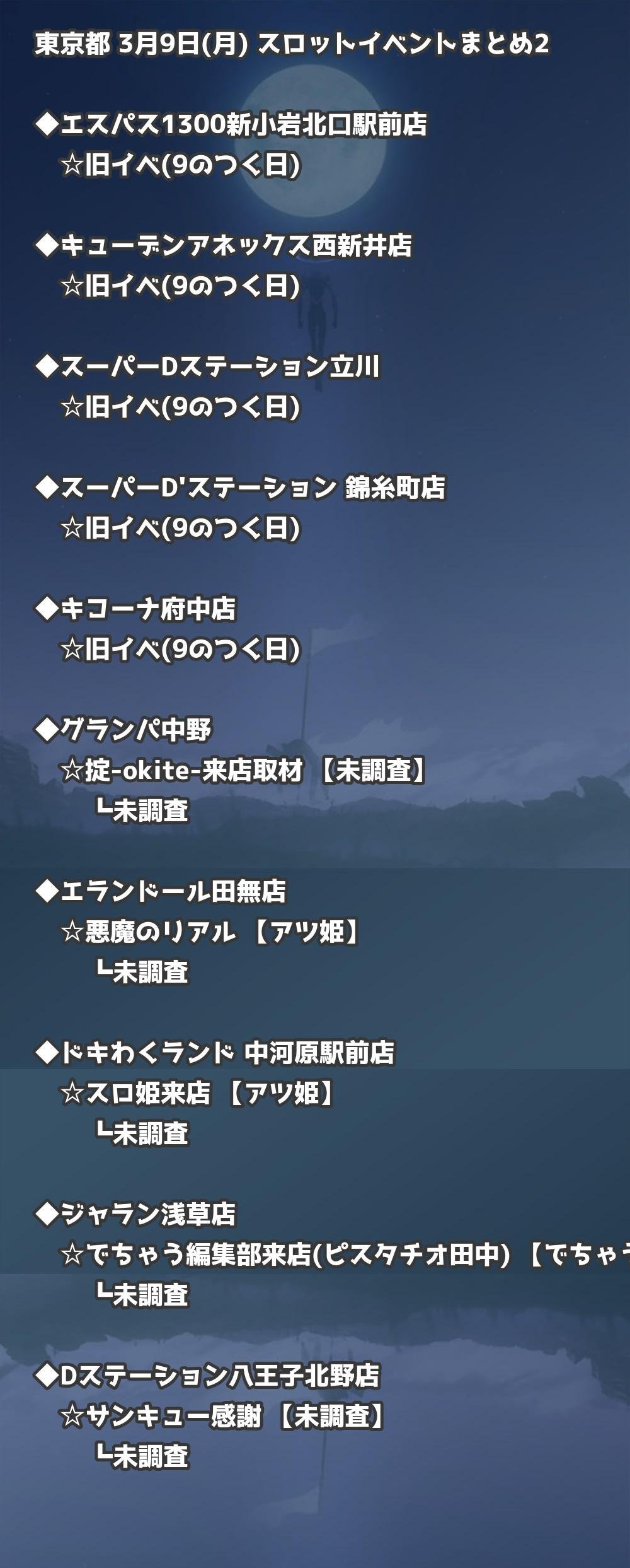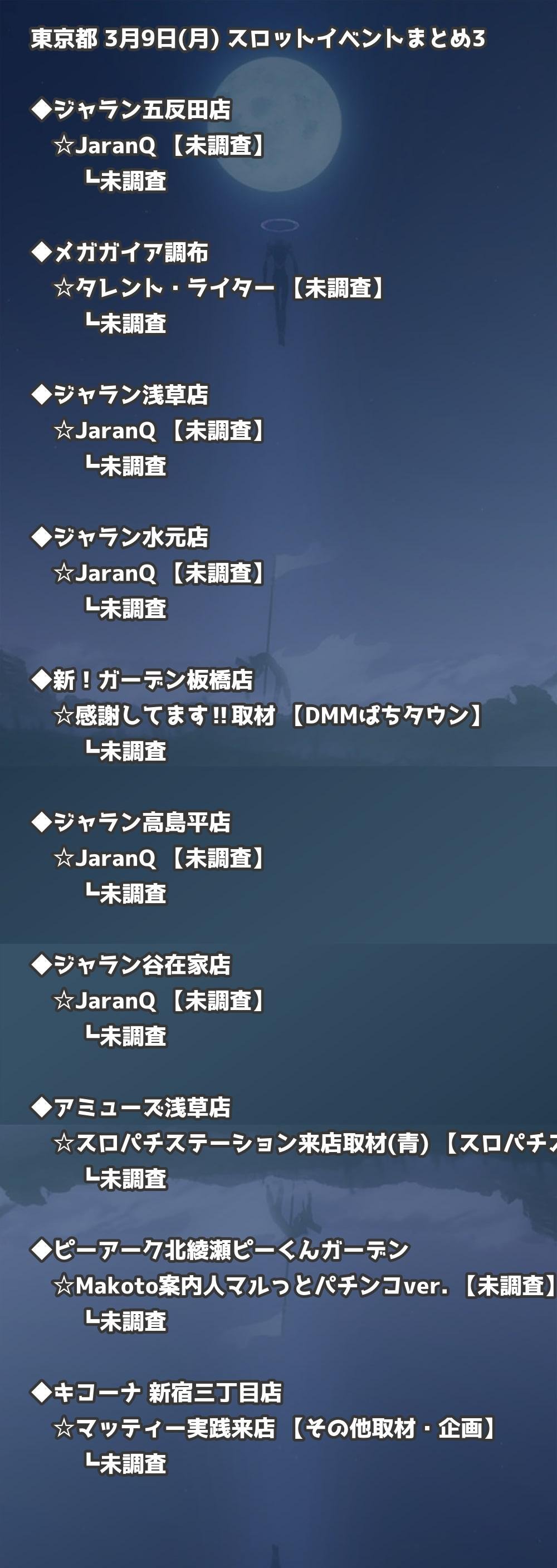 【東京都】3月9日(月) パチンコホールイベント取材まとめ記事です。