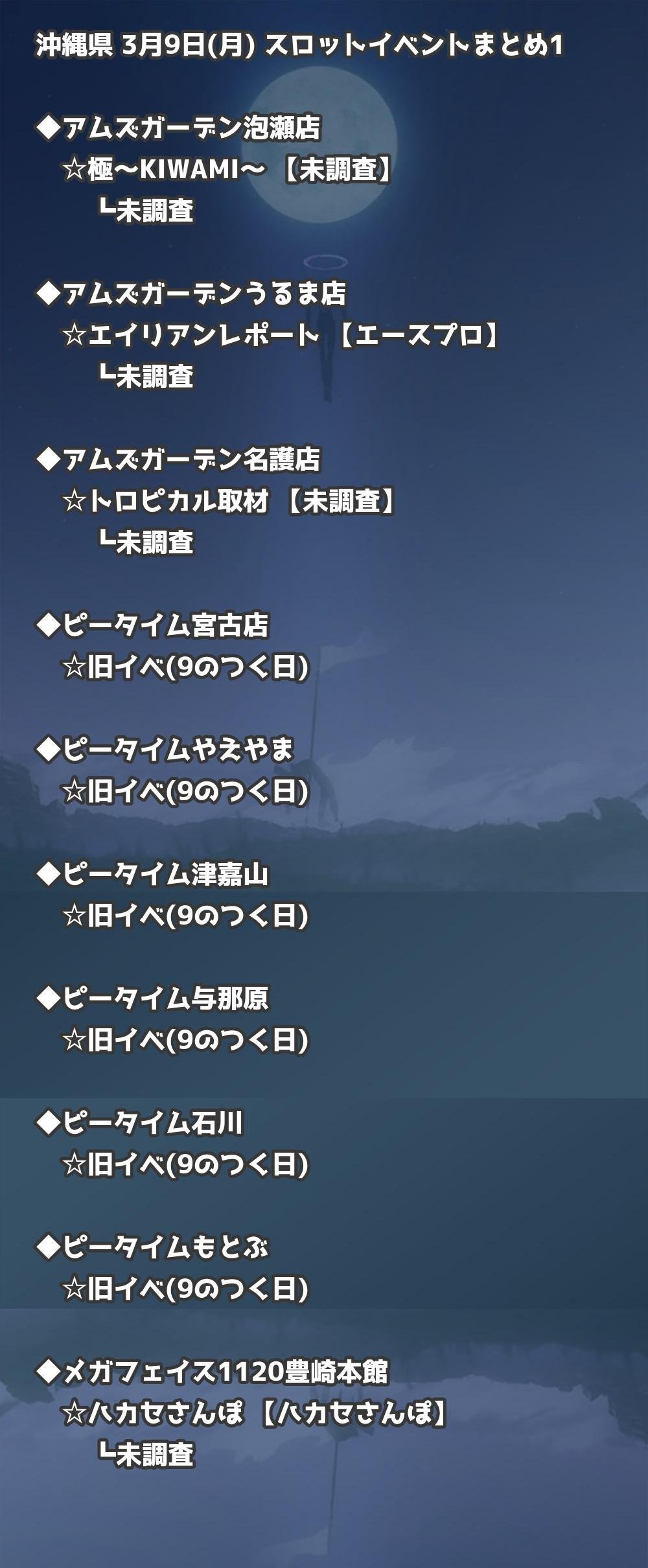 【沖縄県】3月9日(月) パチンコホールイベント取材まとめ記事です。