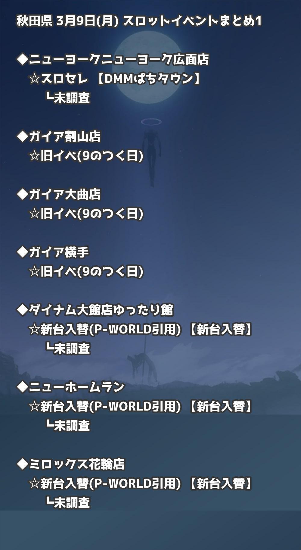 【秋田県】3月9日(月) パチンコホールイベント取材まとめ記事です。