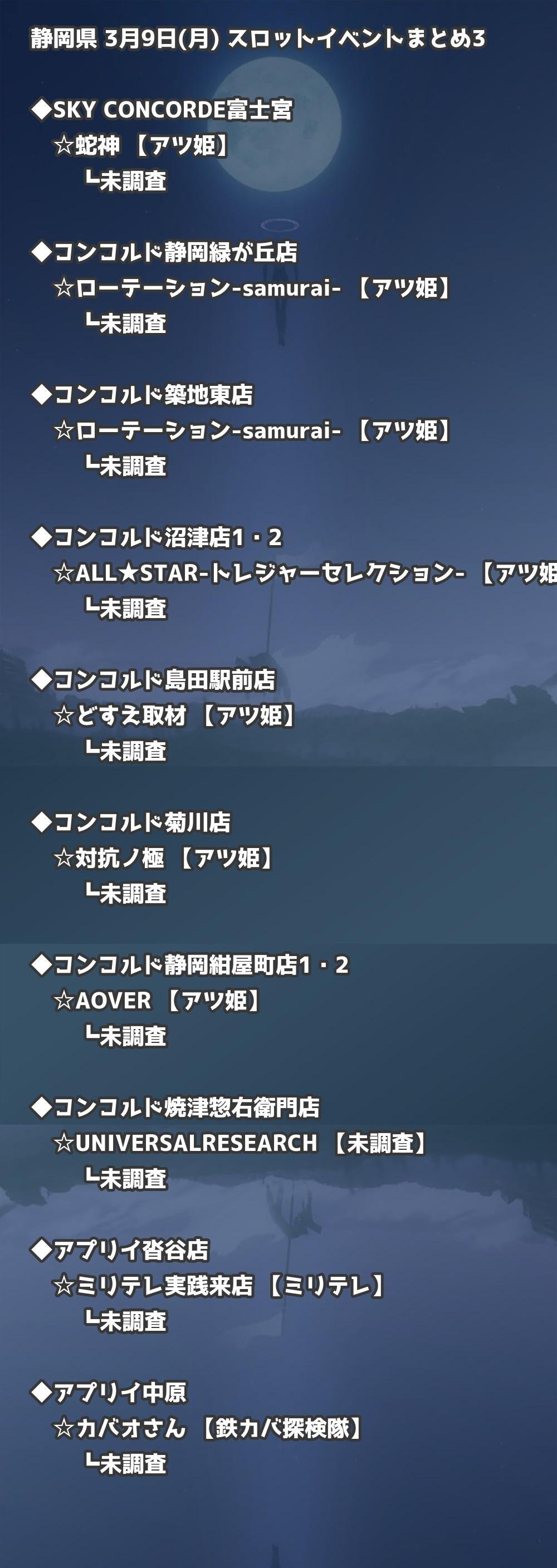 【静岡県】3月9日(月) パチンコホールイベント取材まとめ記事です。