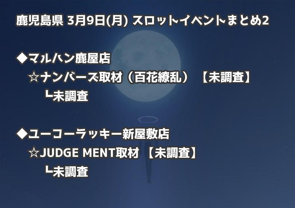 【鹿児島県】3月9日(月) パチンコホールイベント取材まとめ記事です。
