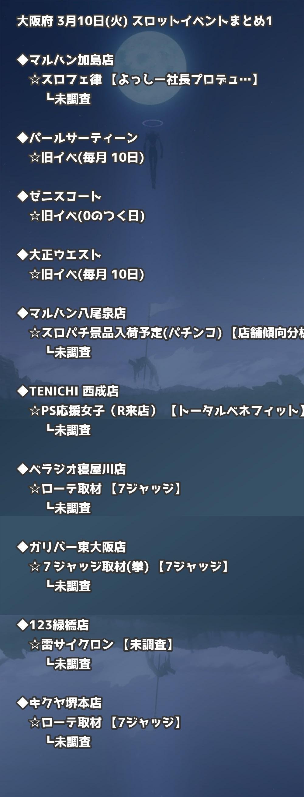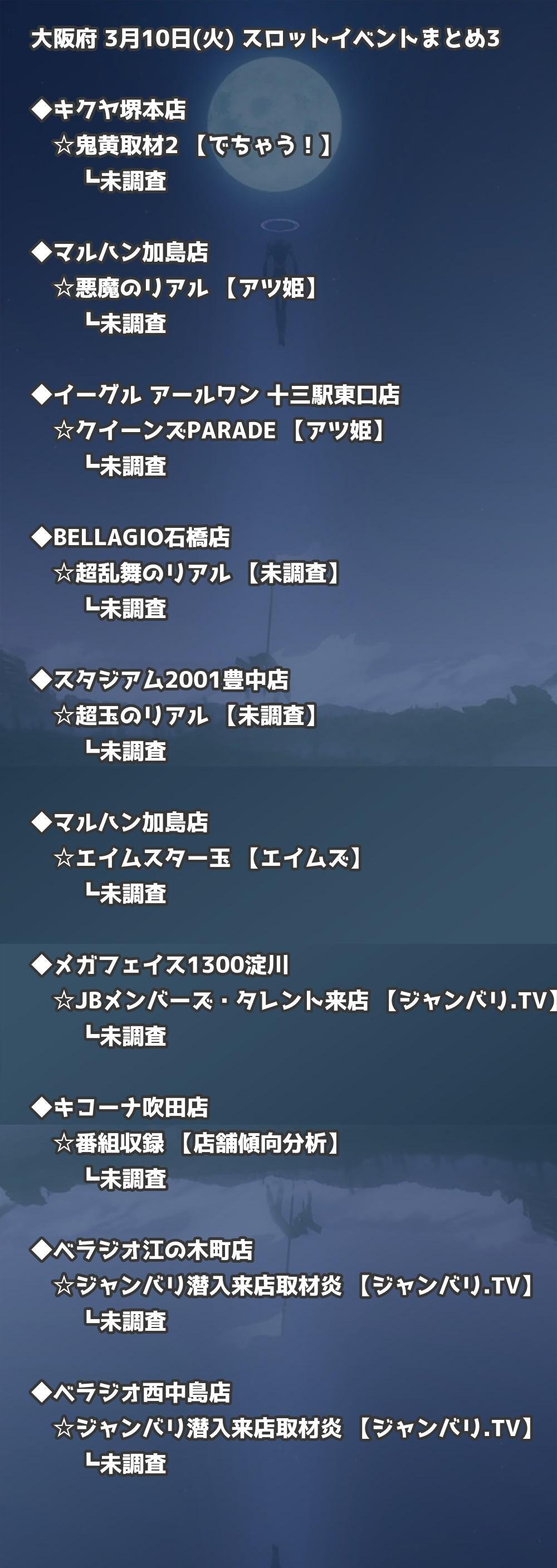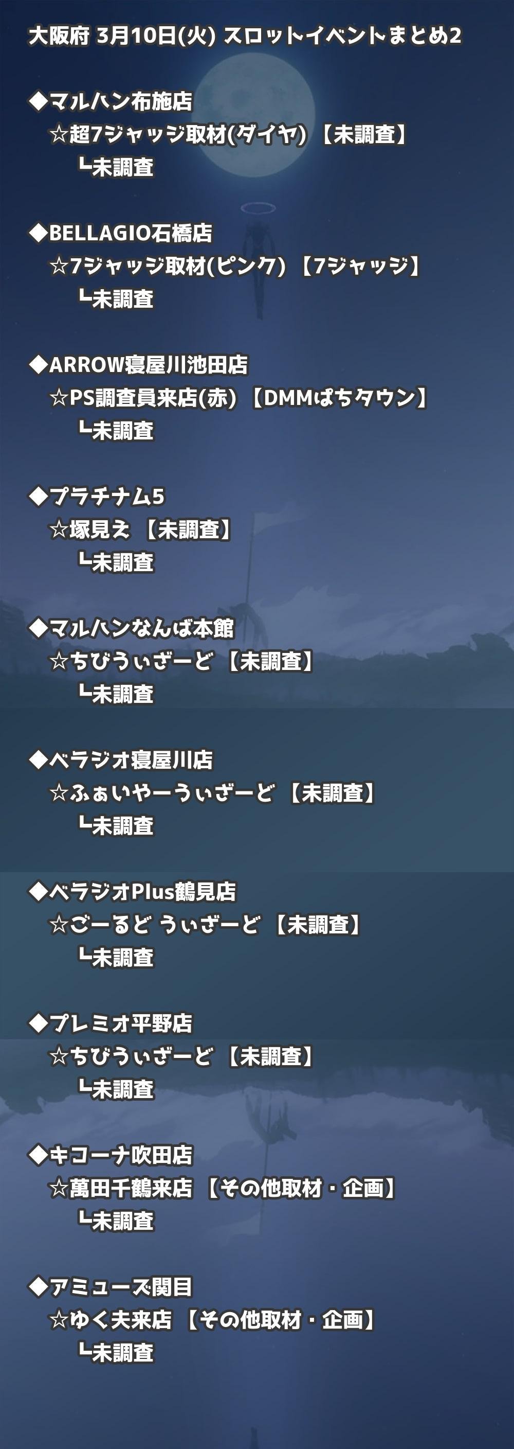 【大阪府】3月10日(火) パチンコホールイベント取材まとめ記事です。