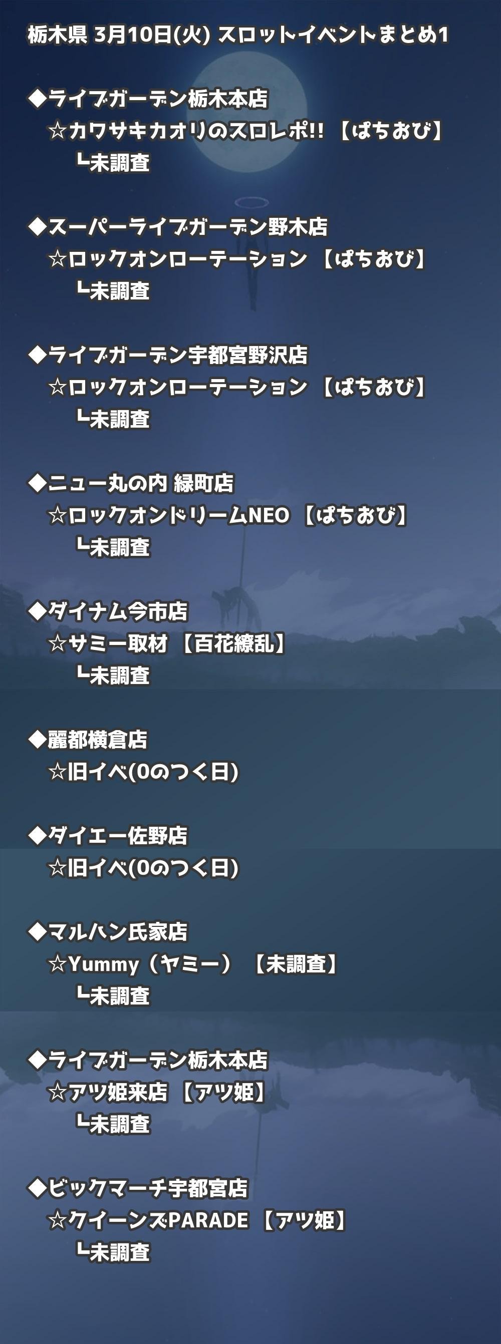 【栃木県】3月10日(火) パチンコホールイベント取材まとめ記事です。