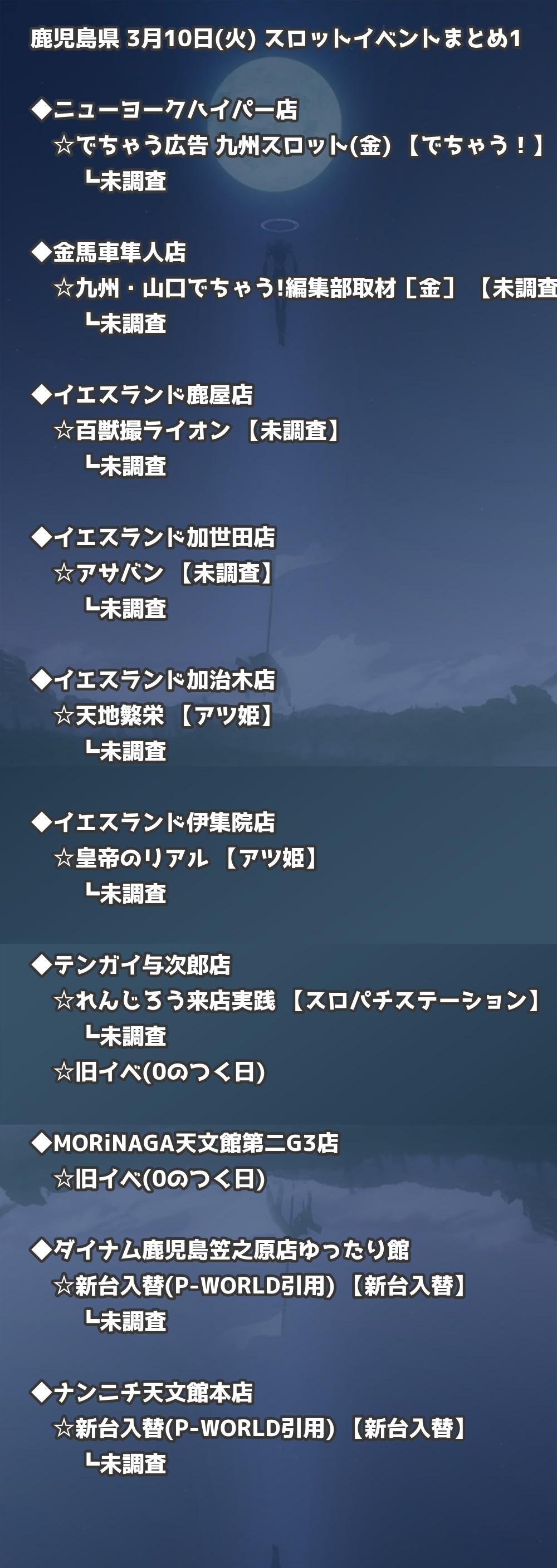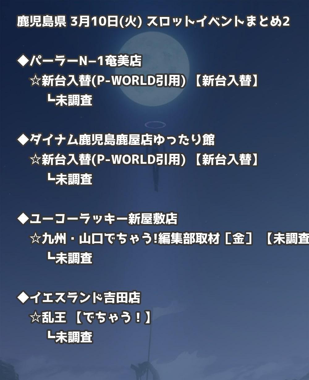 【鹿児島県】3月10日(火) パチンコホールイベント取材まとめ記事です。