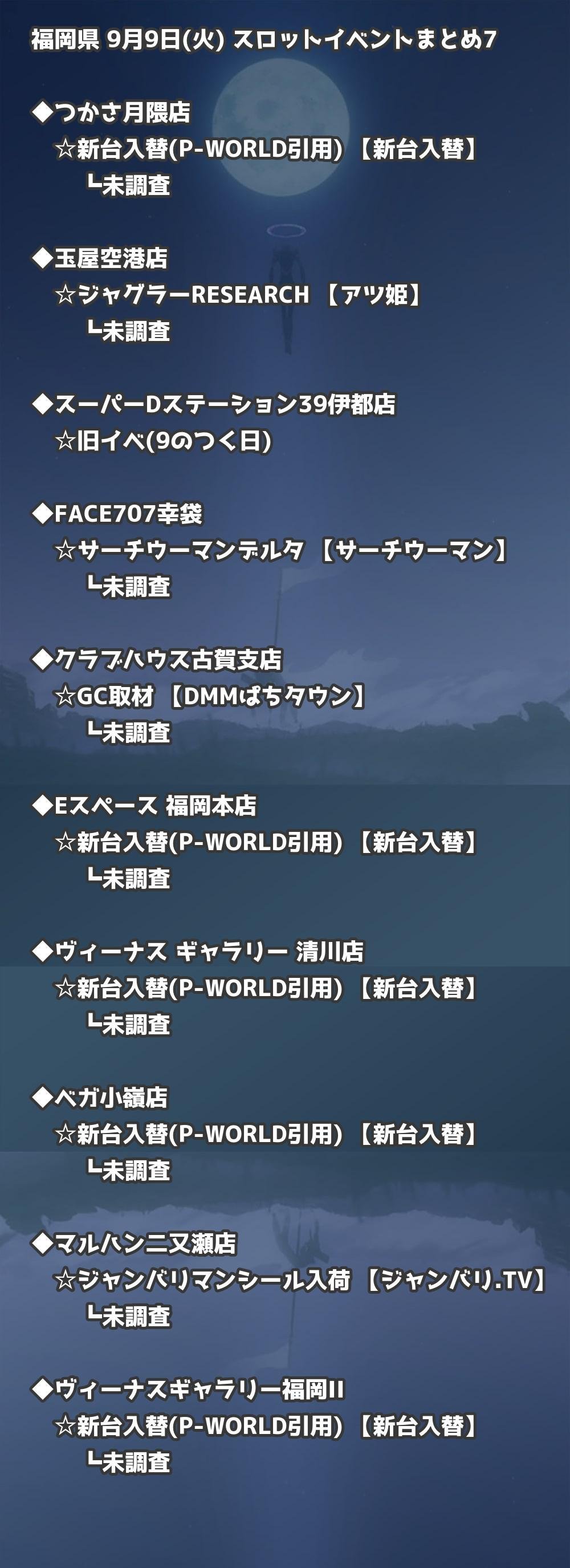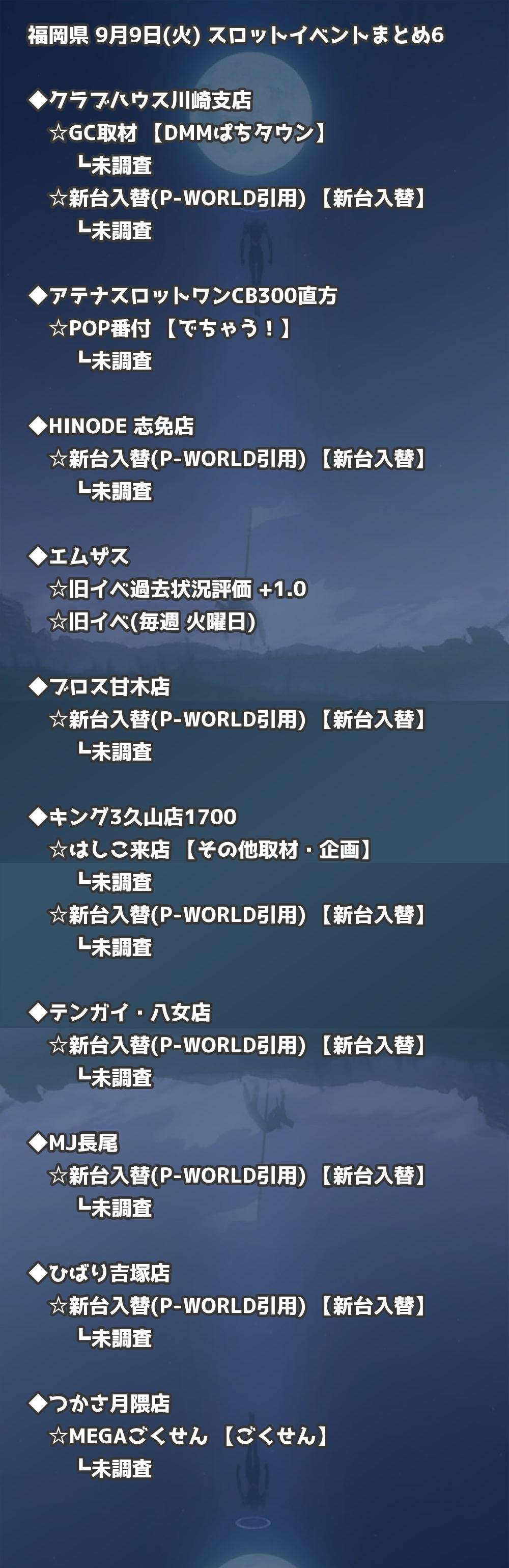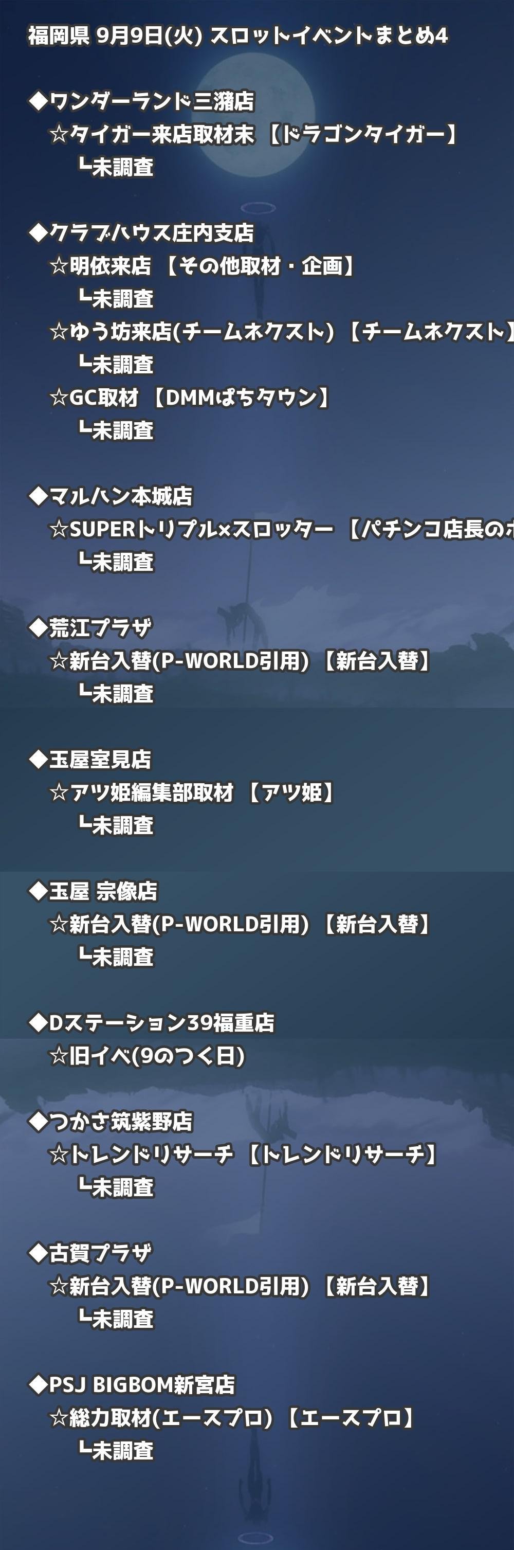 📊 福岡県 9月9日(火) 勝てるパチンコ・スロット取材店舗一覧|おすすめ順
