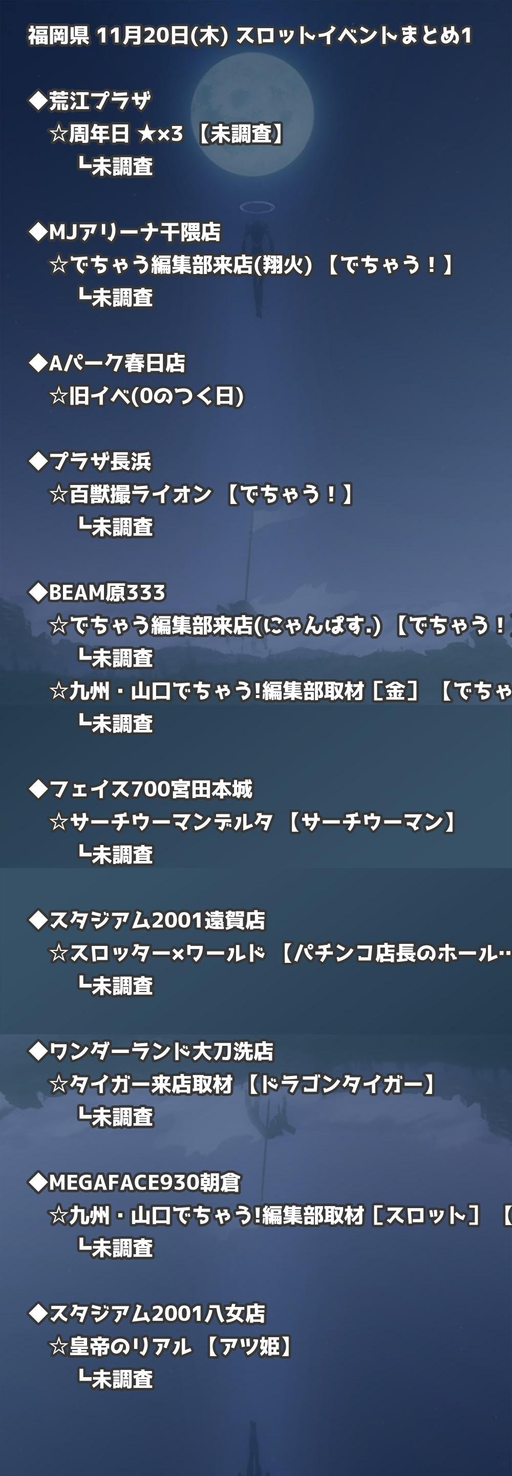 福岡県内のパチンコファンの皆様へ。11月20日(木)の博多・天神エリアを中心としたパチンコホールイベント取材まとめ記事です。