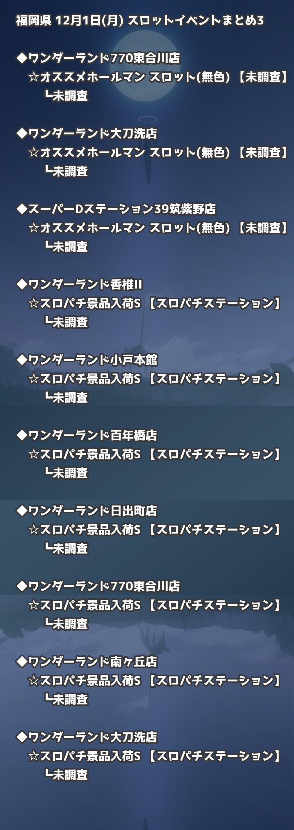 福岡県内のパチンコファンの皆様へ。12月1日(月)の博多・天神エリアを中心としたパチンコホールイベント取材まとめ記事です。