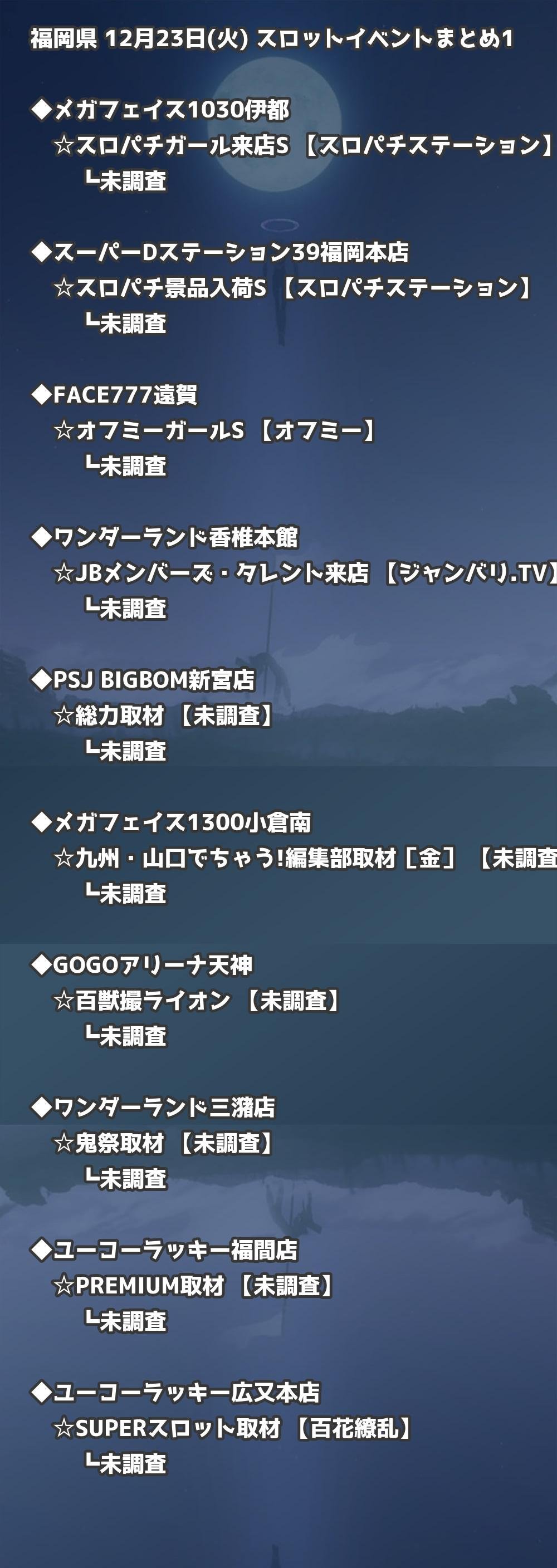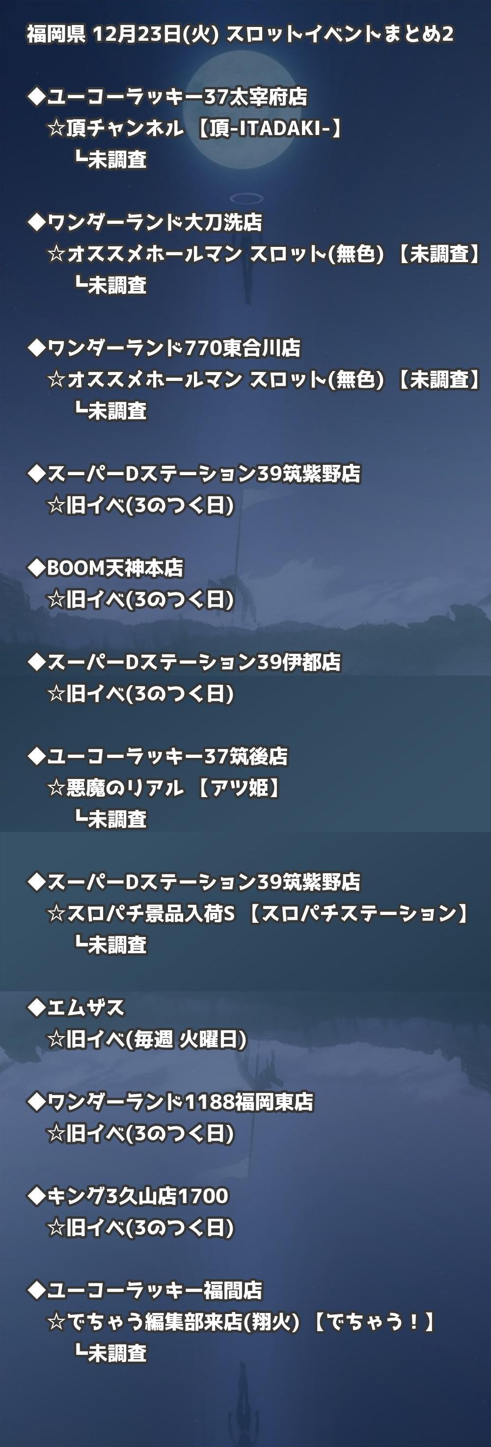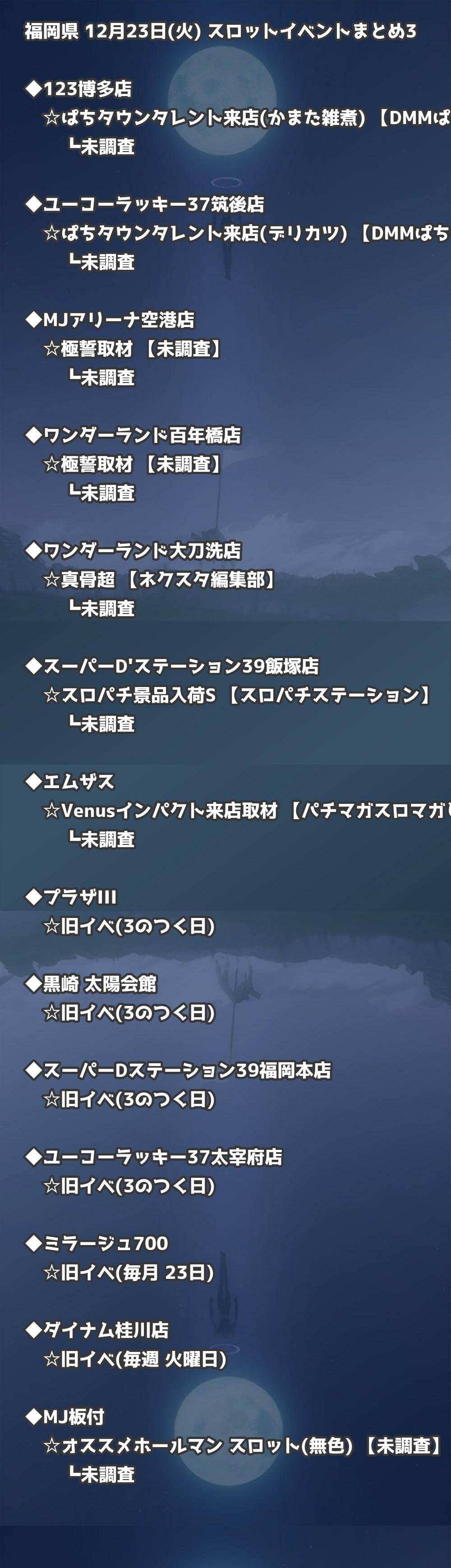福岡県内のパチンコファンの皆様へ。12月23日(火)の博多・天神エリアを中心としたパチンコホールイベント取材まとめ記事です。