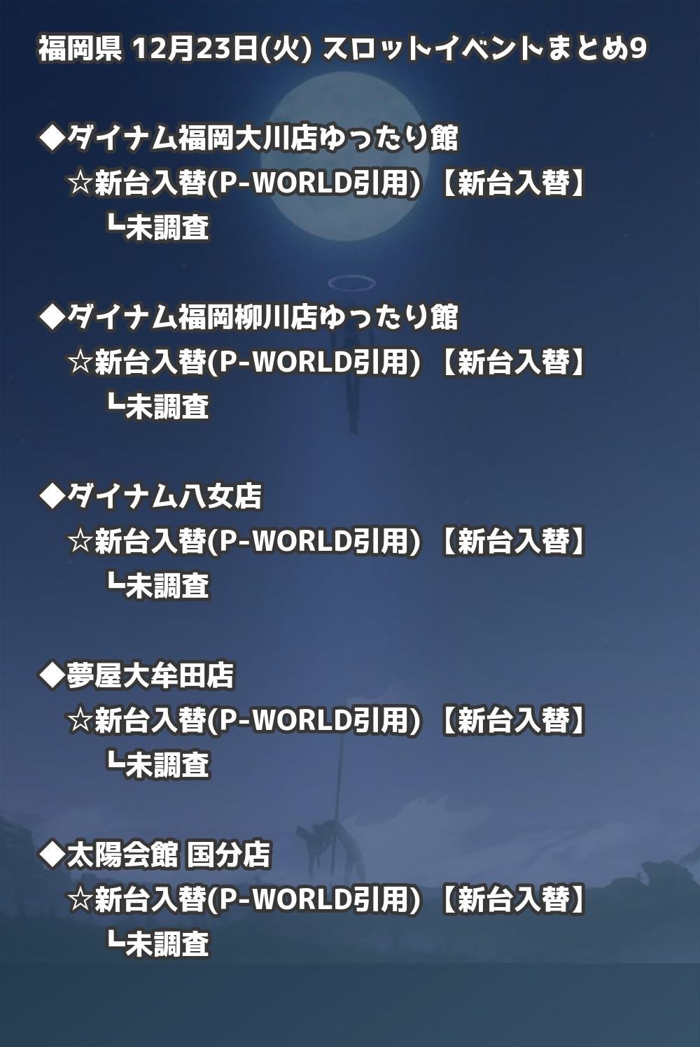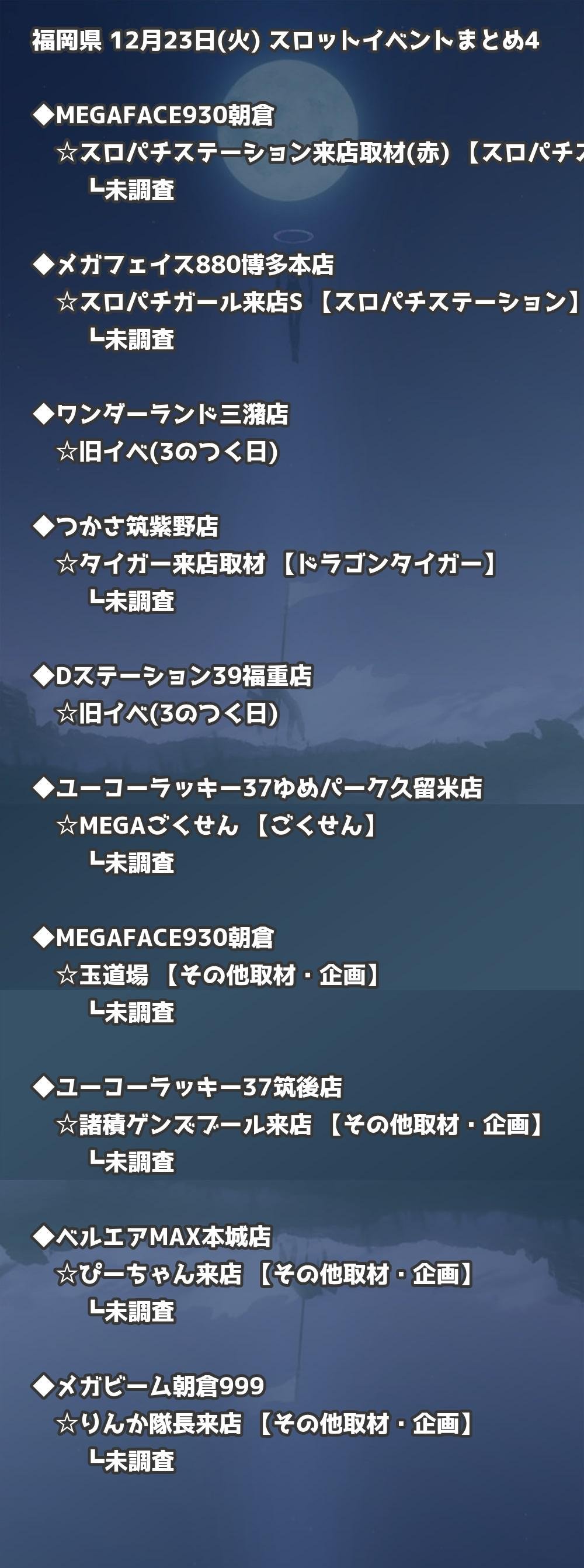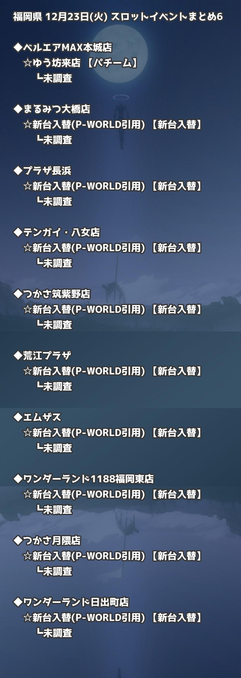 福岡県内のパチンコファンの皆様へ。12月23日(火)の博多・天神エリアを中心としたパチンコホールイベント取材まとめ記事です。