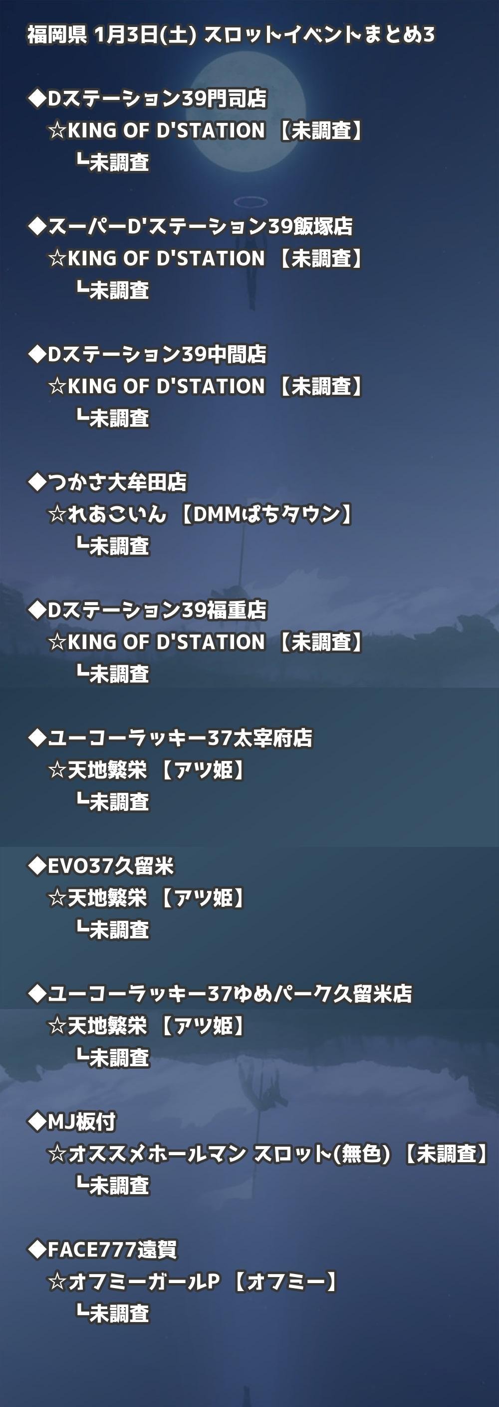福岡県内のパチンコファンの皆様へ。1月3日(土)の博多・天神エリアを中心としたパチンコホールイベント取材まとめ記事です。