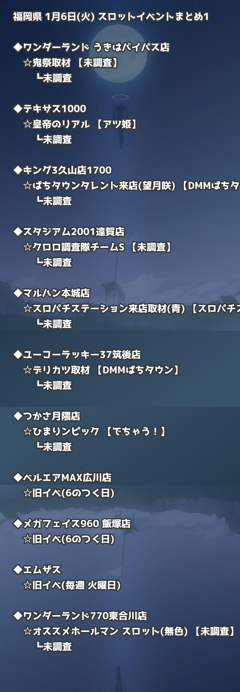 1月6日(火) 福岡県のTOP20の結果を掲載しています。タップで上位機種など詳細が見れます。