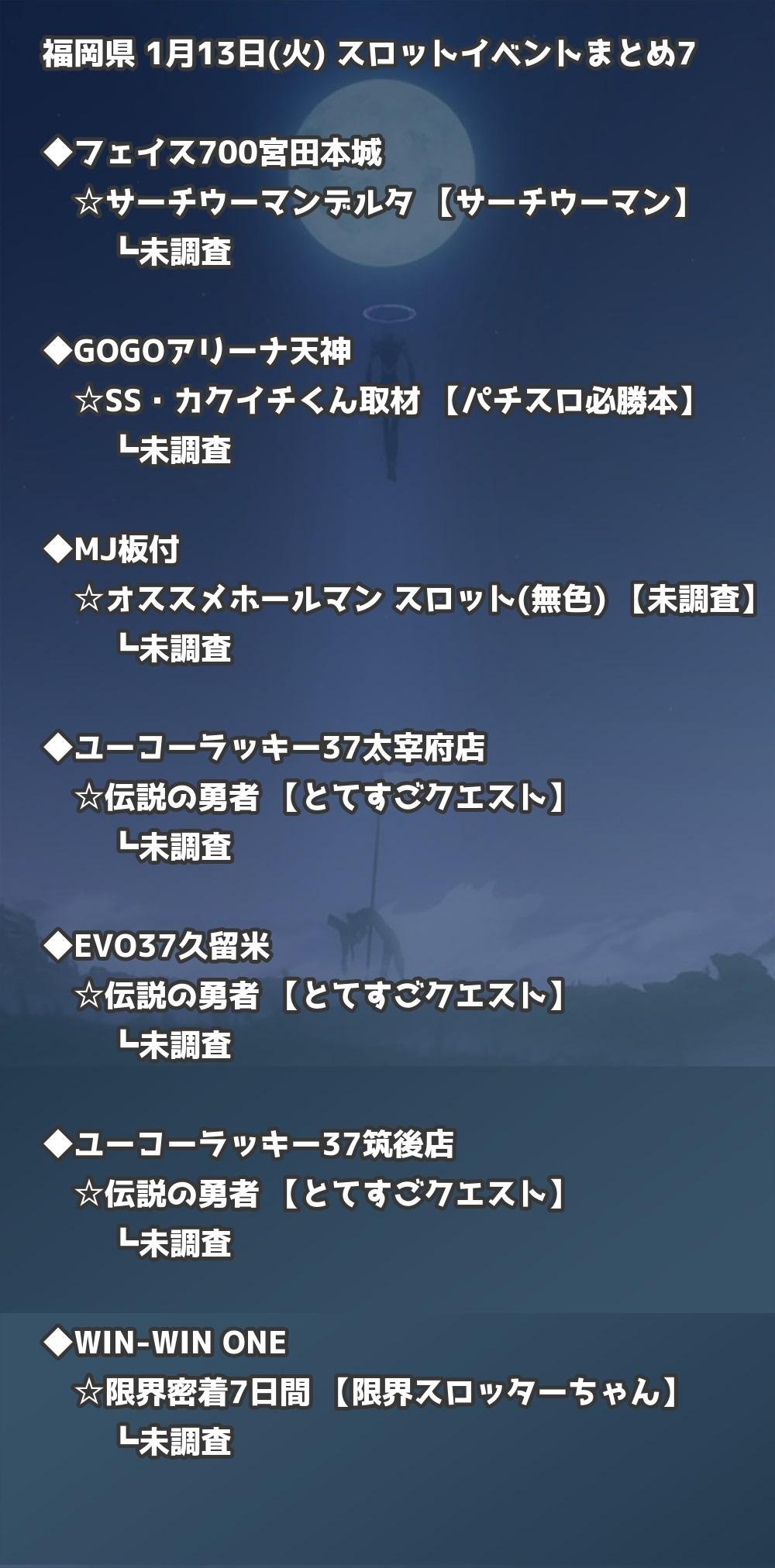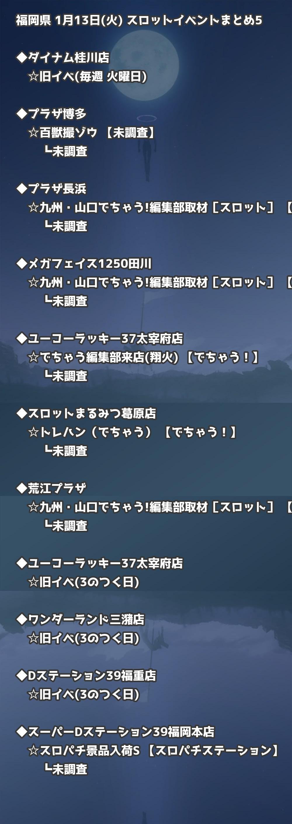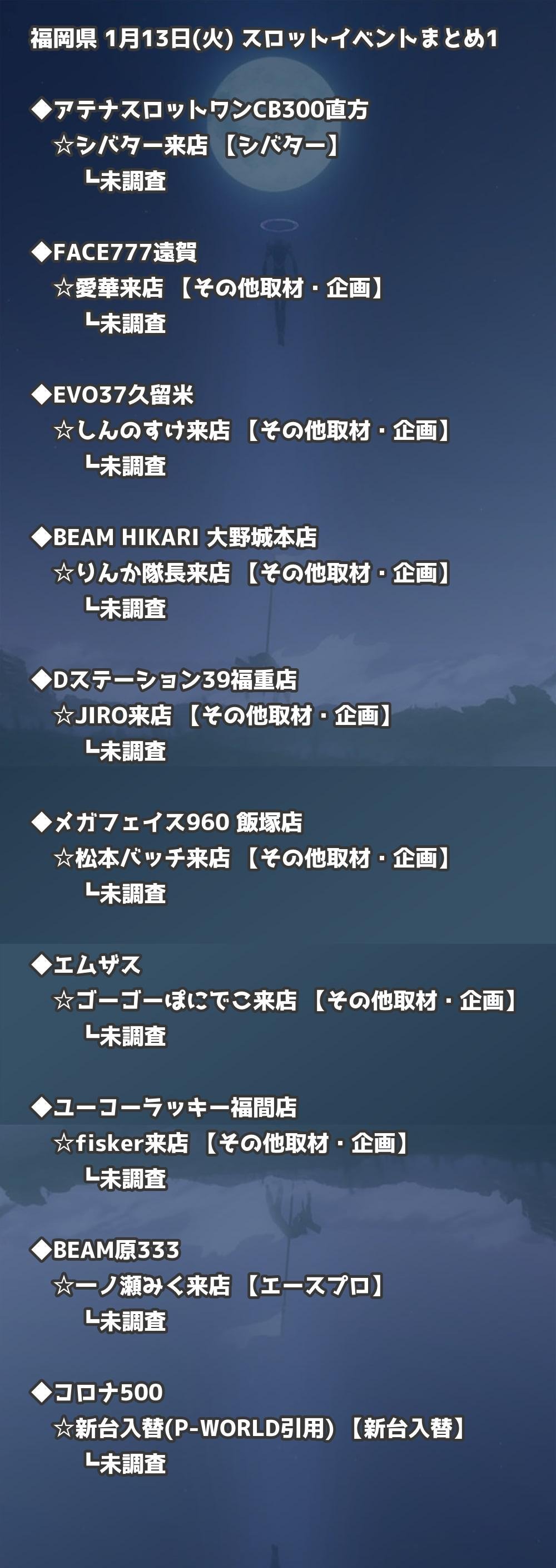 福岡県内のパチンコファンの皆様へ。1月13日(火)の博多・天神エリアを中心としたパチンコホールイベント取材まとめ記事です。
