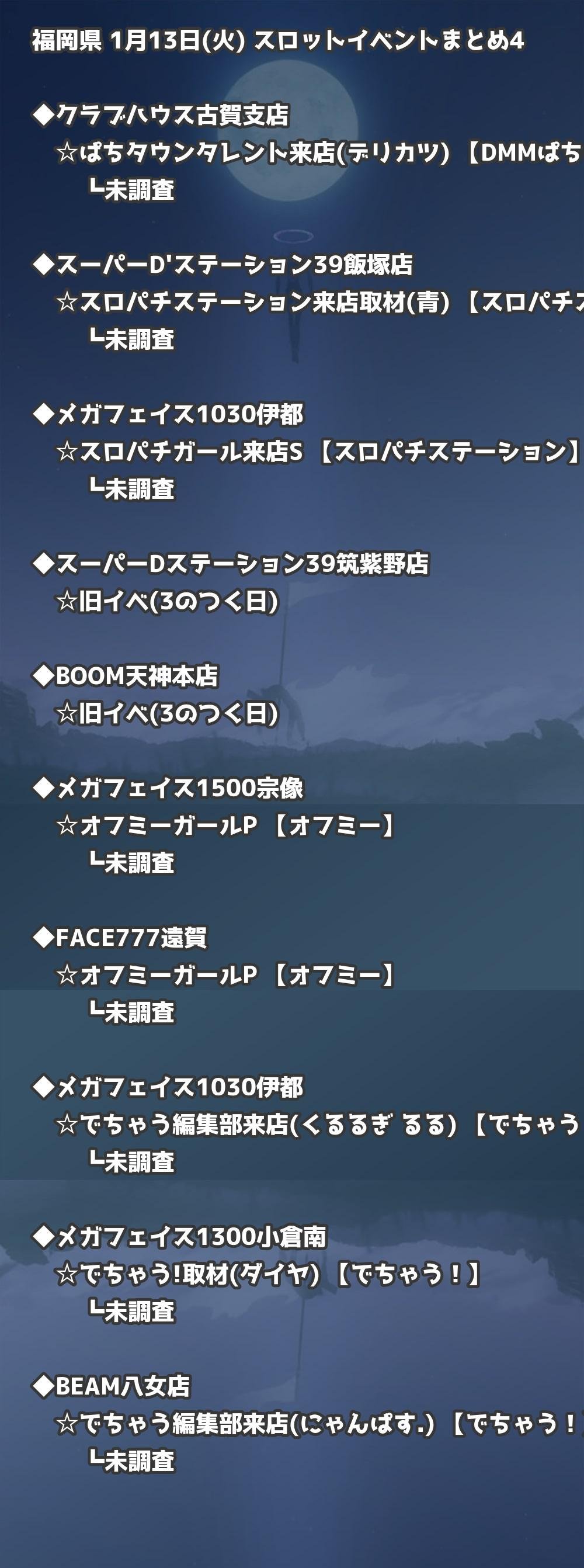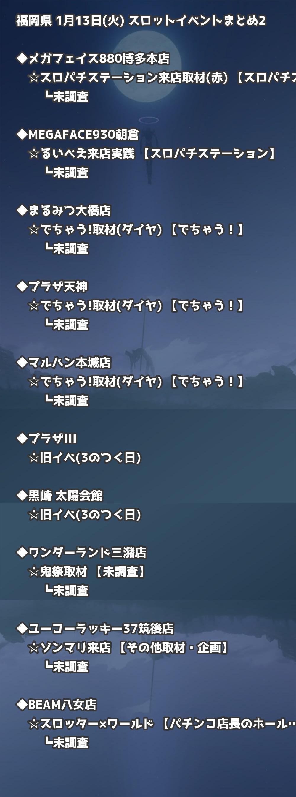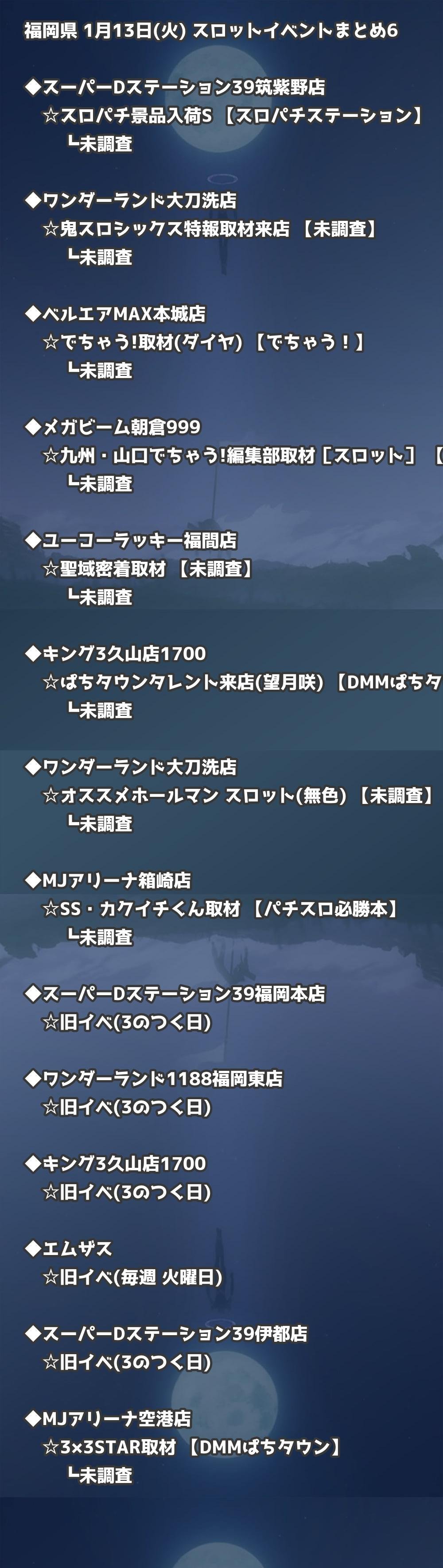 福岡県内のパチンコファンの皆様へ。1月13日(火)の博多・天神エリアを中心としたパチンコホールイベント取材まとめ記事です。