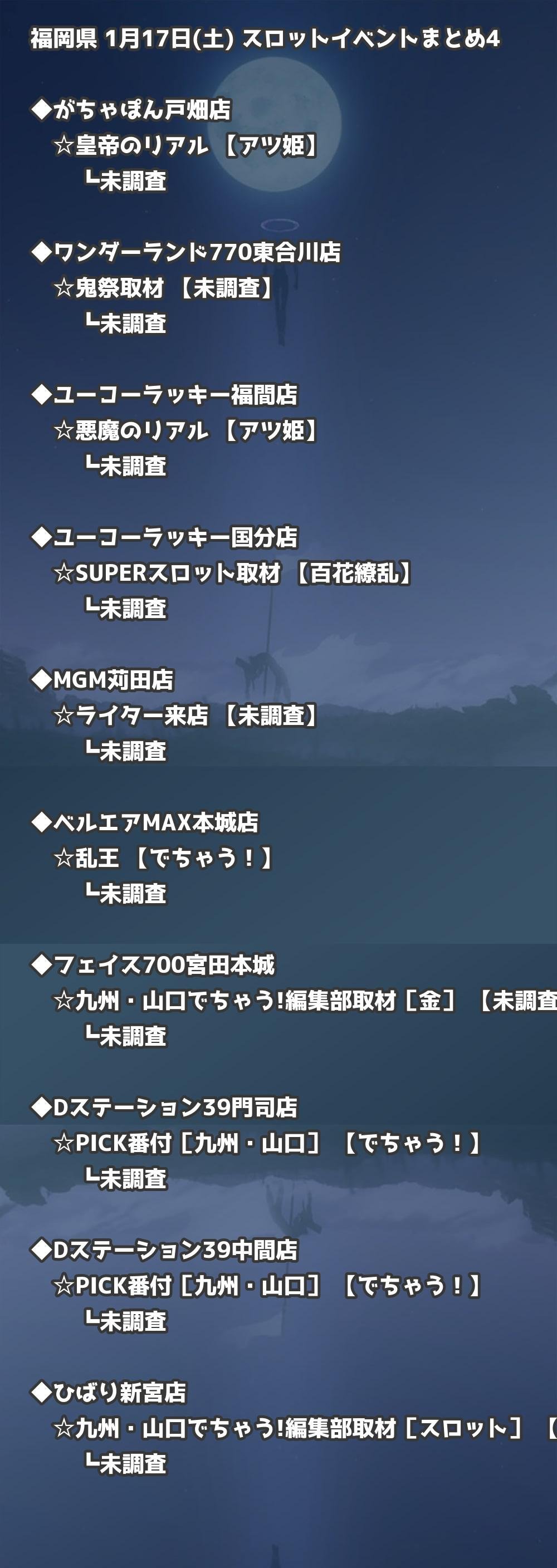 📊 福岡県 1月17日(土) 勝てるパチンコ・スロット取材店舗一覧|おすすめ順