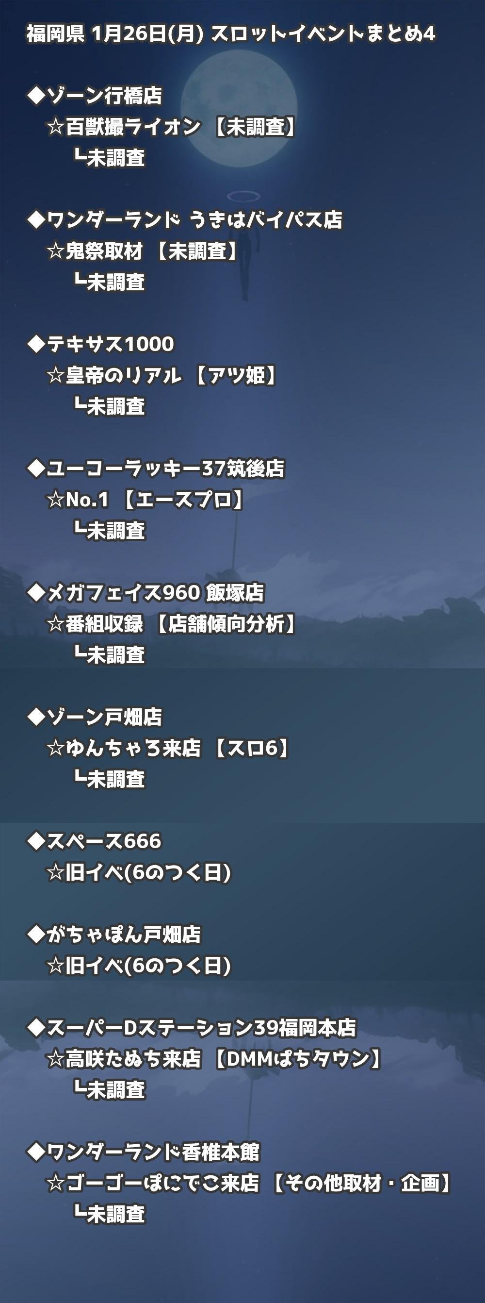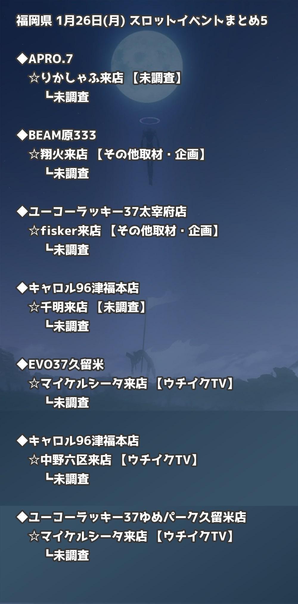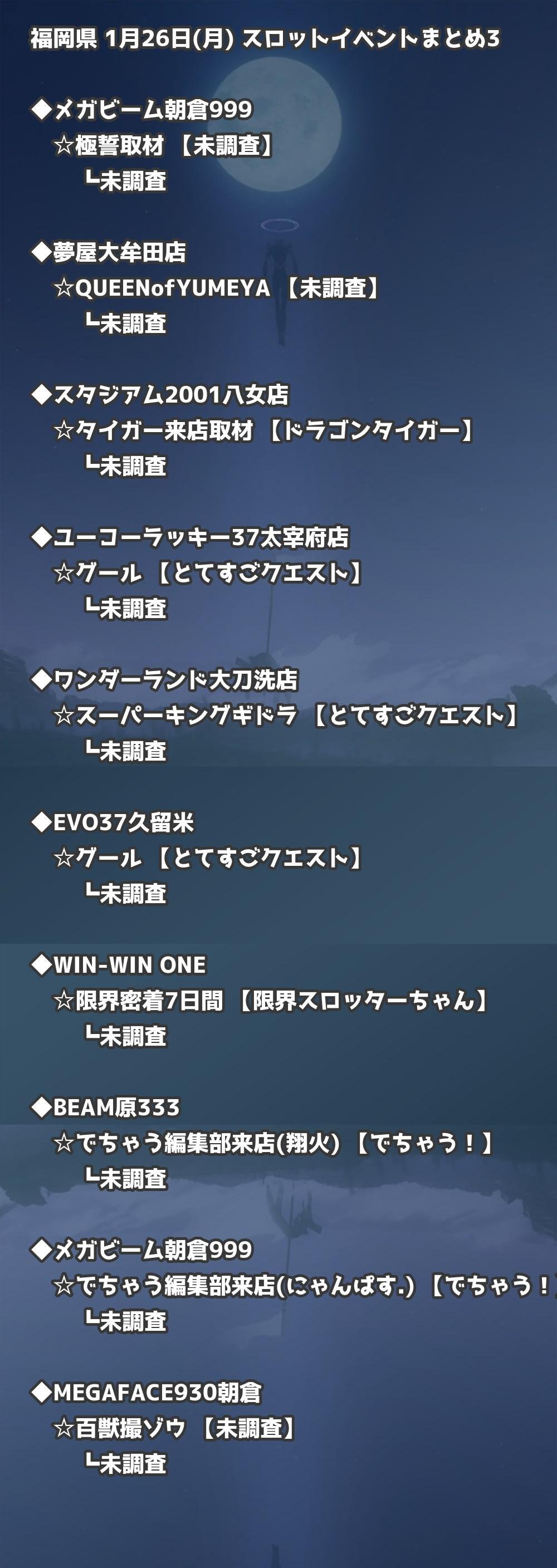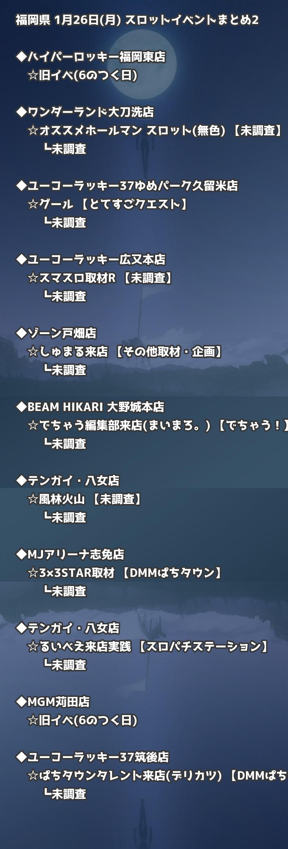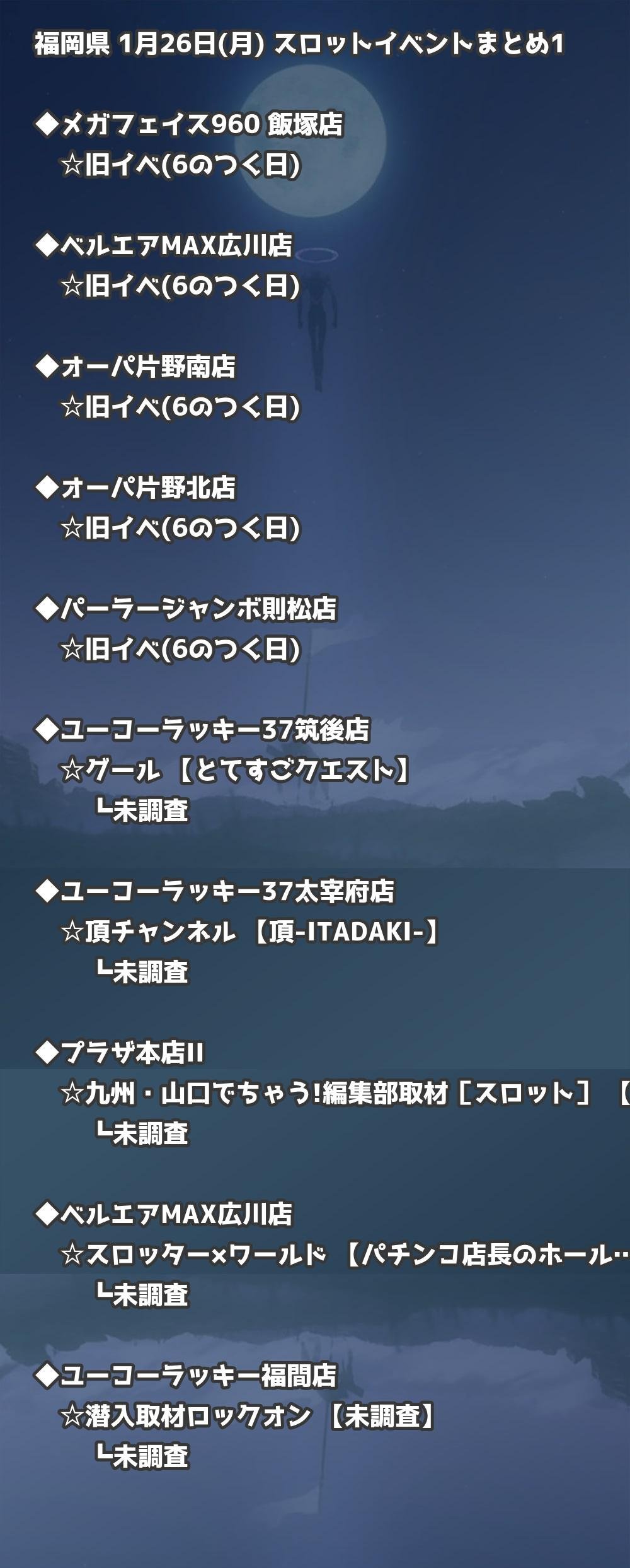 福岡県内のパチンコファンの皆様へ。1月26日(月)の博多・天神エリアを中心としたパチンコホールイベント取材まとめ記事です。