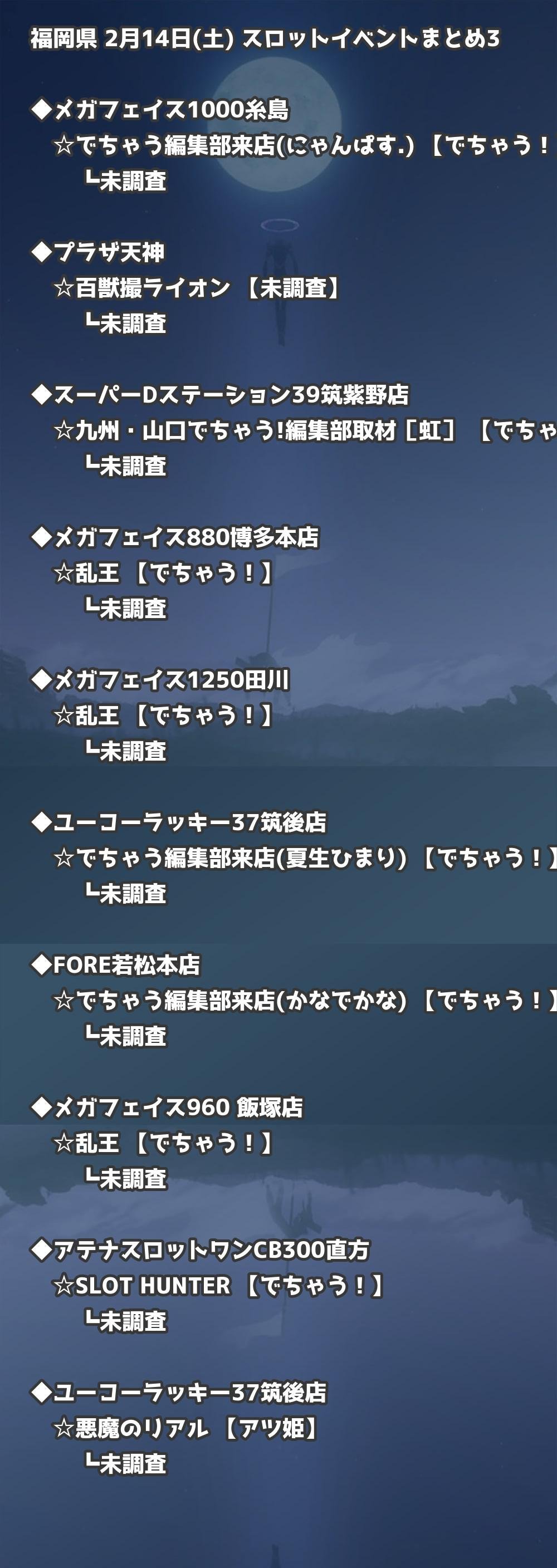 福岡県内のパチンコファンの皆様へ。2月14日(土)の博多・天神エリアを中心としたパチンコホールイベント取材まとめ記事です。