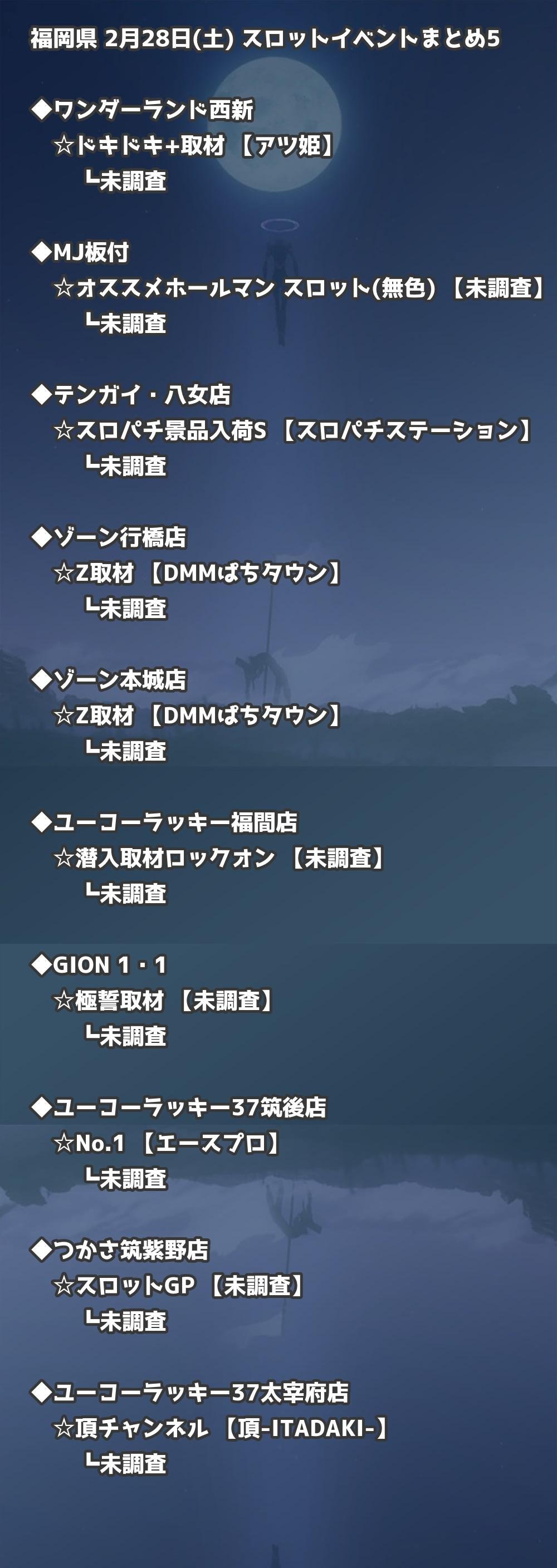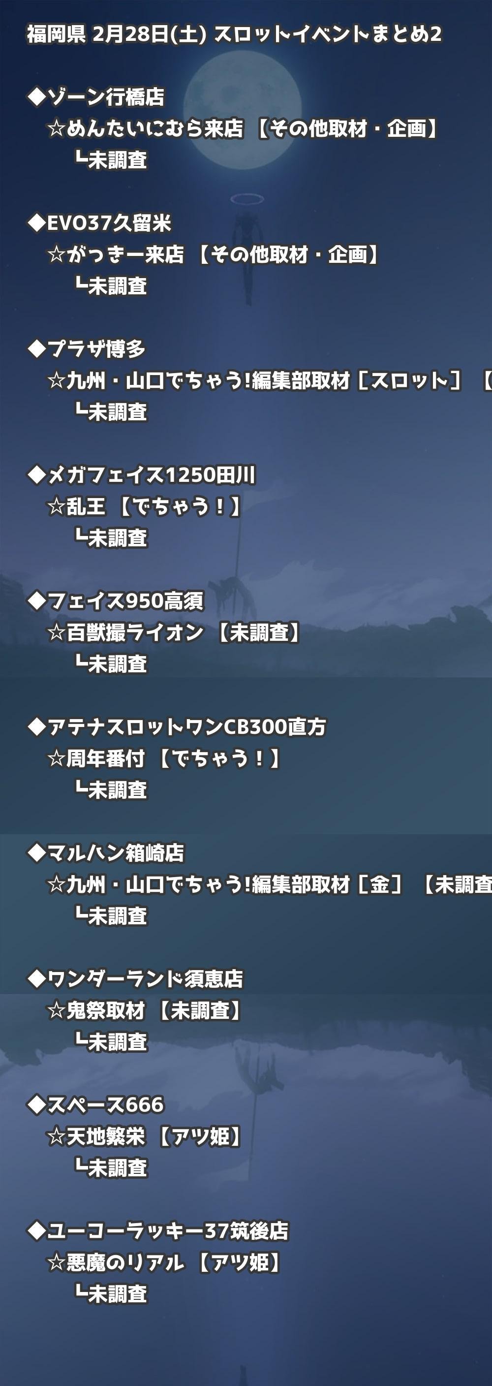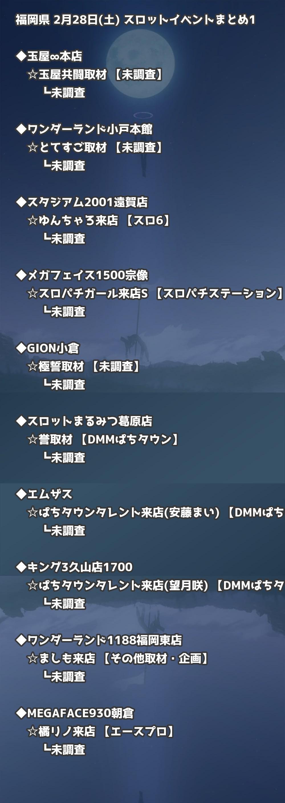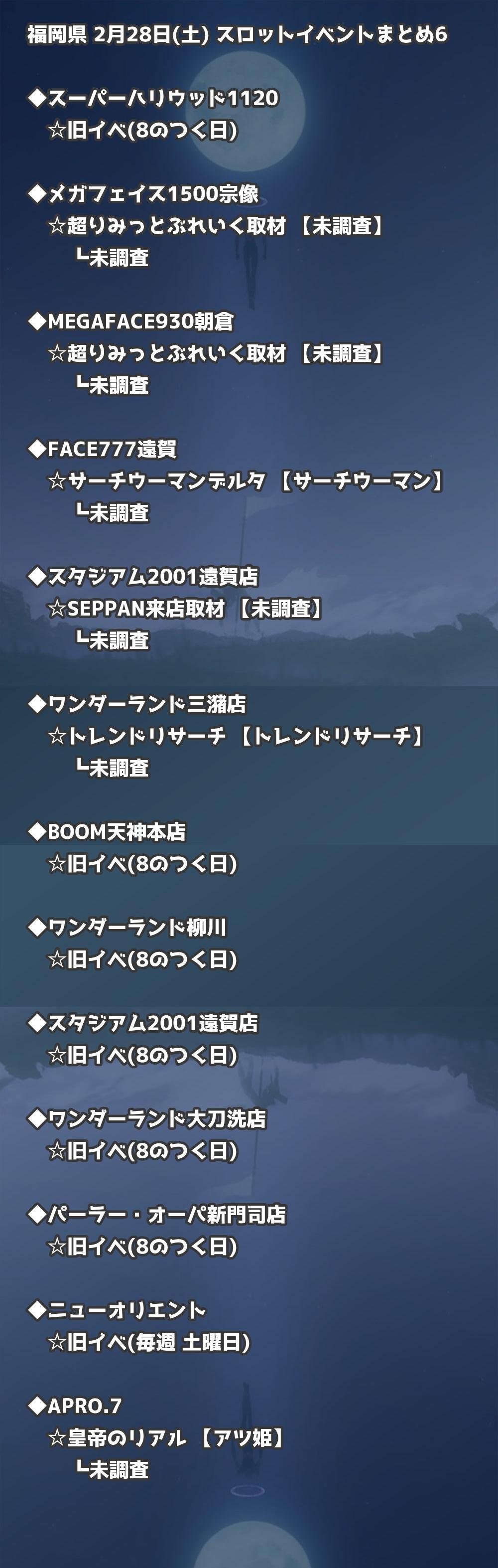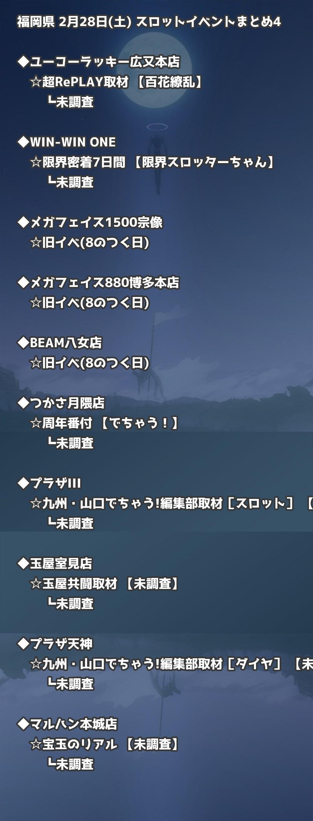 2月28日(土) 福岡県のTOP20の結果を掲載しています。タップで上位機種など詳細が見れます。