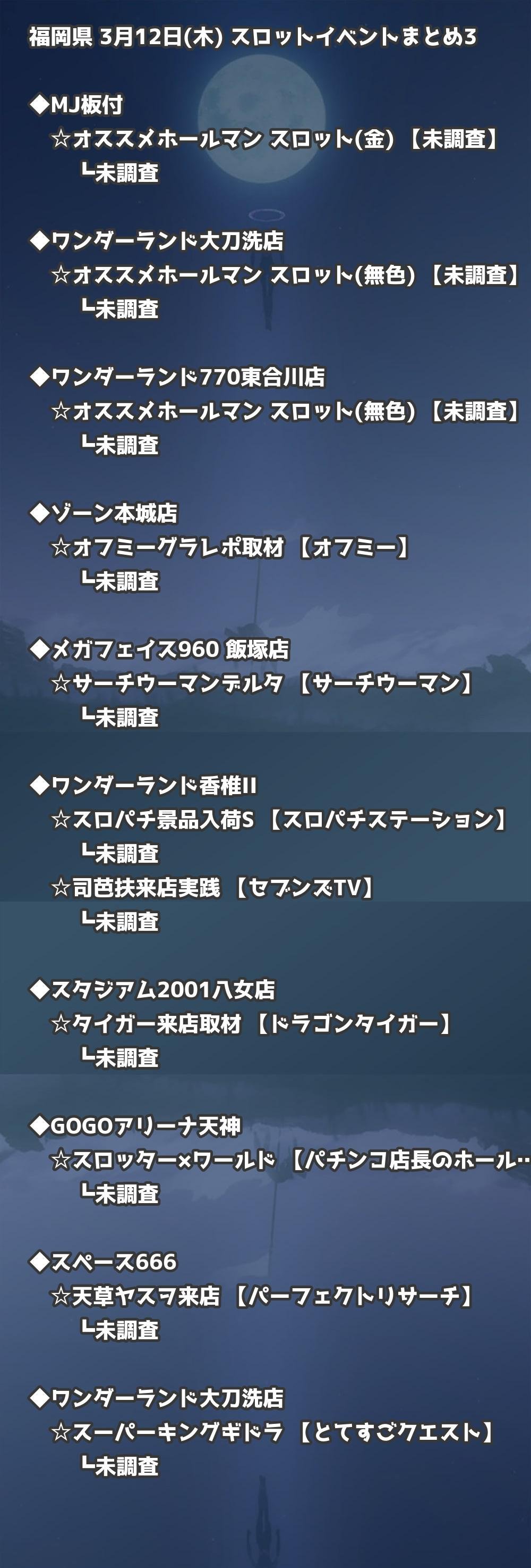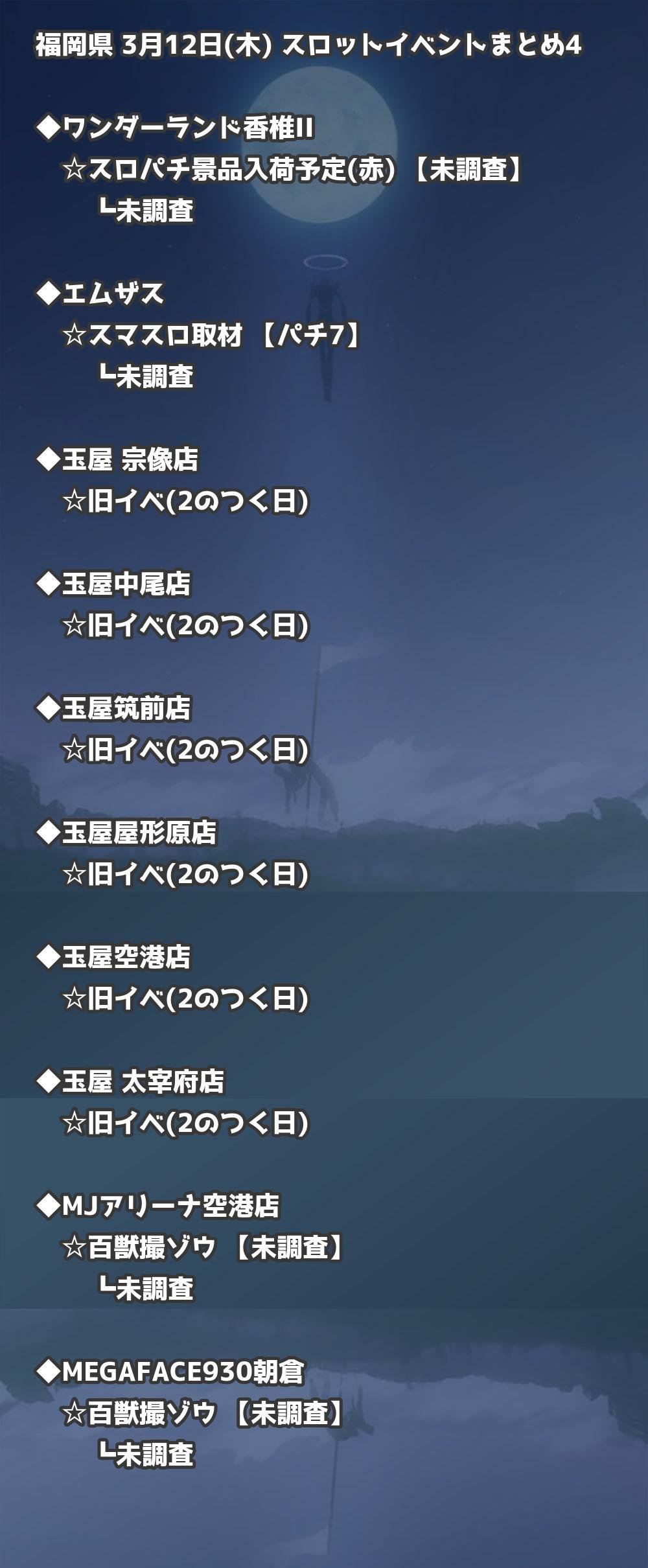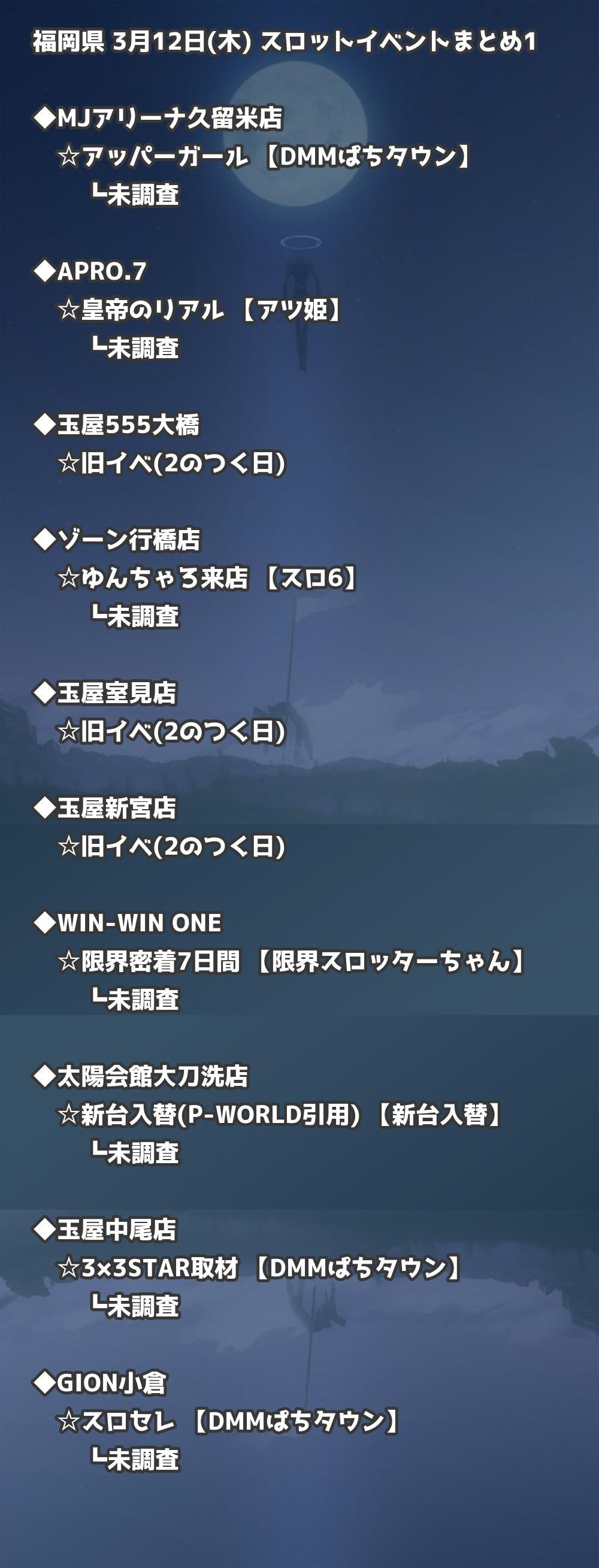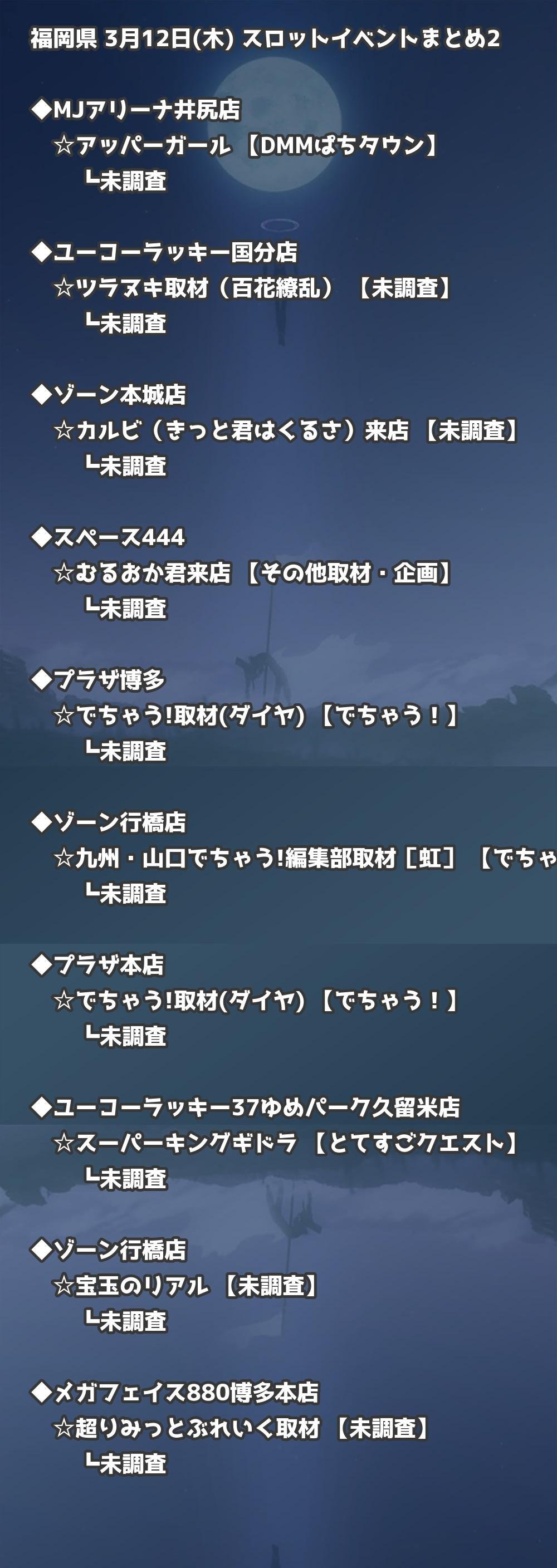📊 福岡県 3月12日(木) 勝てるパチンコ・スロット取材店舗一覧|おすすめ順