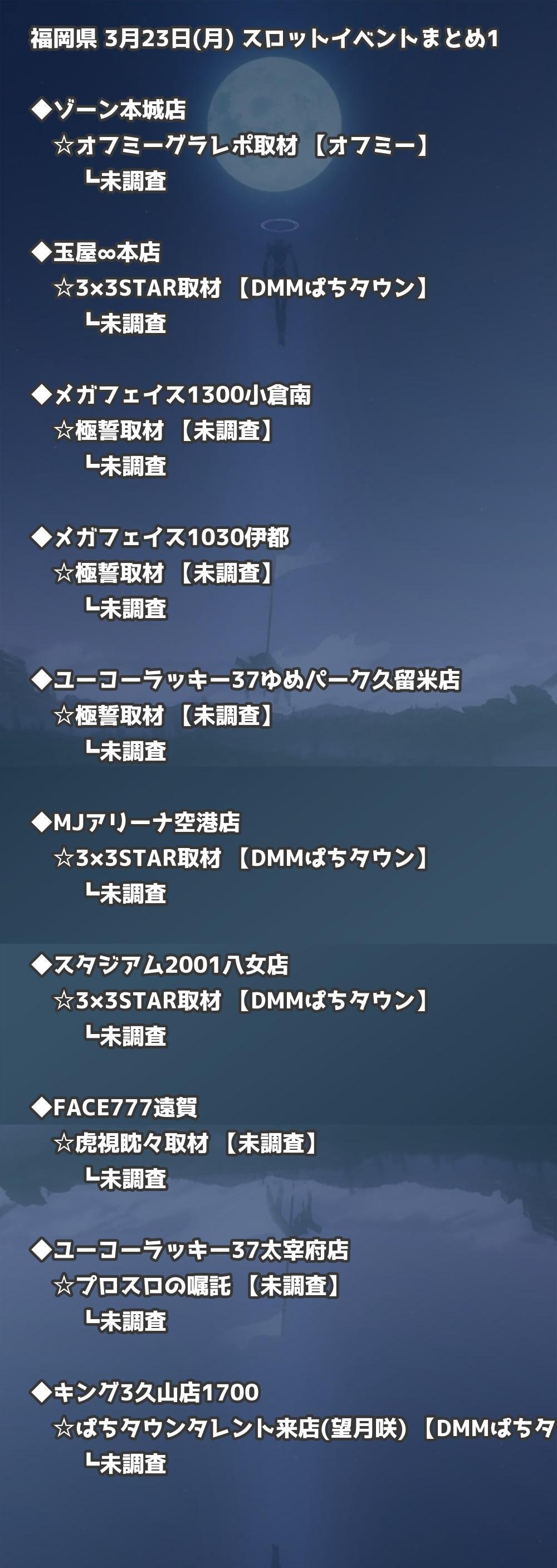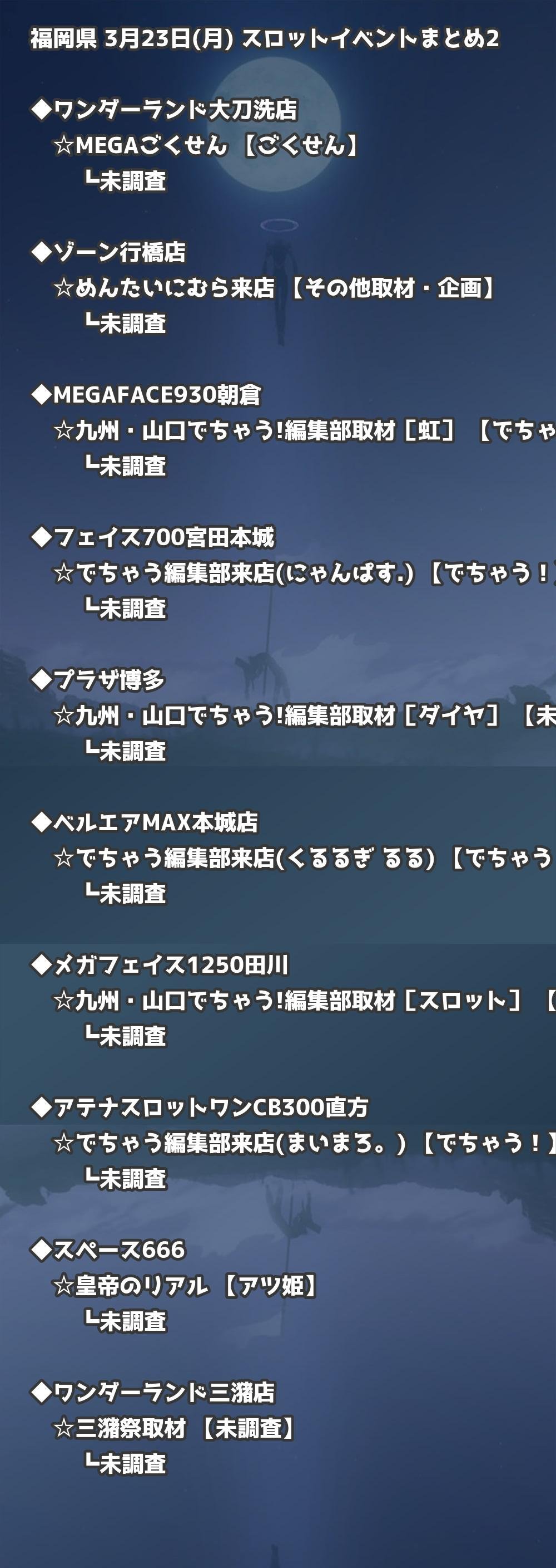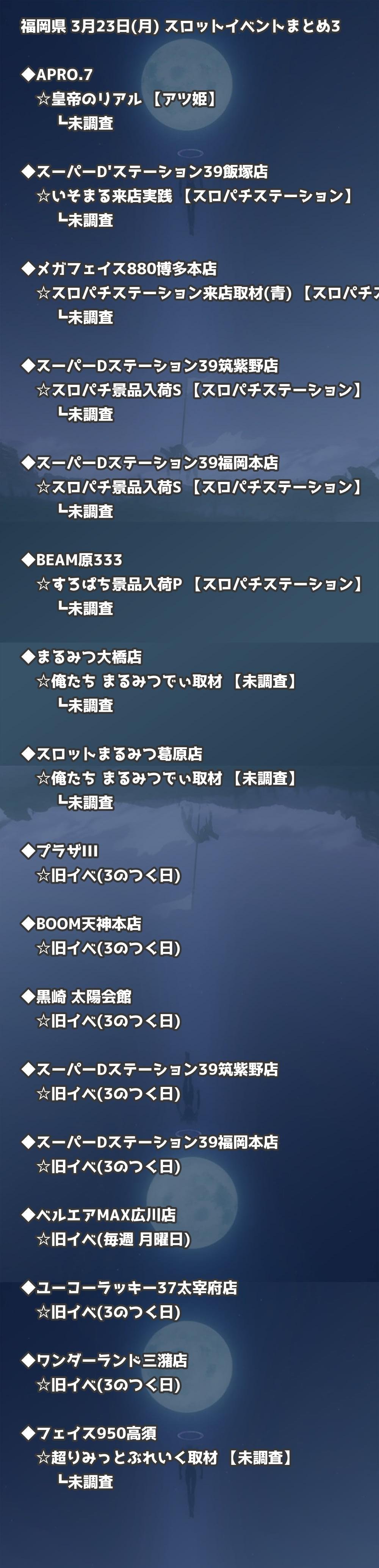 福岡県内のパチンコファンの皆様へ。3月23日(月)の博多・天神エリアを中心としたパチンコホールイベント取材まとめ記事です。