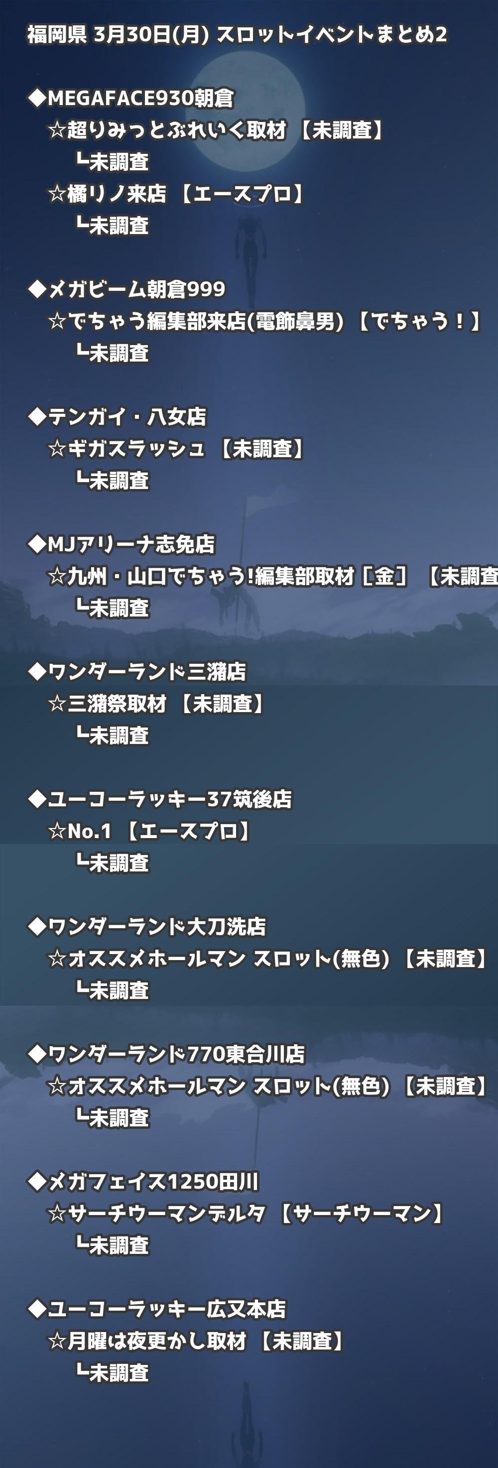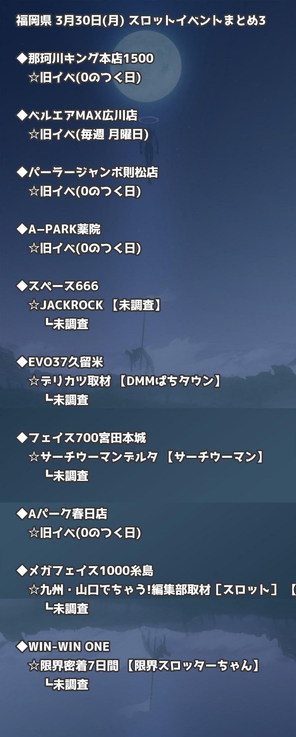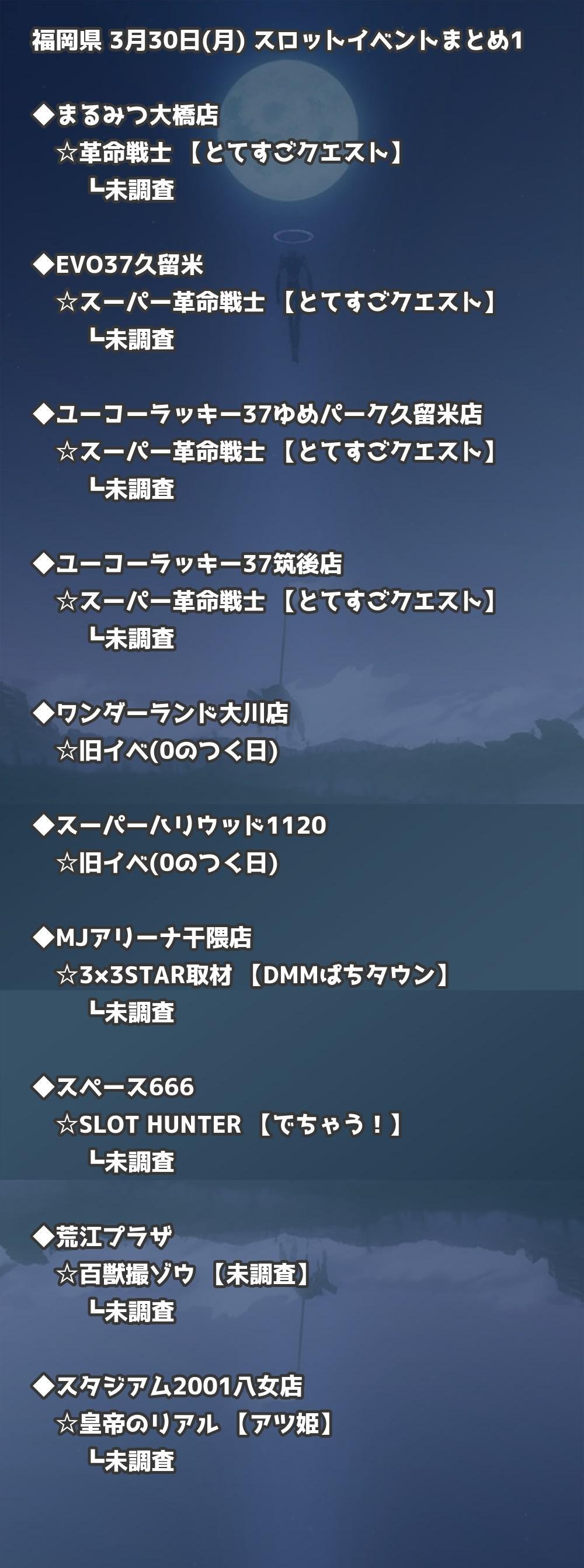 📊 福岡県 3月30日(月) 勝てるパチンコ・スロット取材店舗一覧|おすすめ順